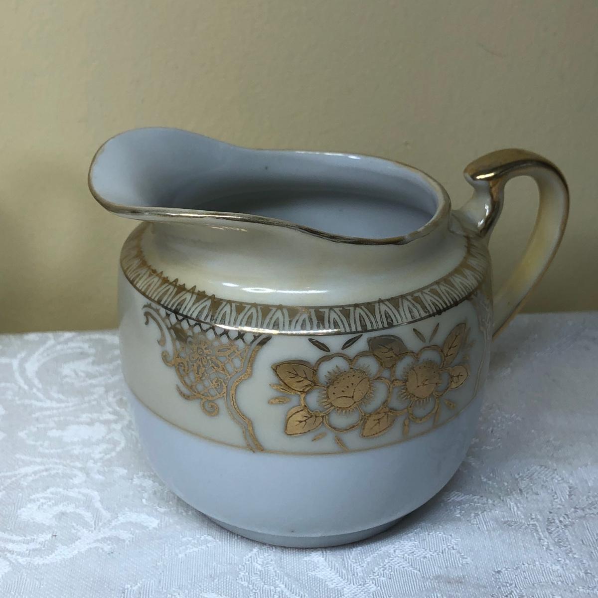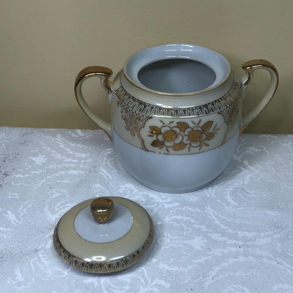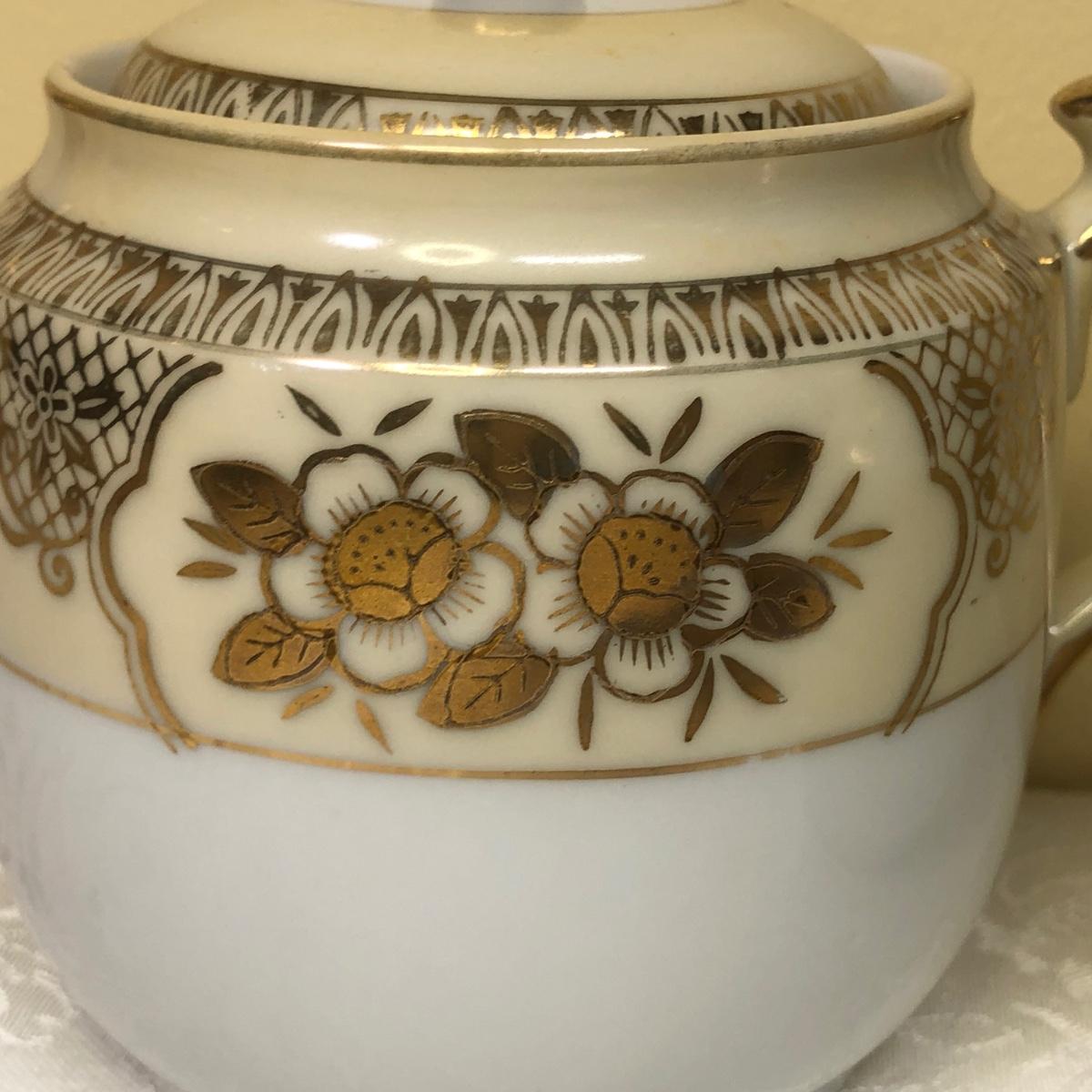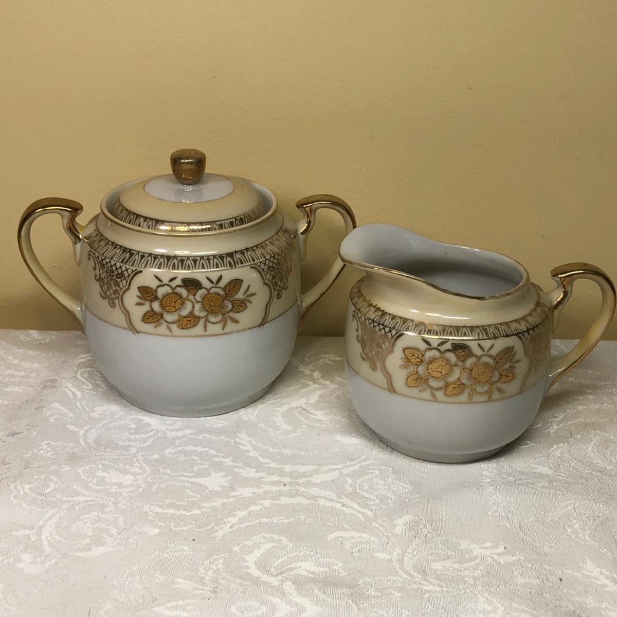 Made in Japan. Set includes 7 tea cups, 7 saucers, 8 medium plates, a sugar bowl & creamer.