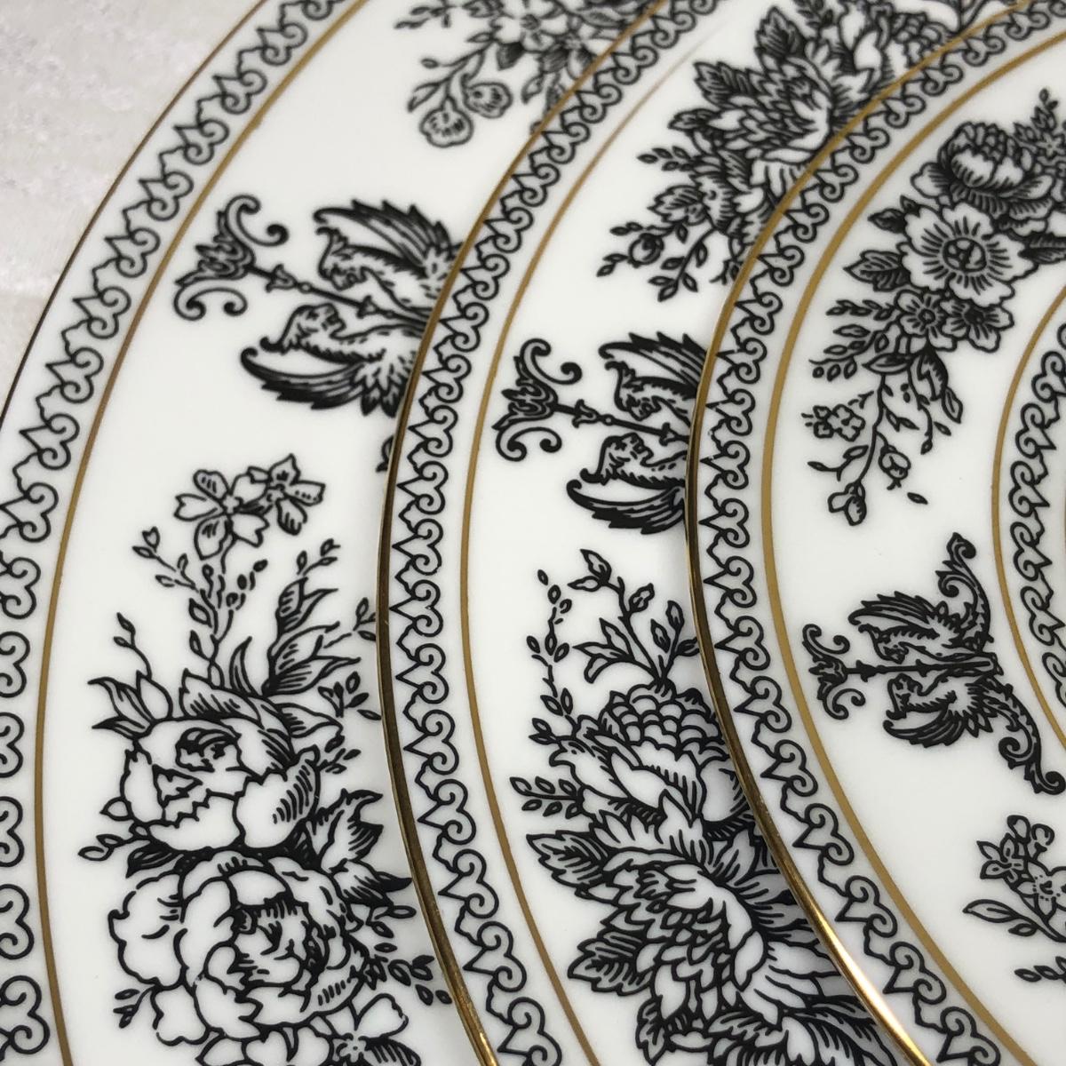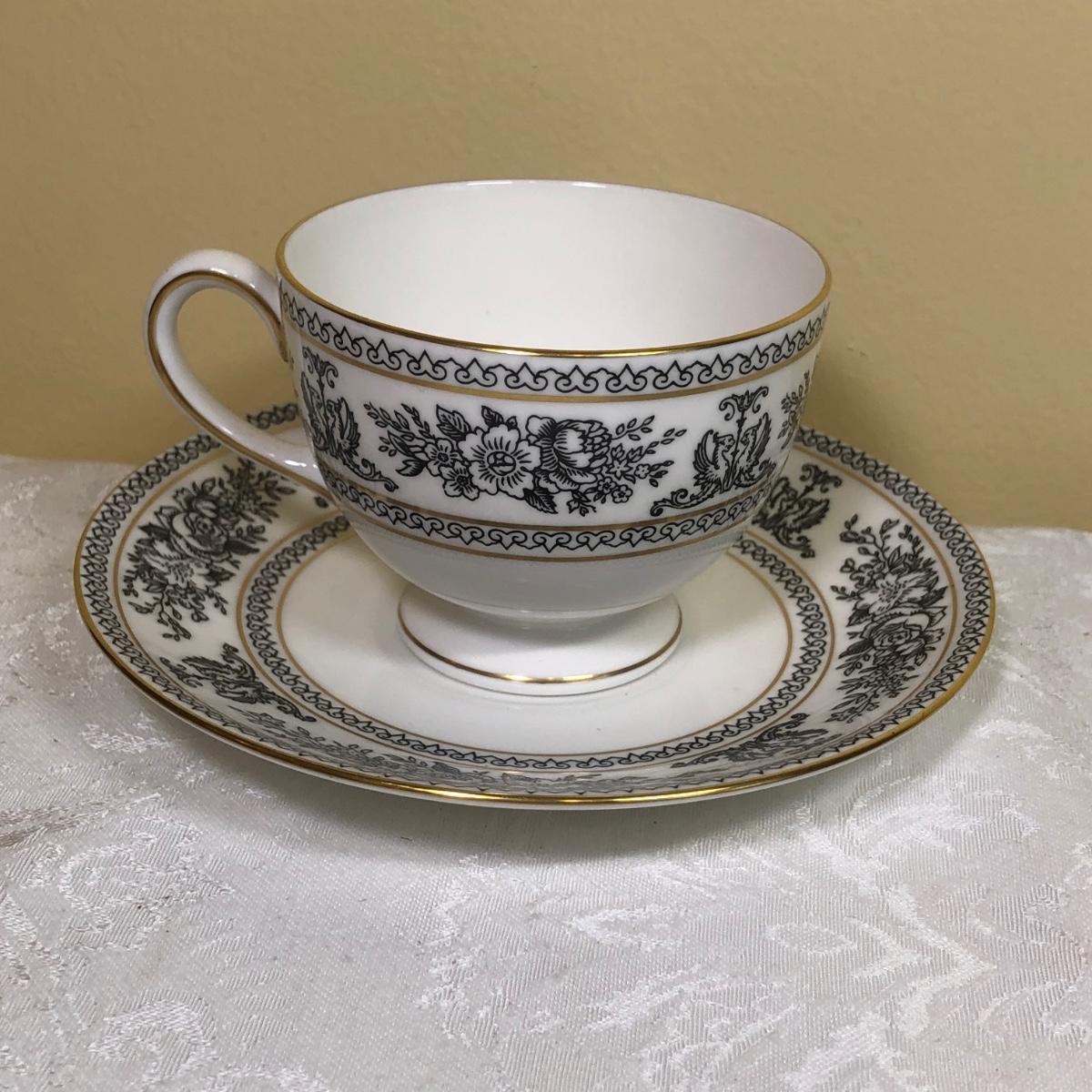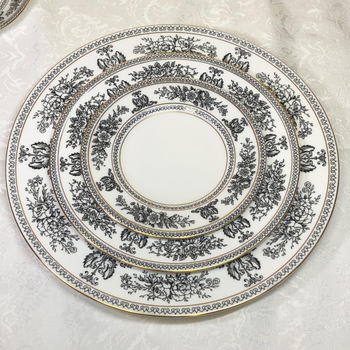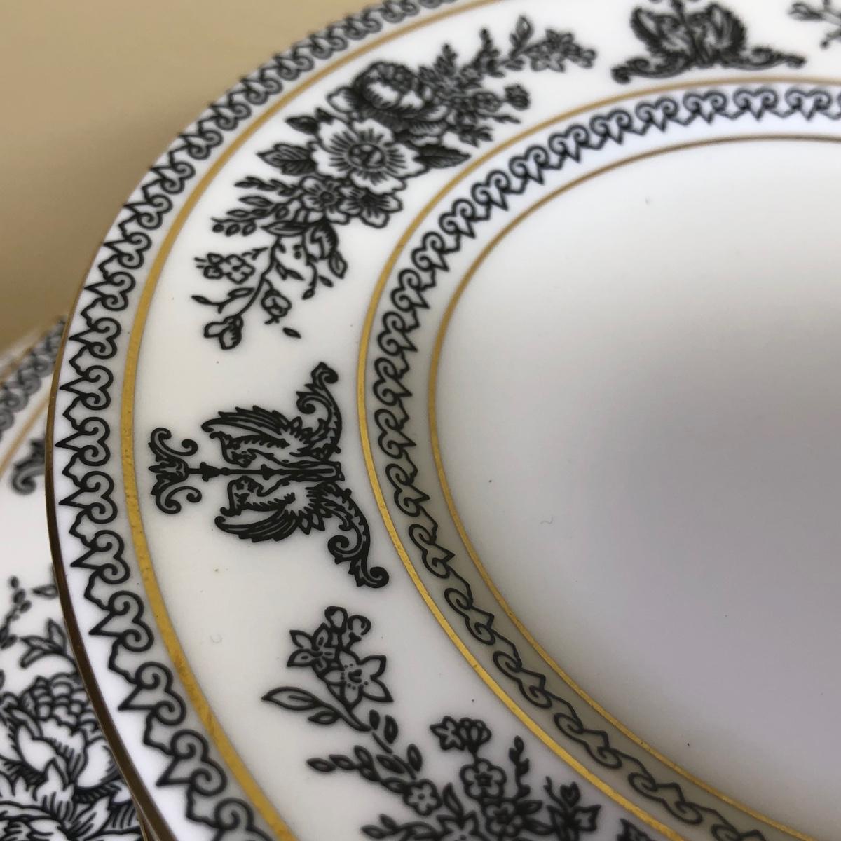Made in England. Set includes 8 dinner plates, 8 medium plates, 8 dessert plates, 6 saucers and 7 tea cups.