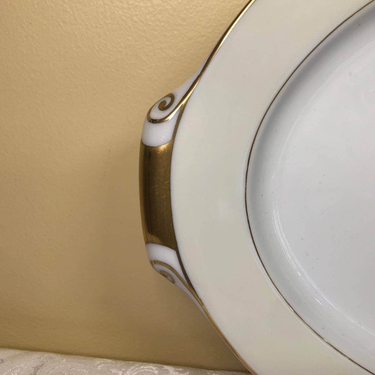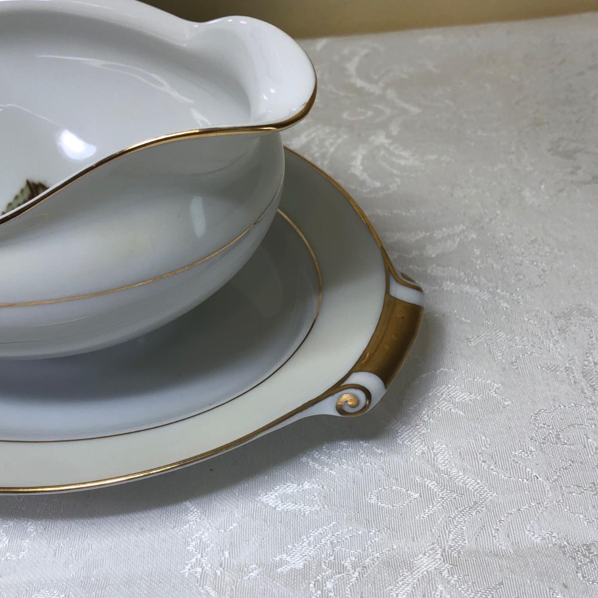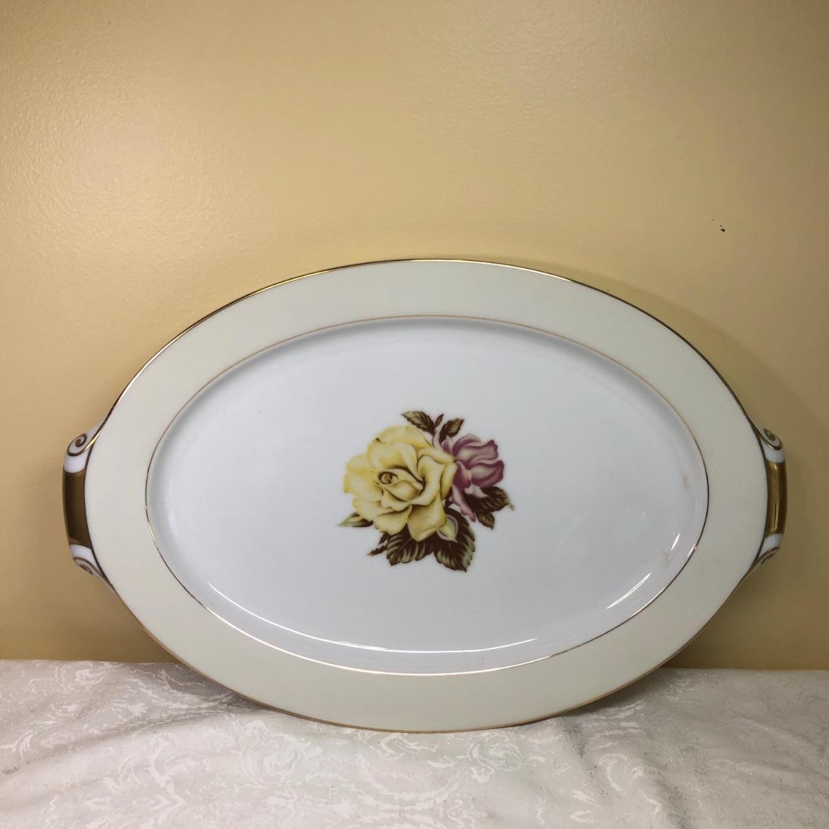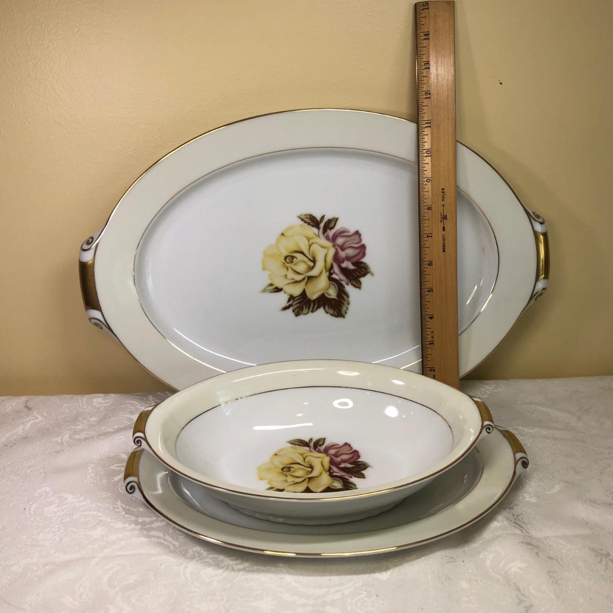 Made in Japan. Set includes serving dishes, 9 bowls, 10 small bowls, 11 dinner plates, 11 medium plates, 11 dessert plates, 10 saucers, 10 tea cups, a sugar bowl & creamer.