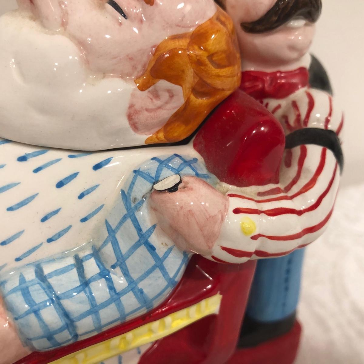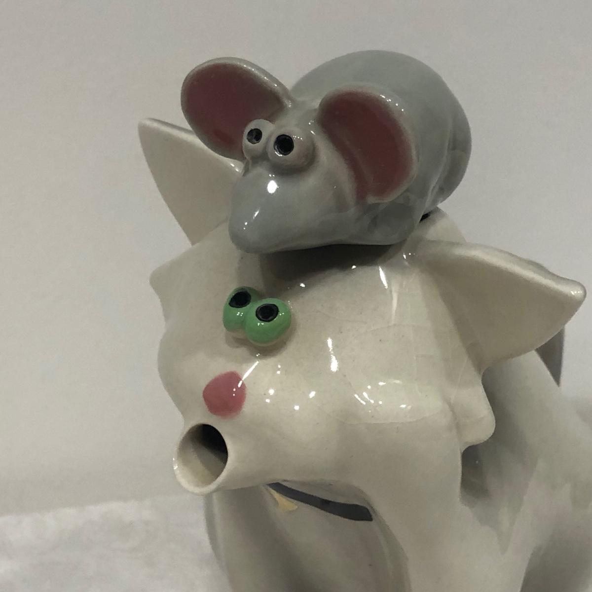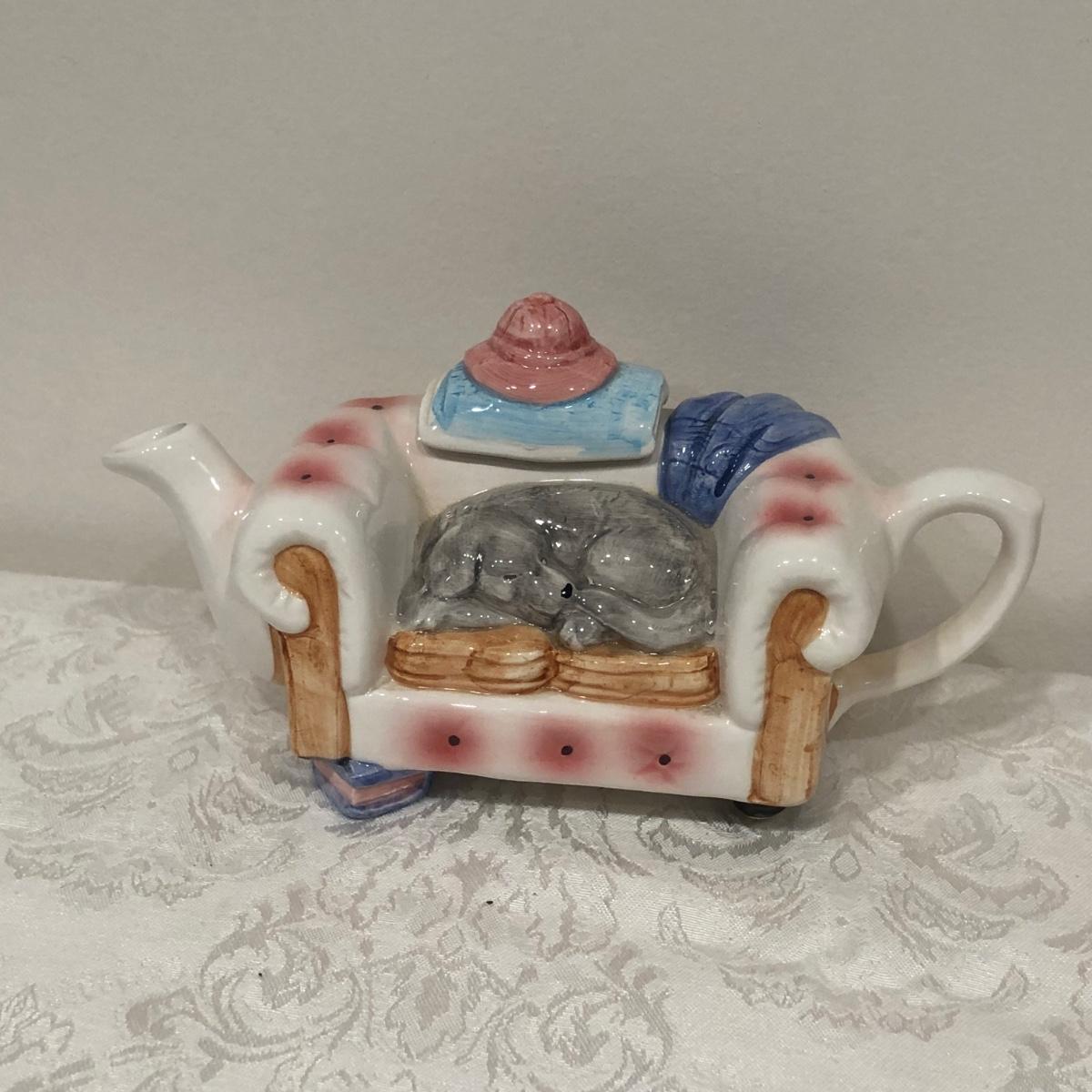 LOT 75M: Tea Pot Collection - Signed John Groth Pottery Cat/Mouse, Department 56, The Haldon Group, Giftcraft, Cardew Designs, 1993 Cardinal Inc. Barber Teapot & More