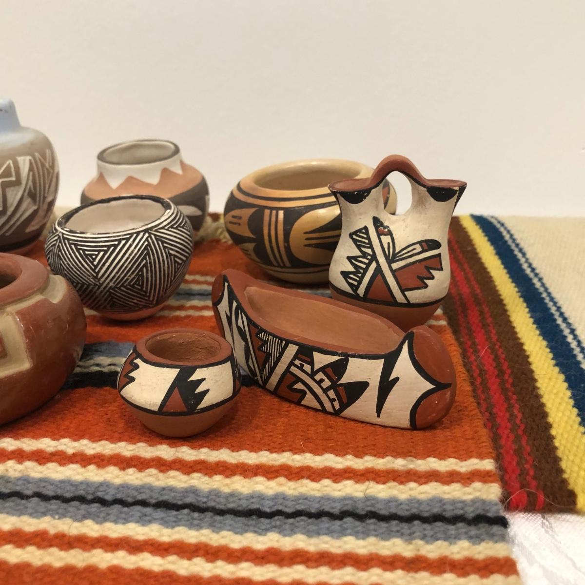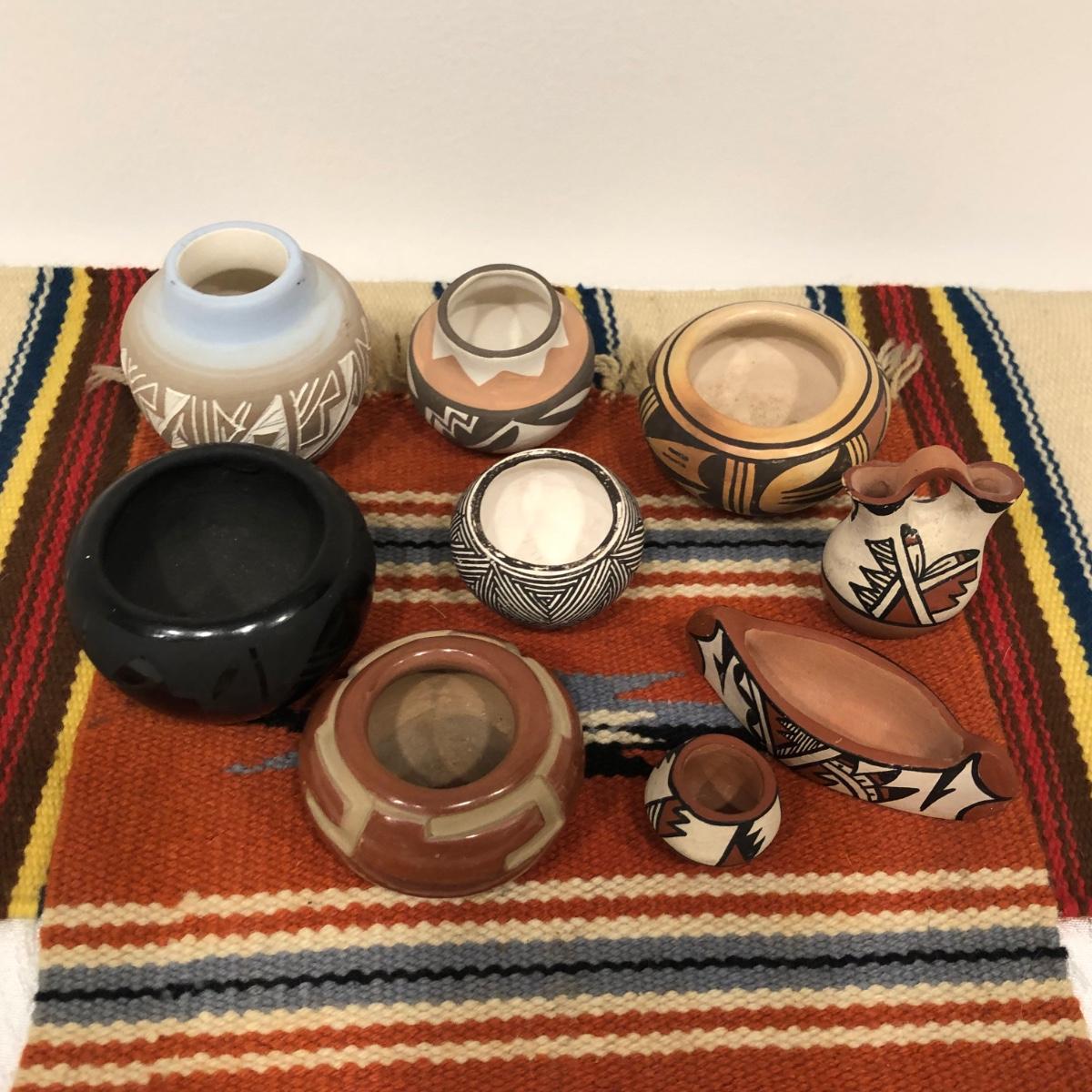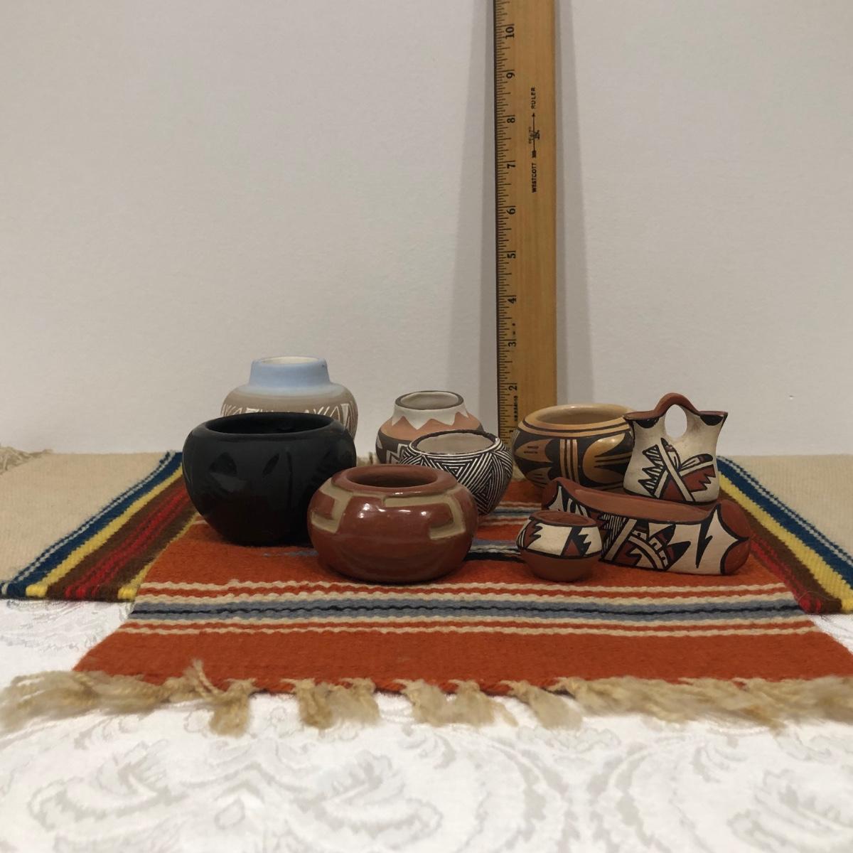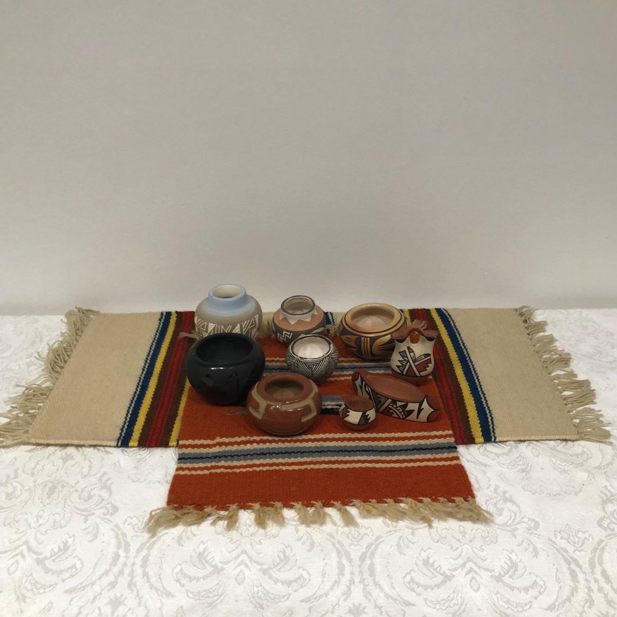 LOT 76M: Miniature Native American Pottery: Signed & Unsigned w/Southwestern Wall Hanging/Placemats