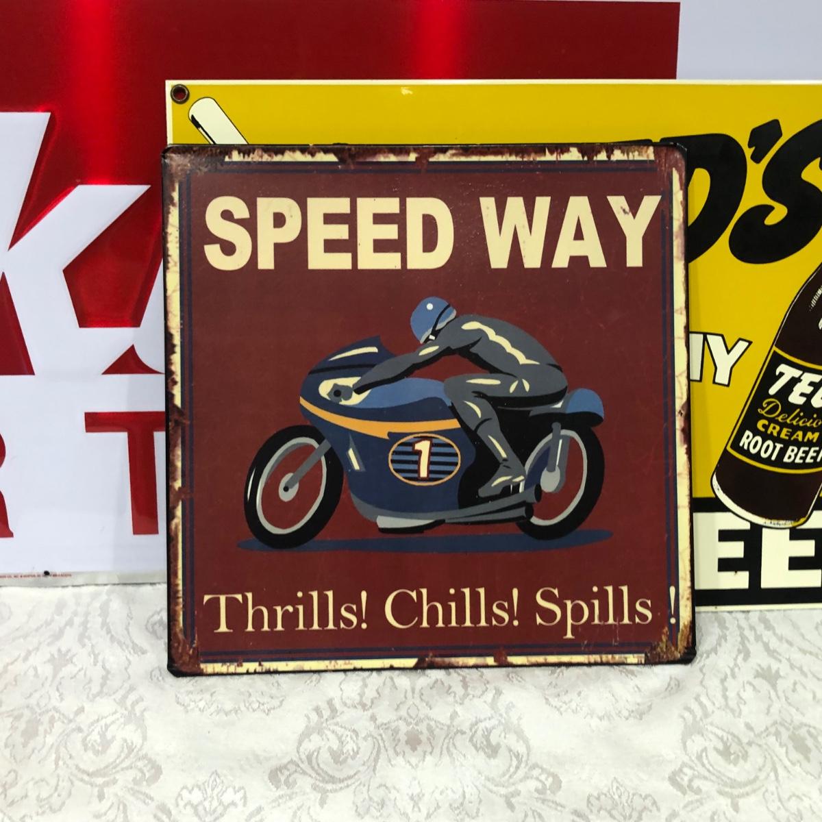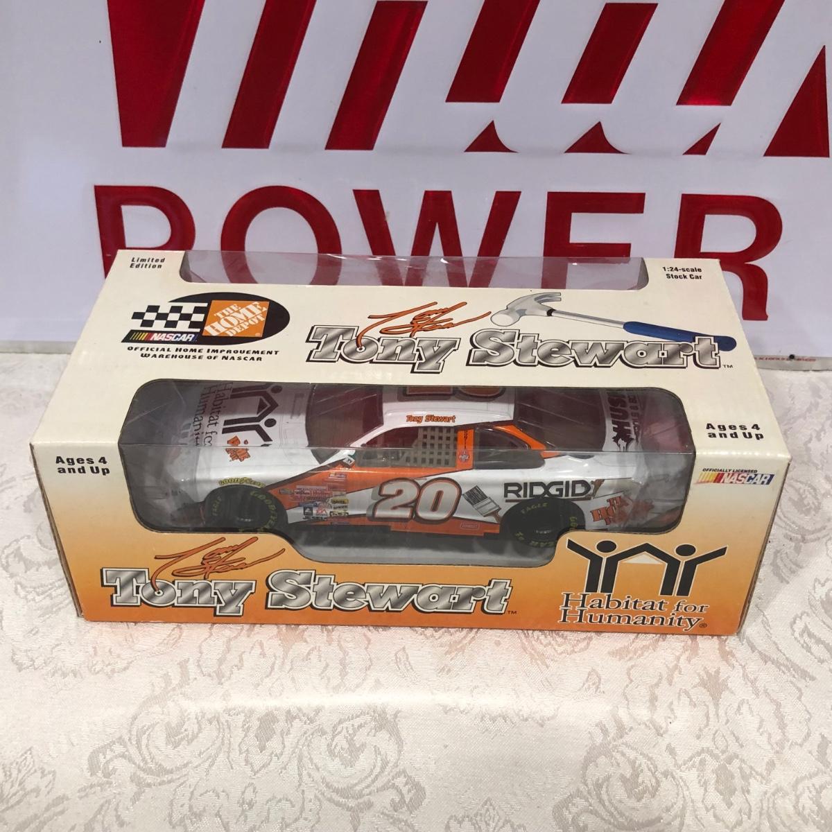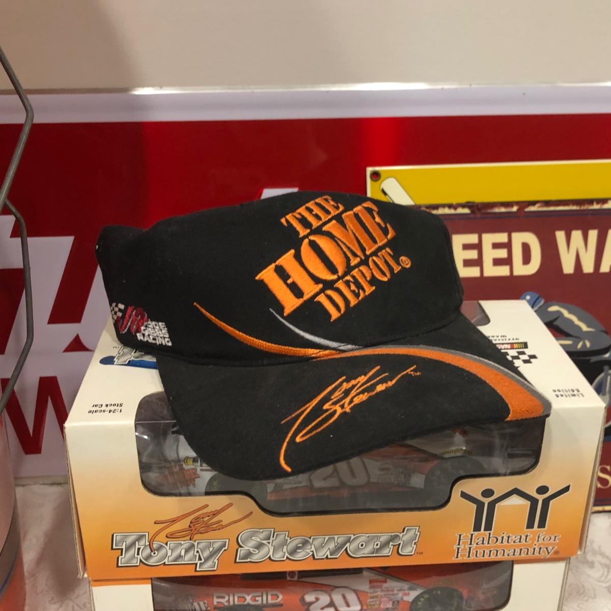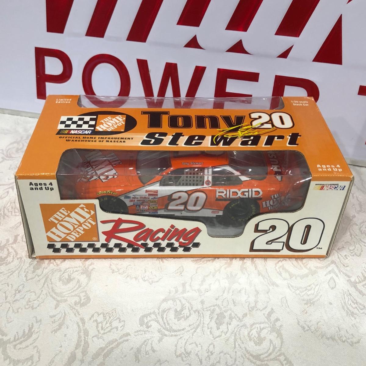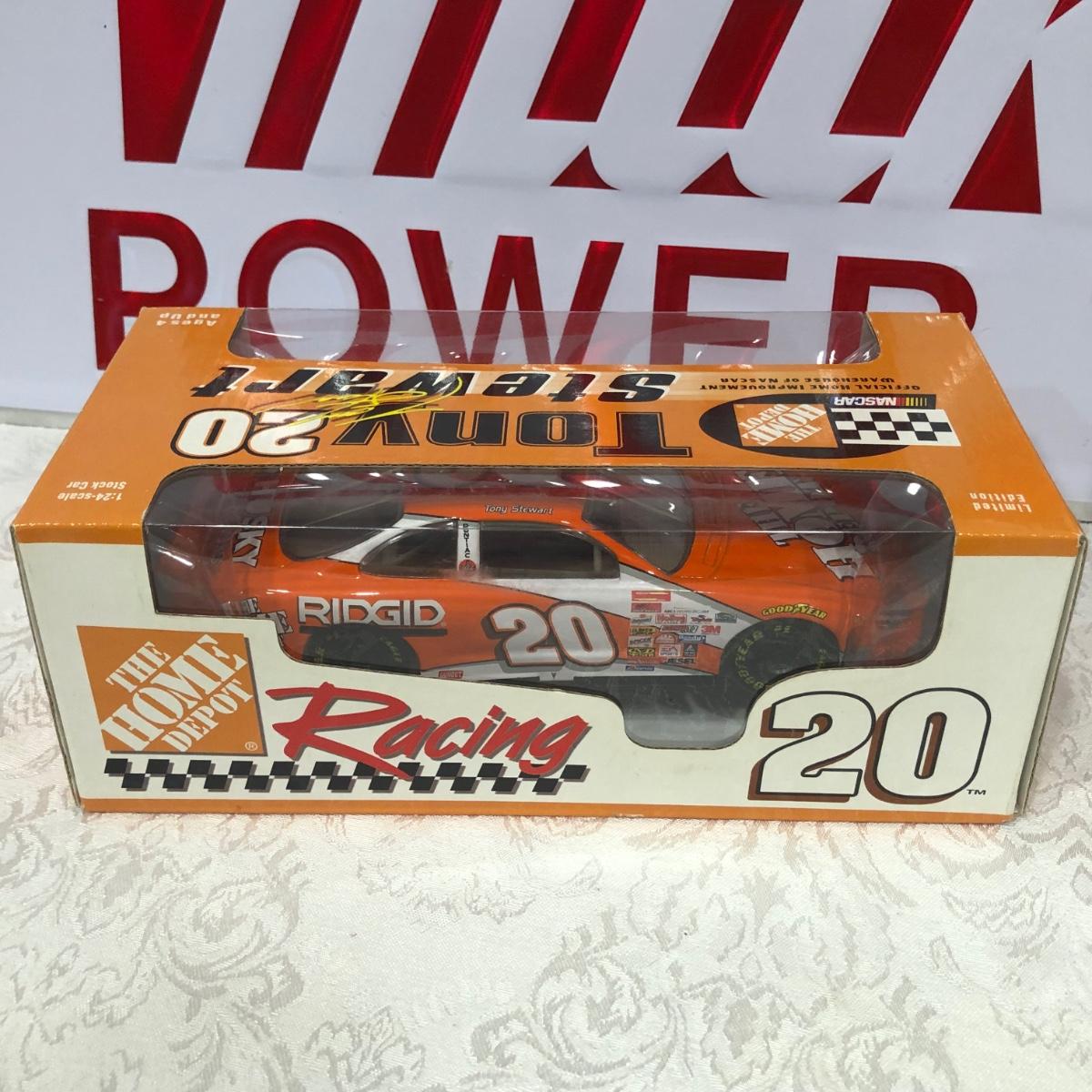 LOT 80M: Home Depot Tony Stewart 1:24 Scale Stock Cars NIB, Makita Power Tools Sign (12 x 36), Ande Rooney Porcelain Enameled Advertising Sign (15 x 10), Speed Way Decor Sign (9.5 x 9.5) & More