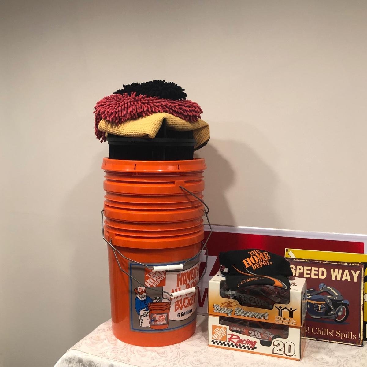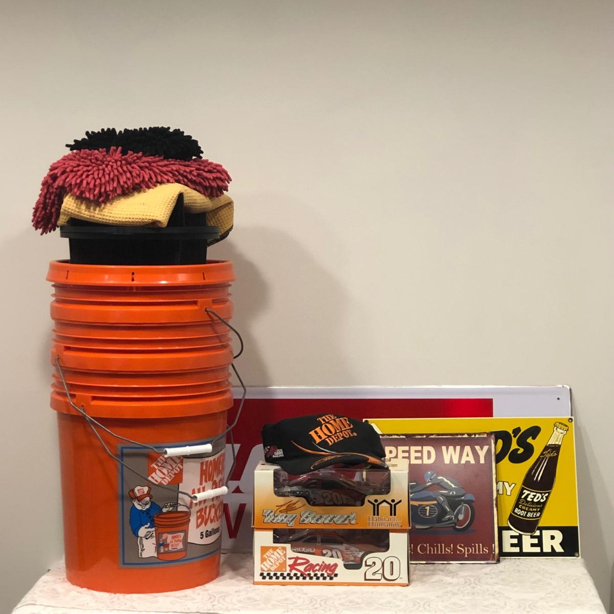 Also includes Home Depot Hat & Buckets w/ Car Washing Gear.