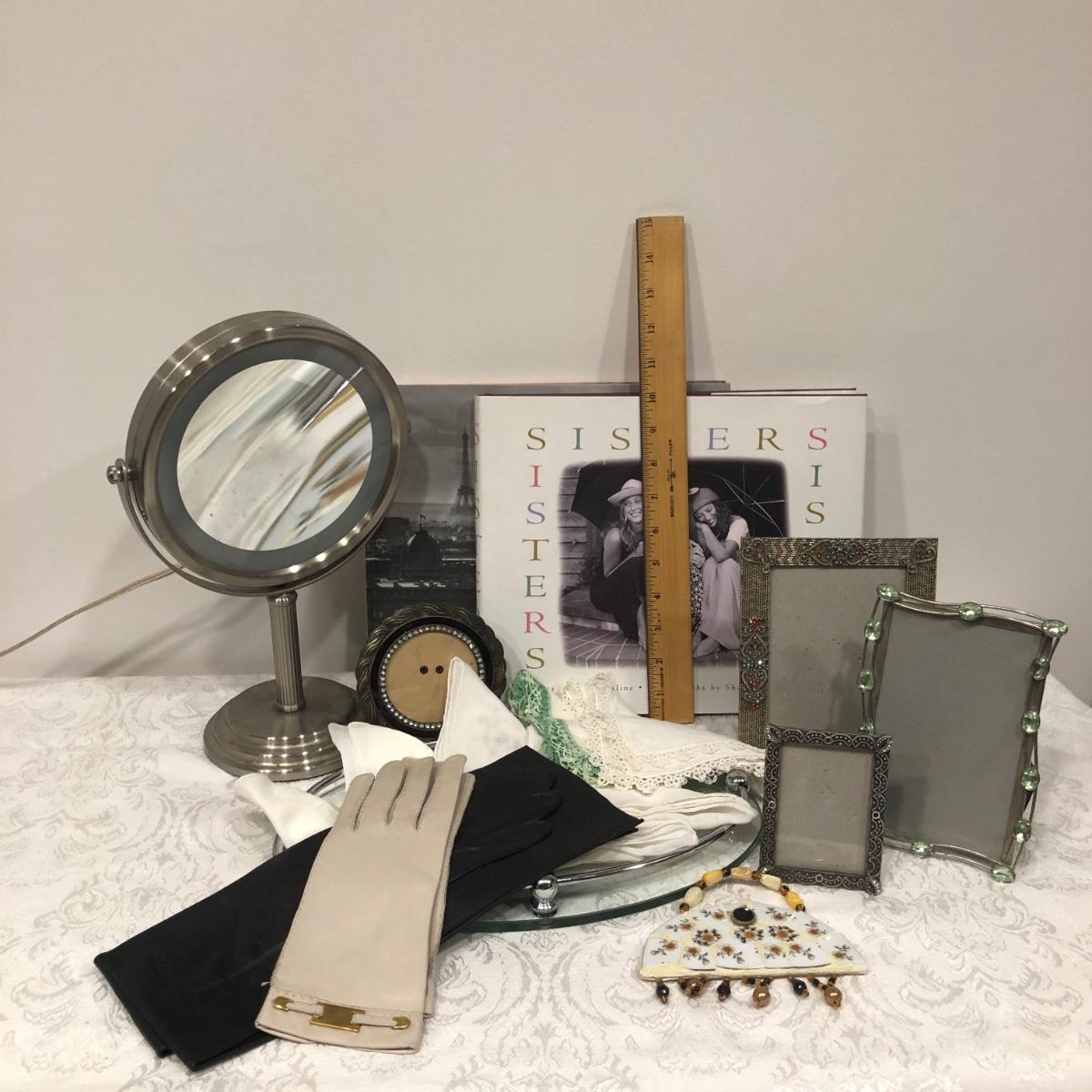 LOT 81M: Vanity Collection - Lighted/Magnified Makeup Mirror, Picture Frames, Fancy Gloves & More