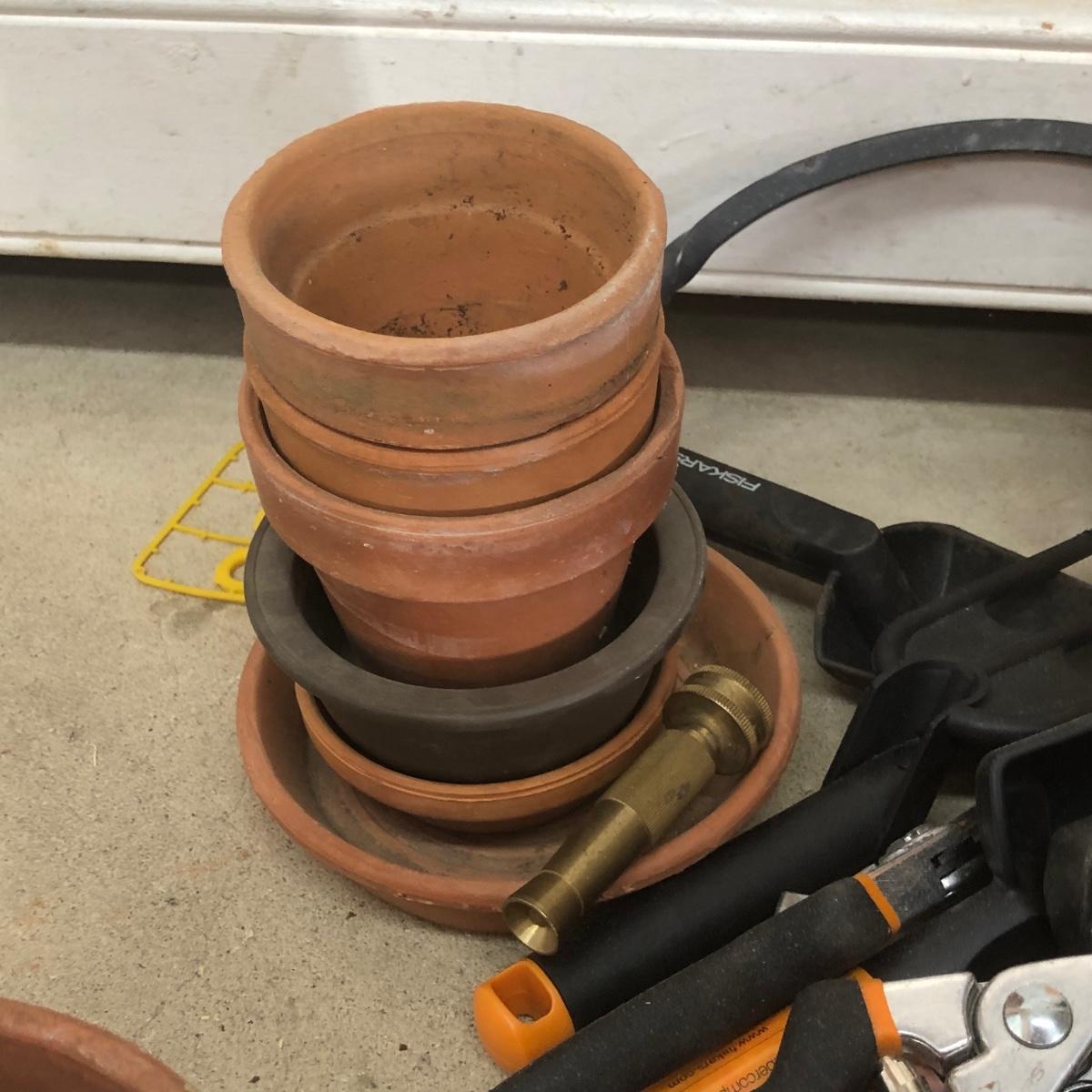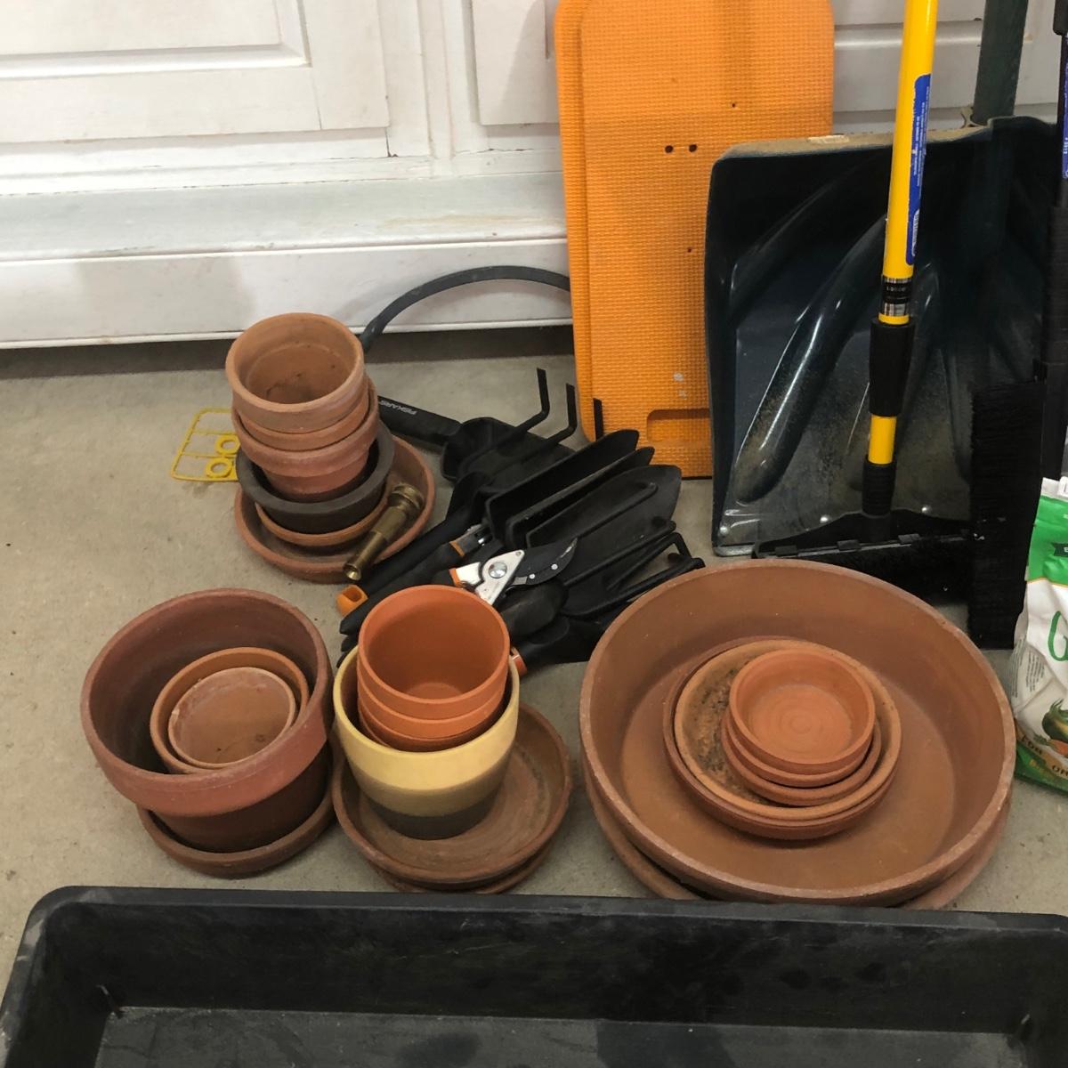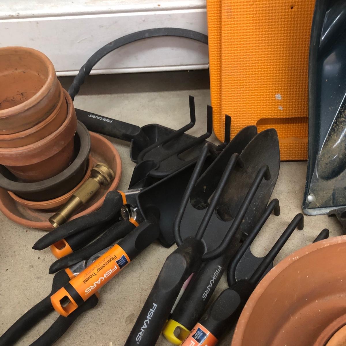 LOT 82M: Fiskars Gardening Tools, Pots/Planters, Shovel & More