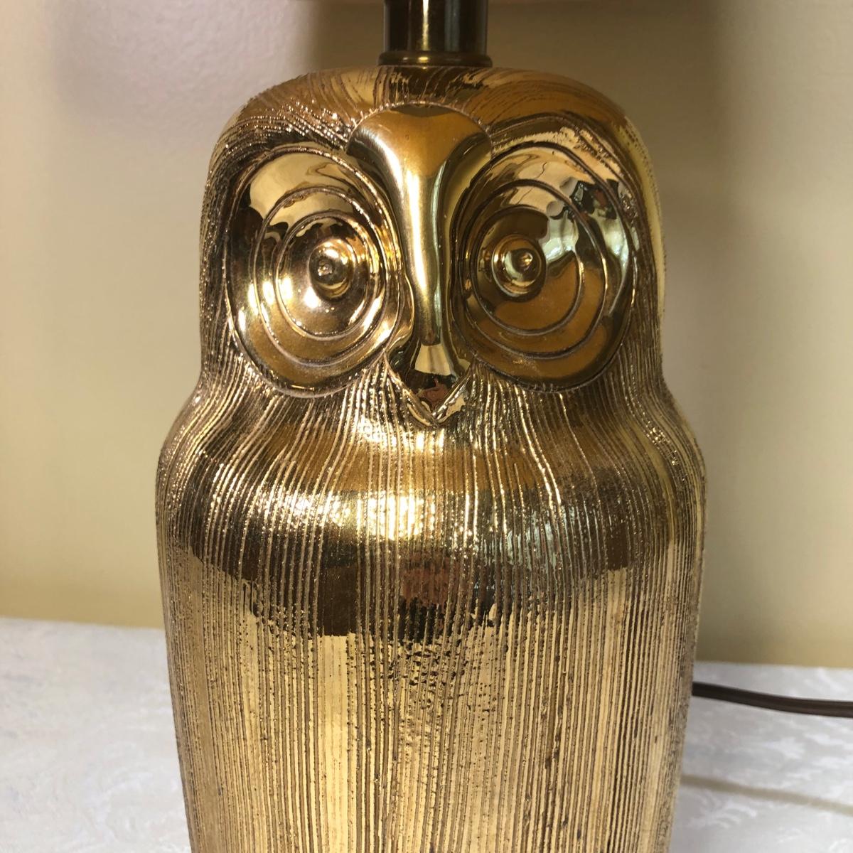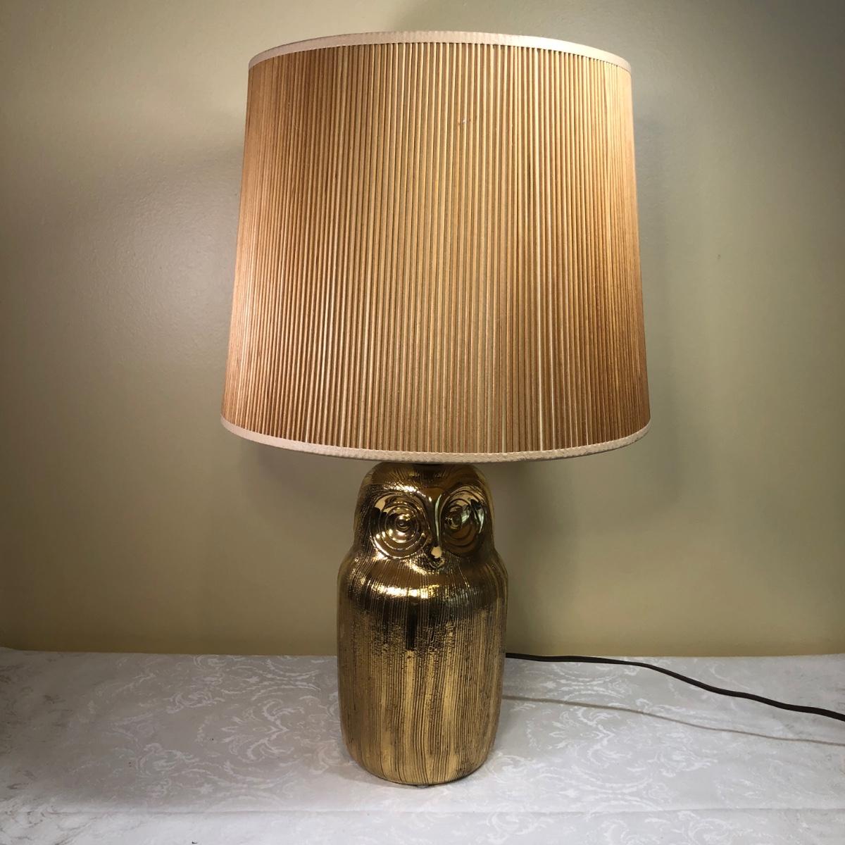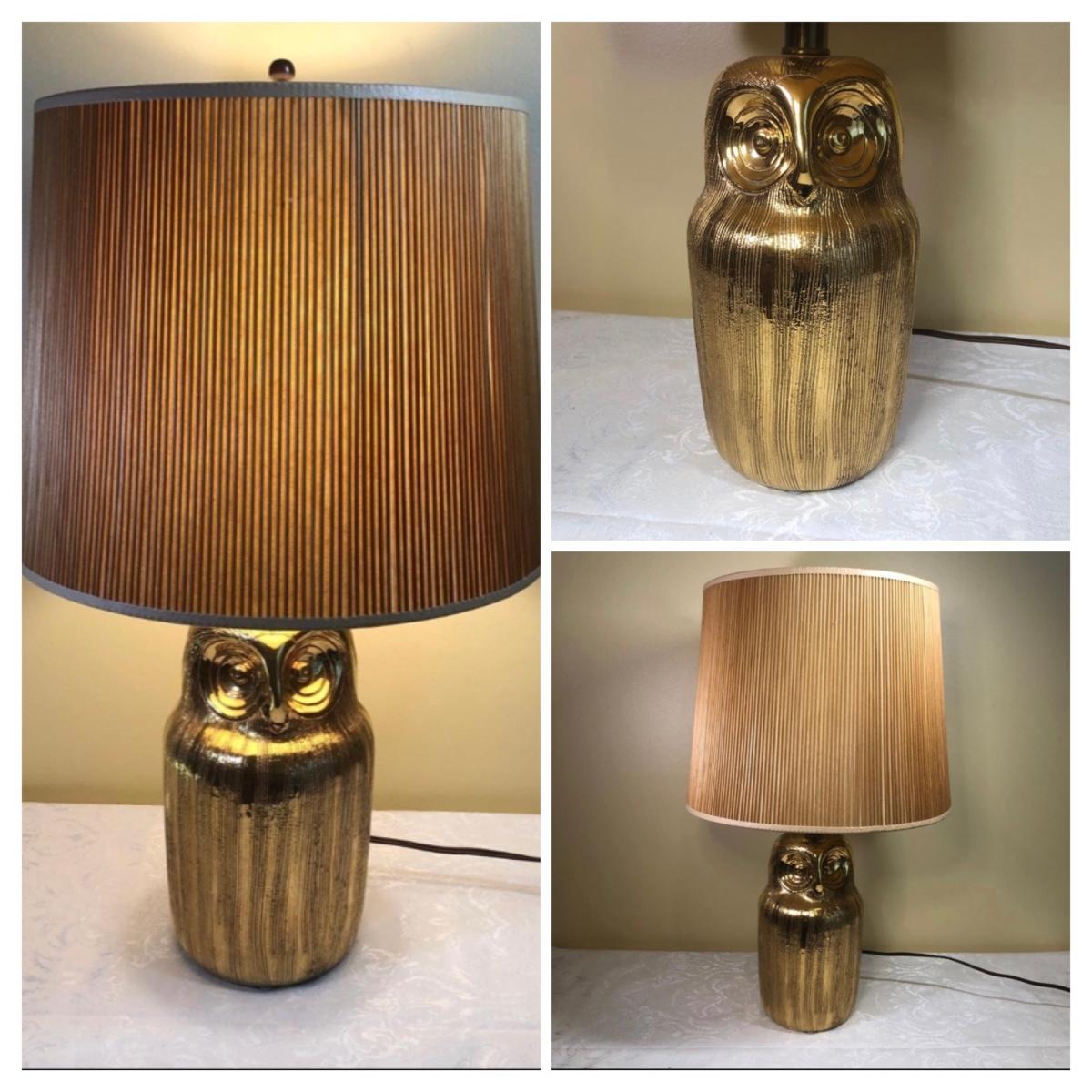 LOT 108M: MCM Vintage Gold Colored Owl Lamp (Bitossi ?) w/ Paper Shade