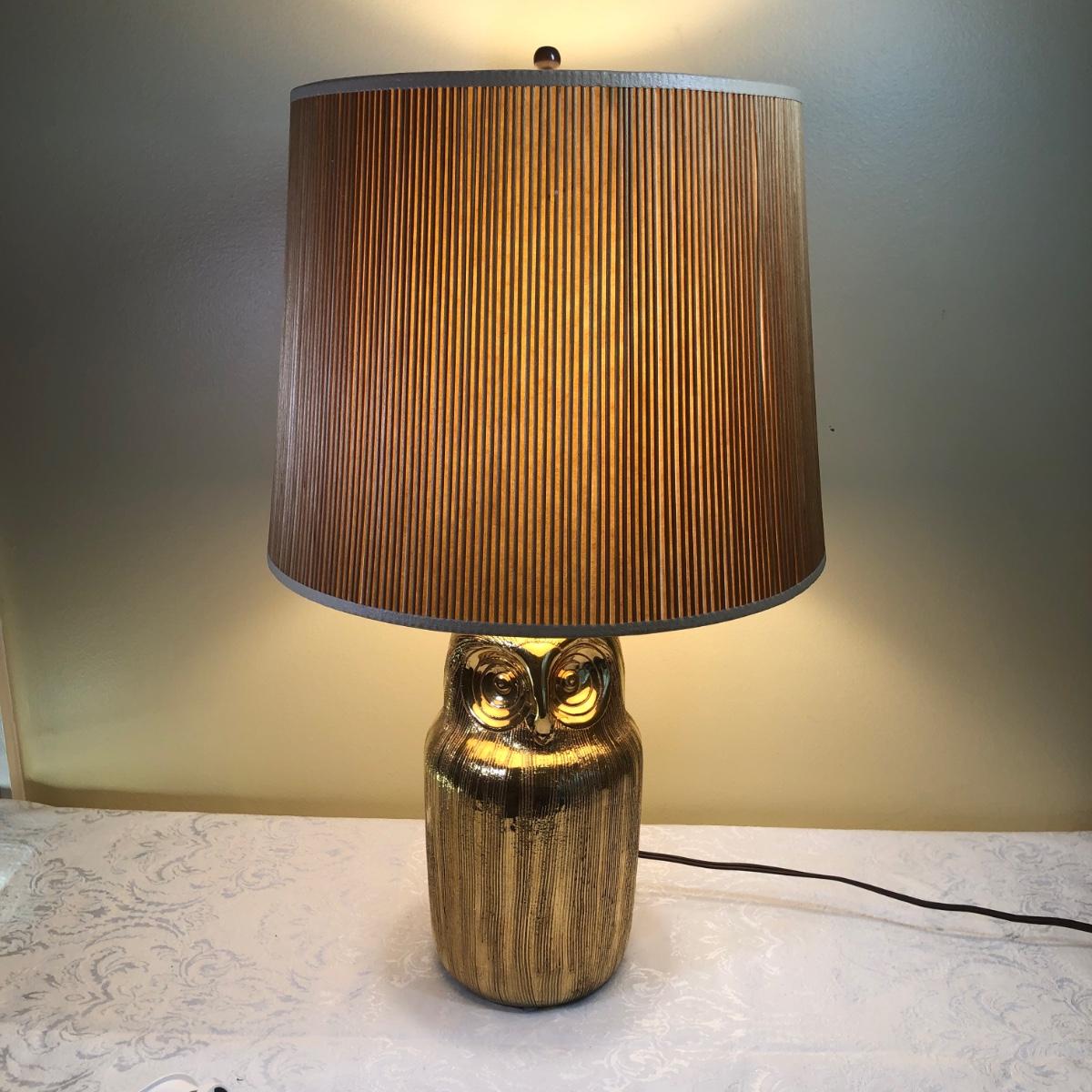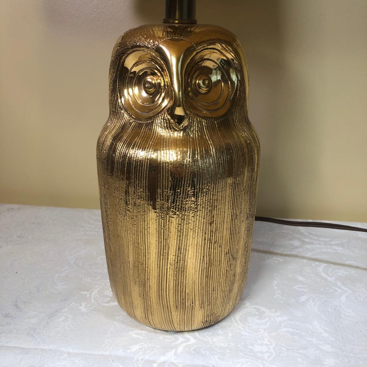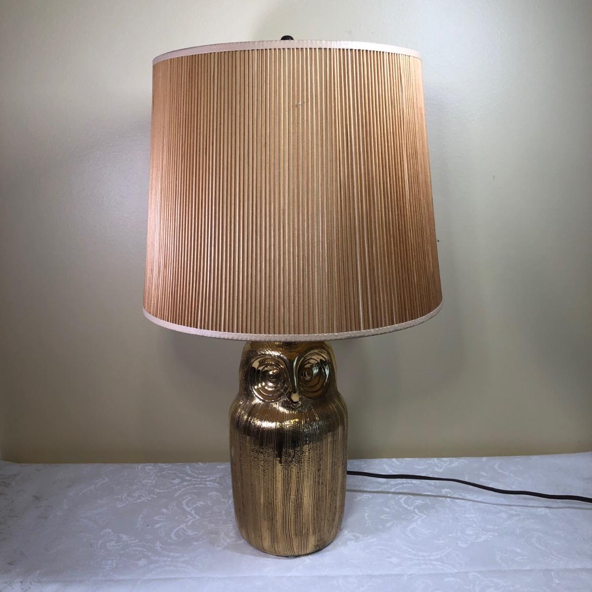 LOT 108M: MCM Vintage Gold Colored Owl Lamp (Bitossi ?) w/ Paper Shade