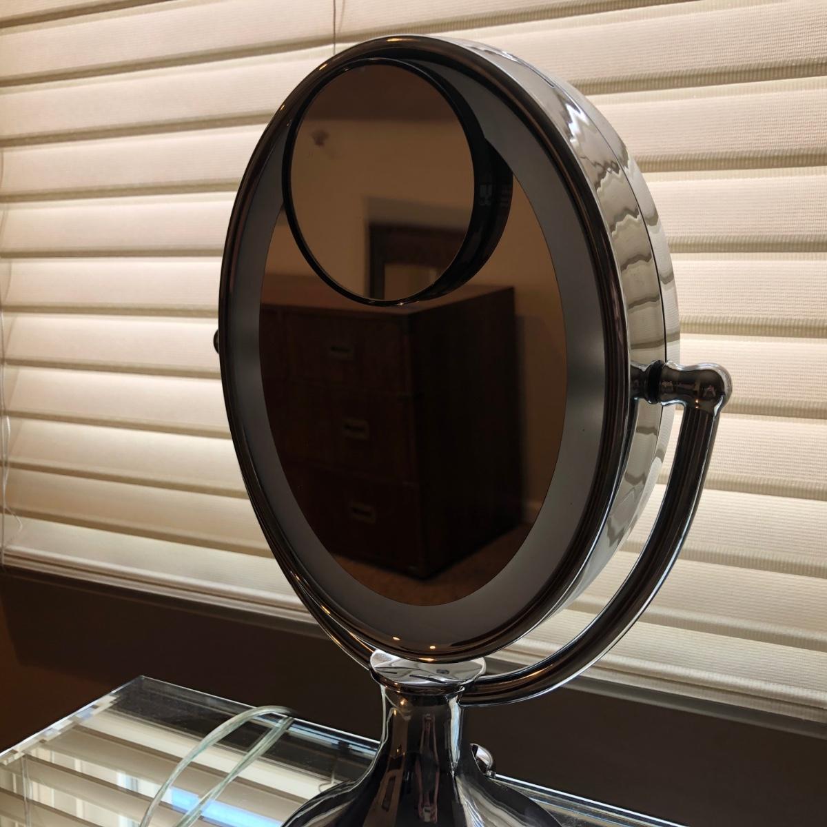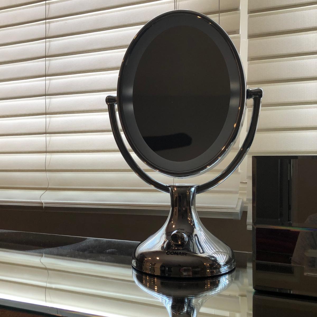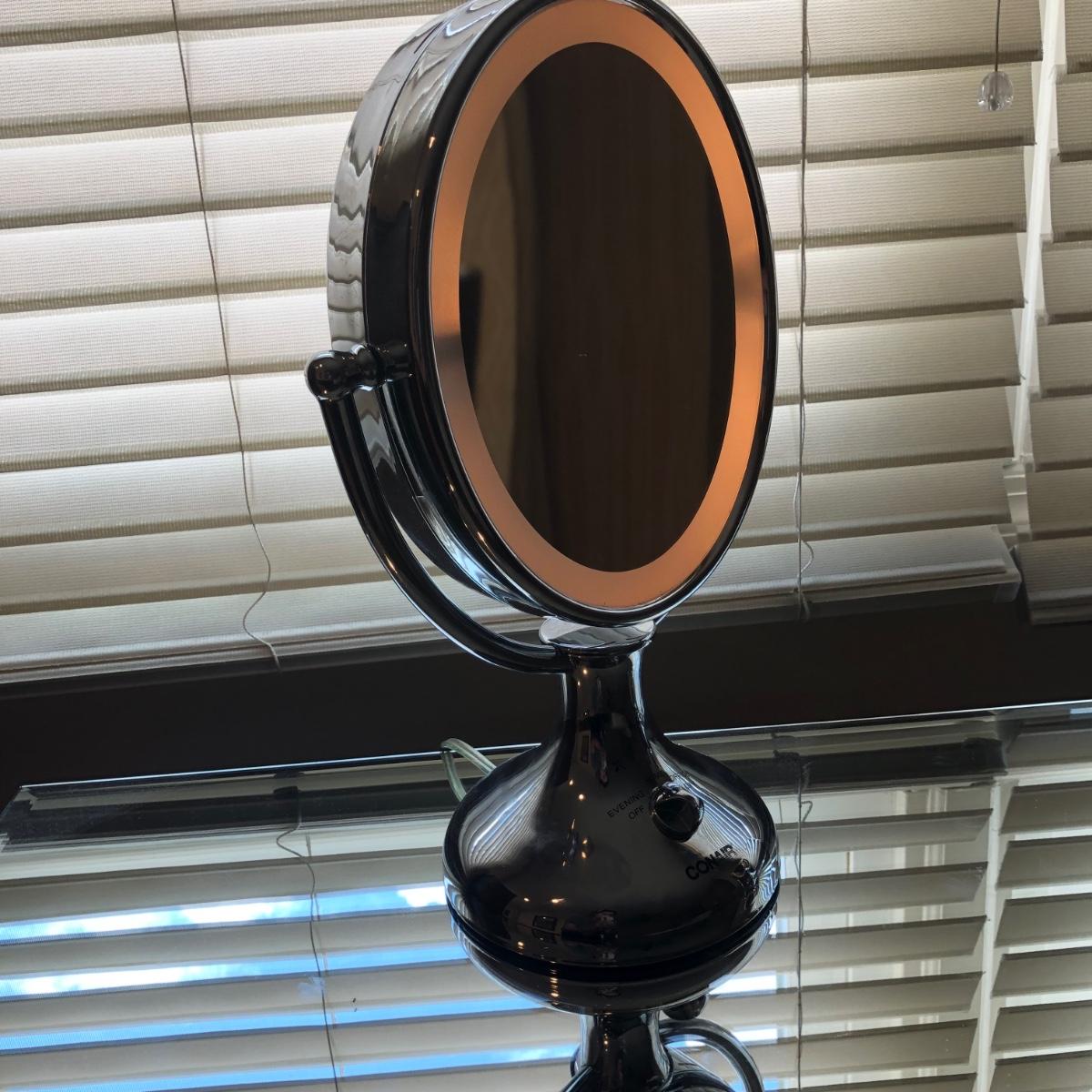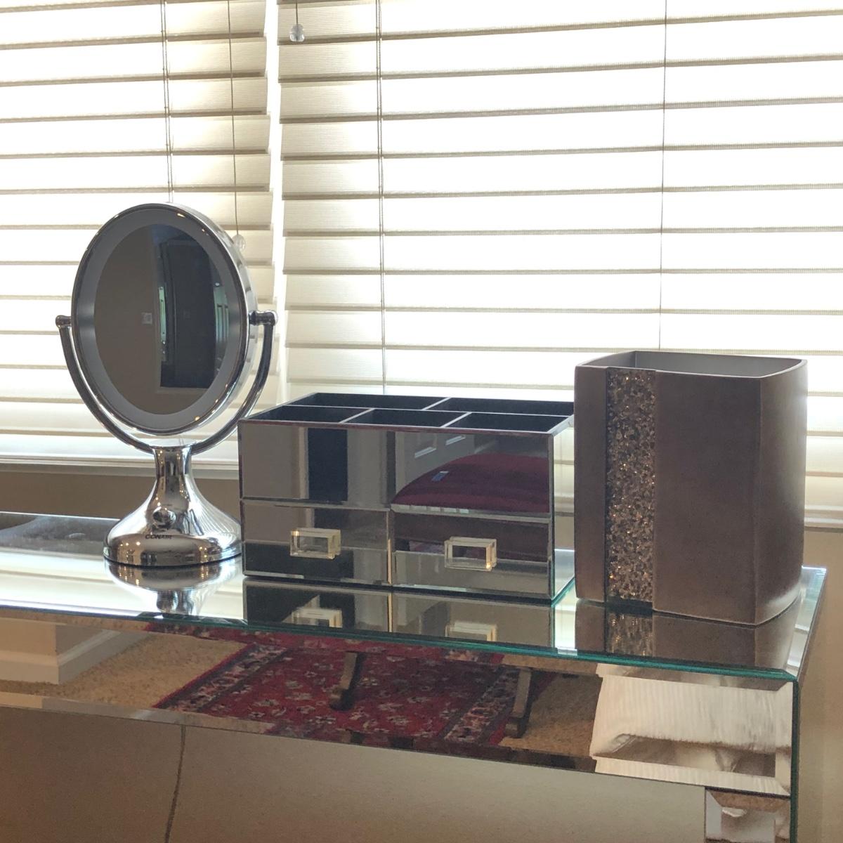 LOT 109M: Conair Light Up Mirror Model BE18LCX, Mirrored Vanity Organizer & Bling Waste Bin