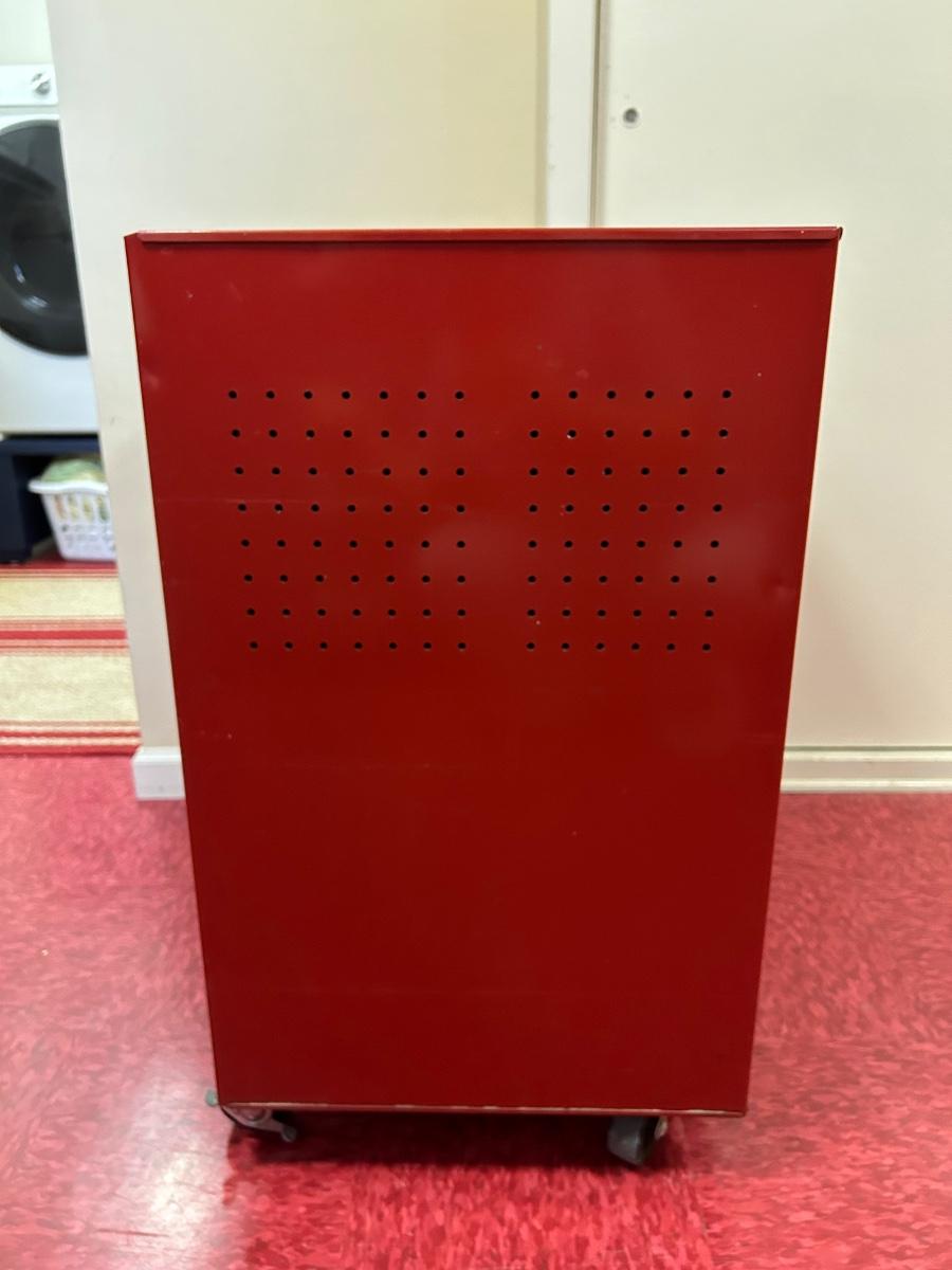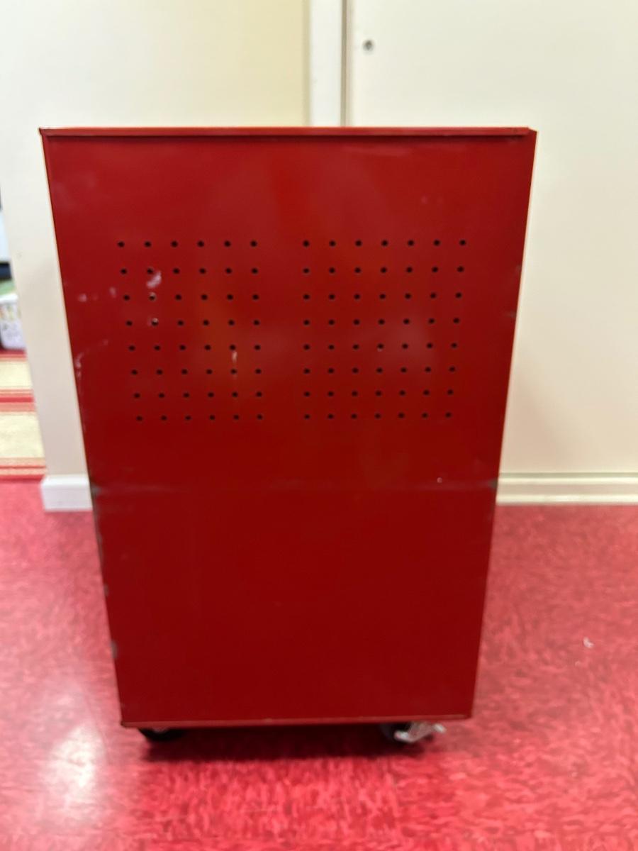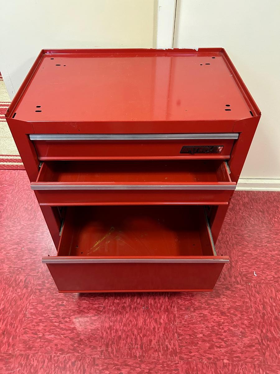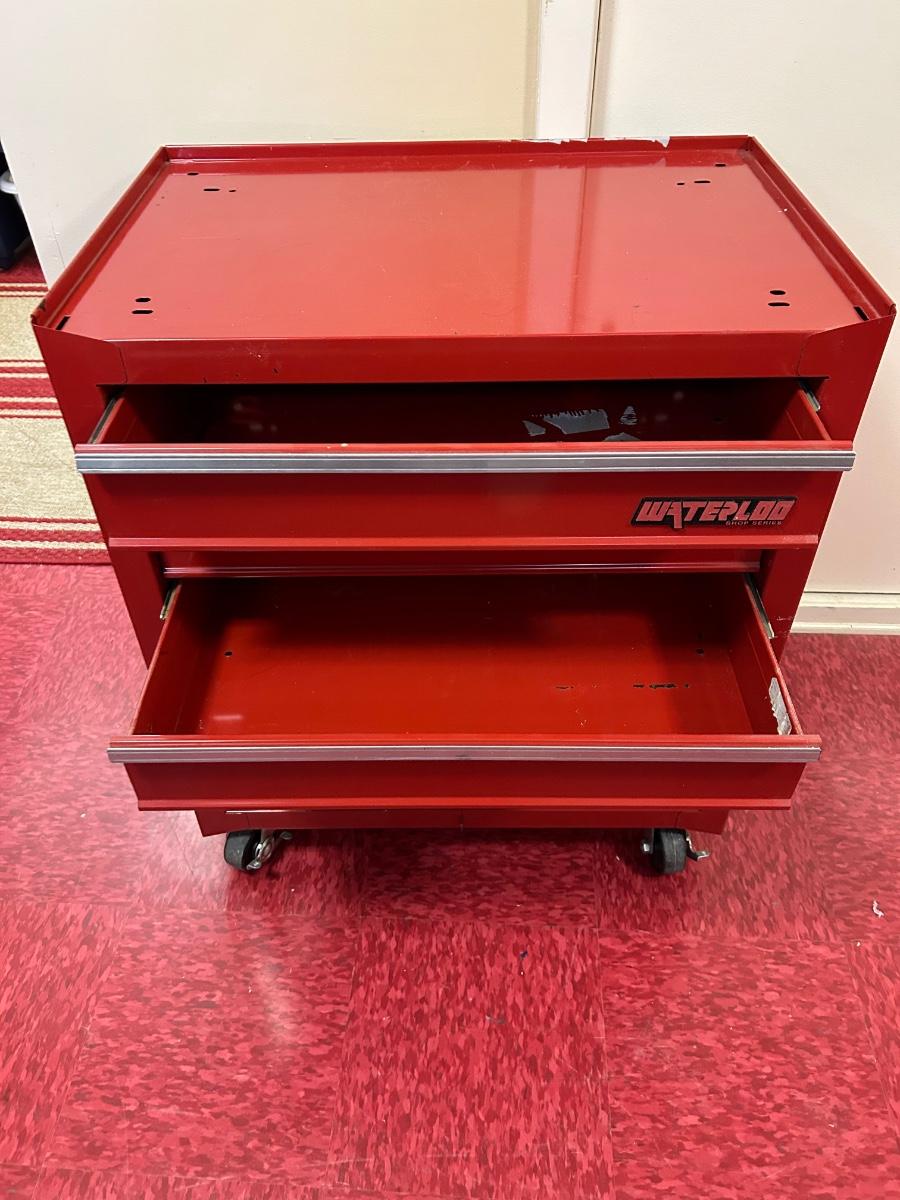 26”x18”x30” Red metal Waterloo tool box on wheels.