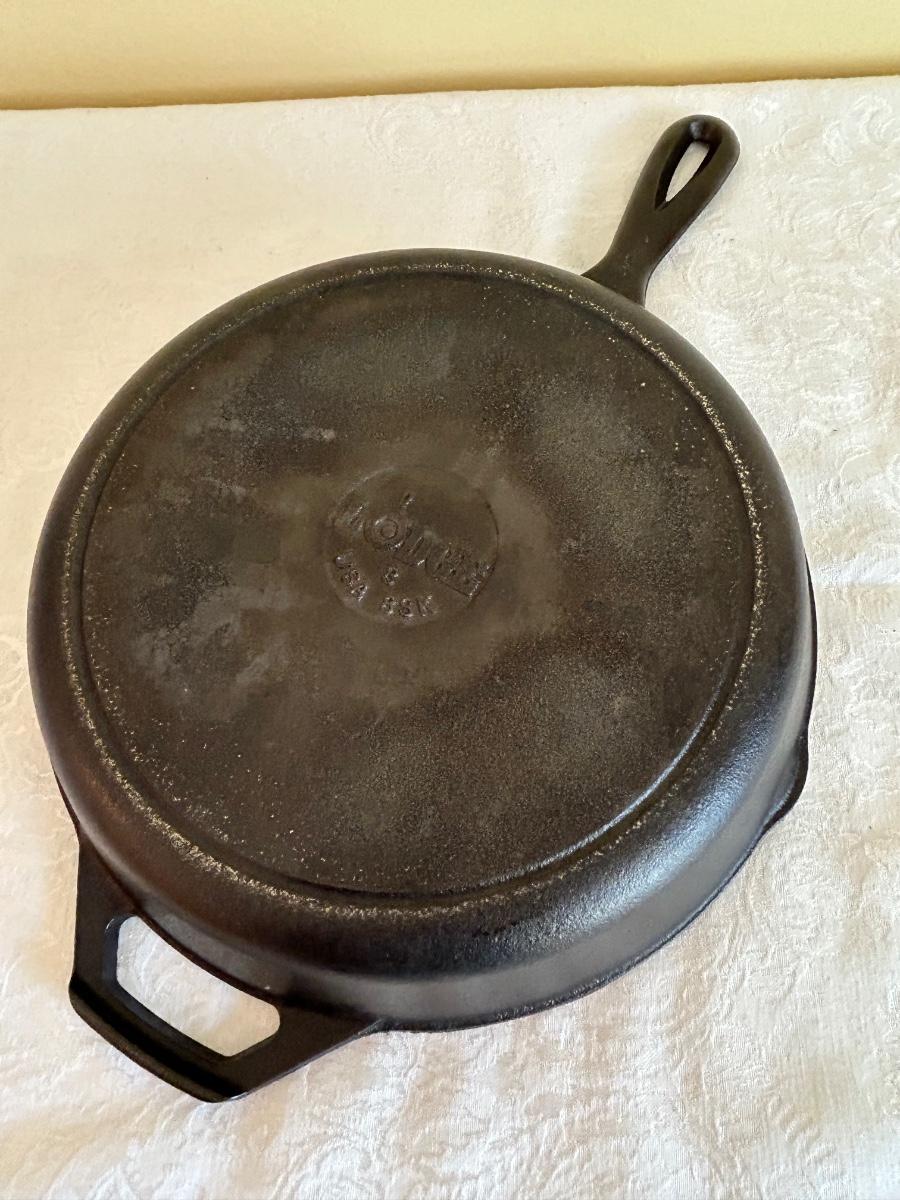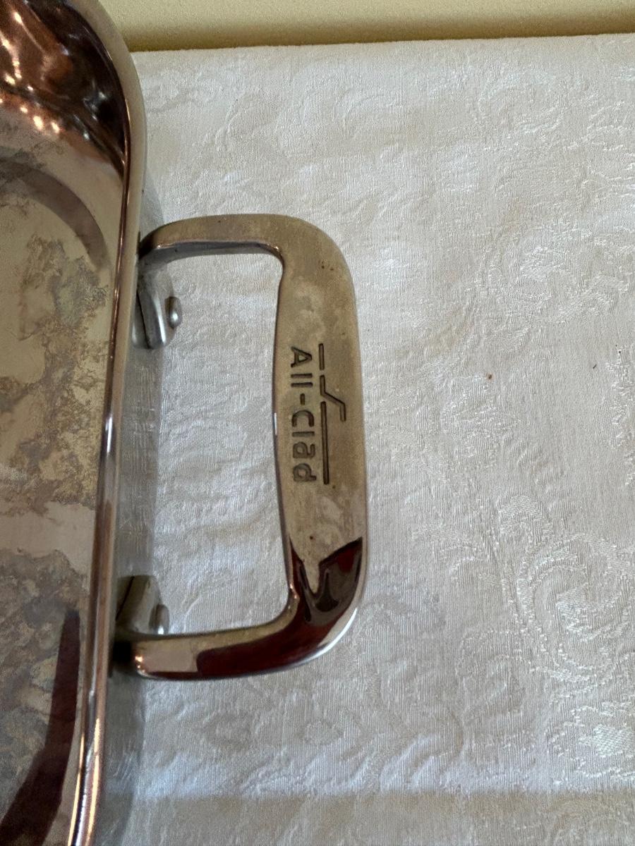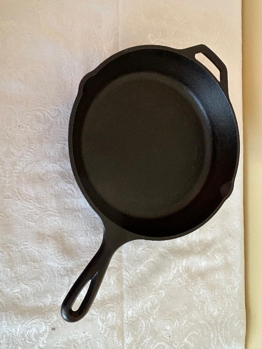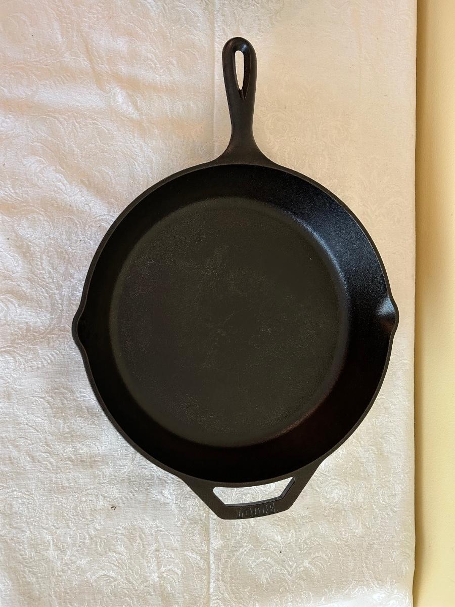 Two cast iron pans by Forge and a baking pan by All-Clad.