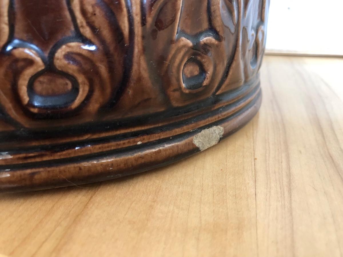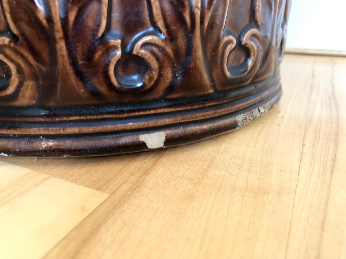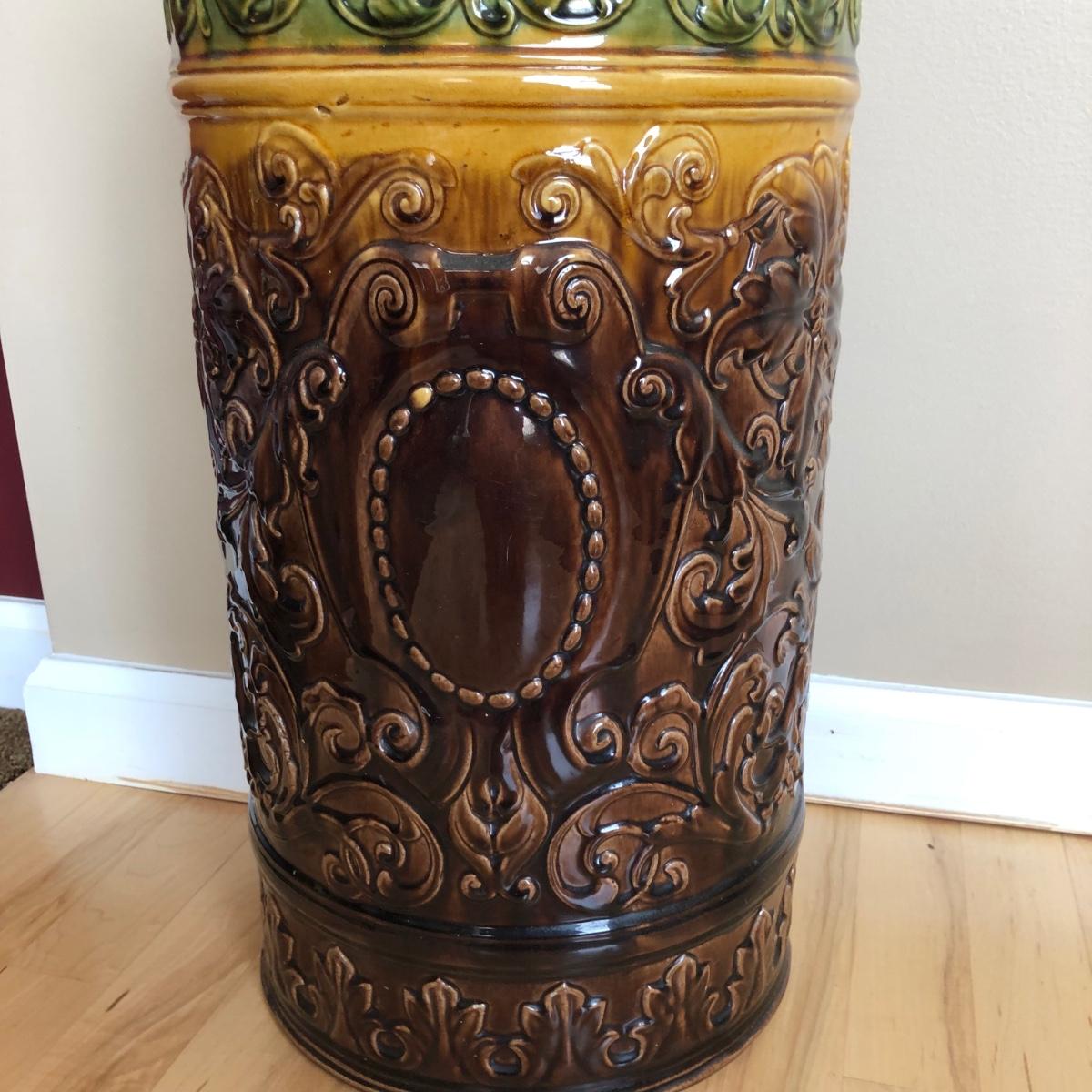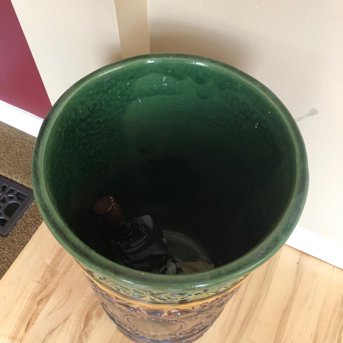 This piece is unmarked, but is thought to be a Weller Majolica pottery umbrella stand. Please see all pictures as they are the best representation of the items. The pictures show condition, measurements if taken, and what is included in the lot. Due to the large amount that we photograph and the time frame, we are not always able to take measurements. All items unless noted, are pre-owned and have been used. If you purchased furniture, you must bring help. We do not allow one person to carry large furniture out on their own. Bring help, tools and a truck for the safety of our client’s homes, and your personal safety. Any damages that result to the property including walls, and floors due to moving of the furniture will be charged to the buyer. Company policy. Thank you.