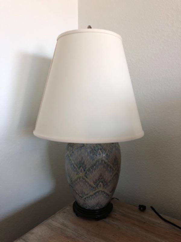 Lot 90U. Three table lamps“”1 glass and brass, 2 porcelain with shades--Was $25 - Now $10
