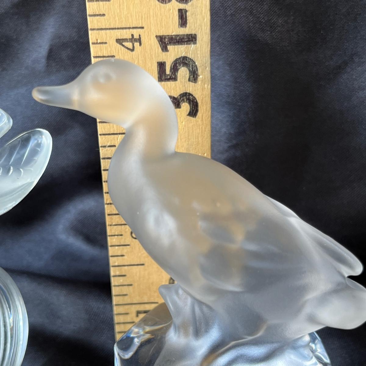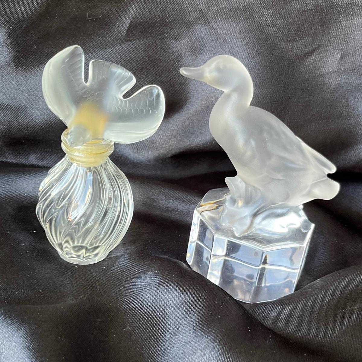 The goose is Goebel, does have a chip on the base. The Perfume is Lalique no damage