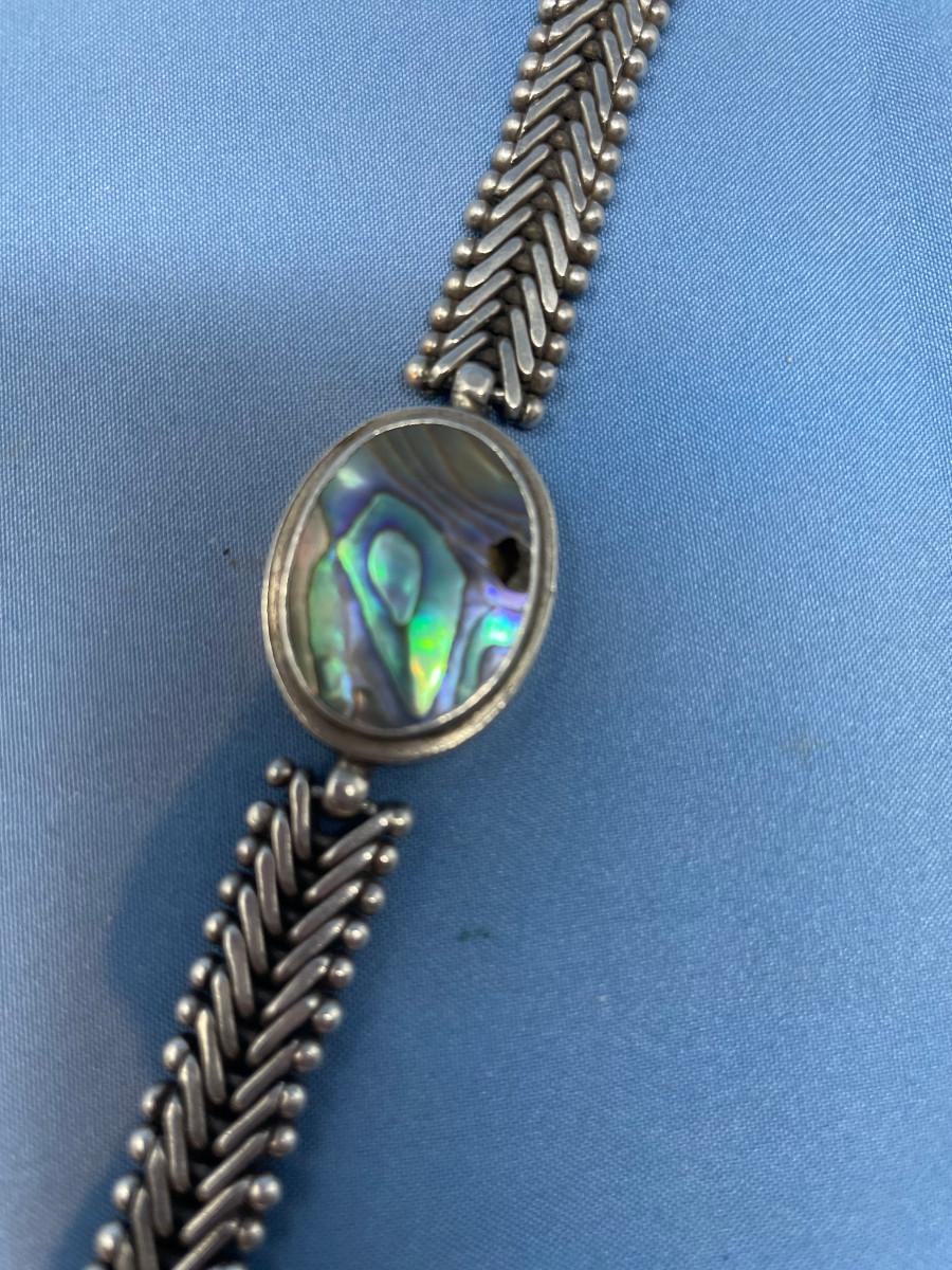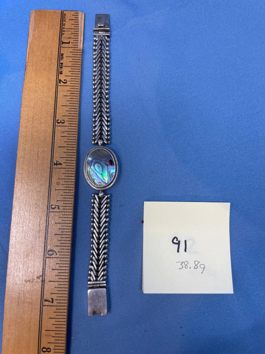 lot 91 Abalone Sterling silver Herringbone bracelet