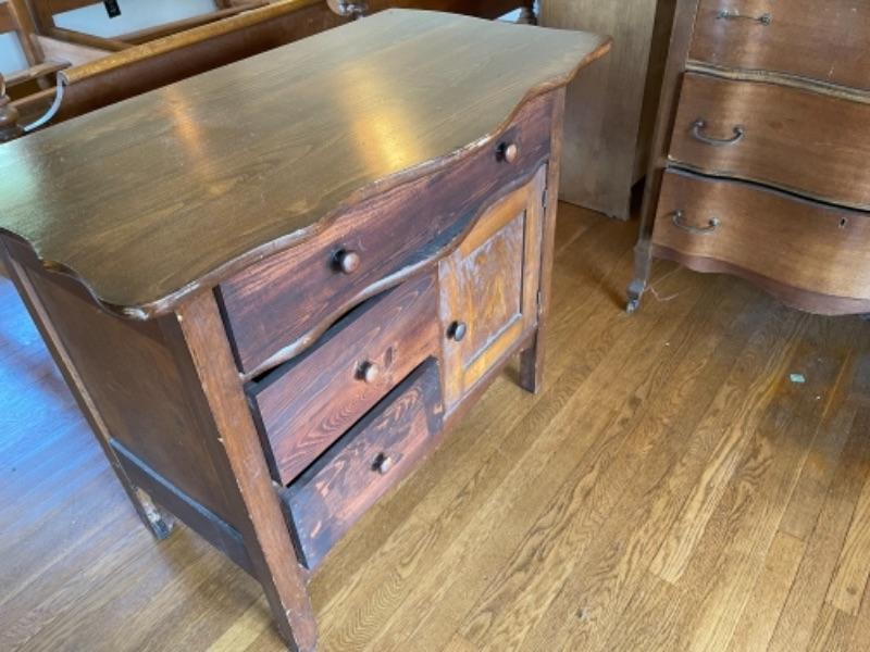Lot 91. 1920s vintage commode“”three drawers newly repaired and one cupboard--$30