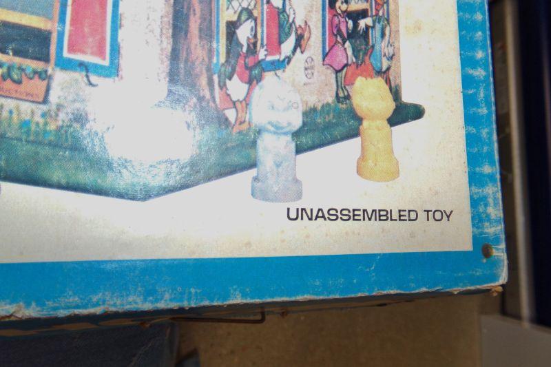 THE DISNEY FIGURES HAVE LOSS OF PAINT AND I DON'T THINK THE BAG WITH YELLOW CHARACTERS GOES WITH THIS TOY