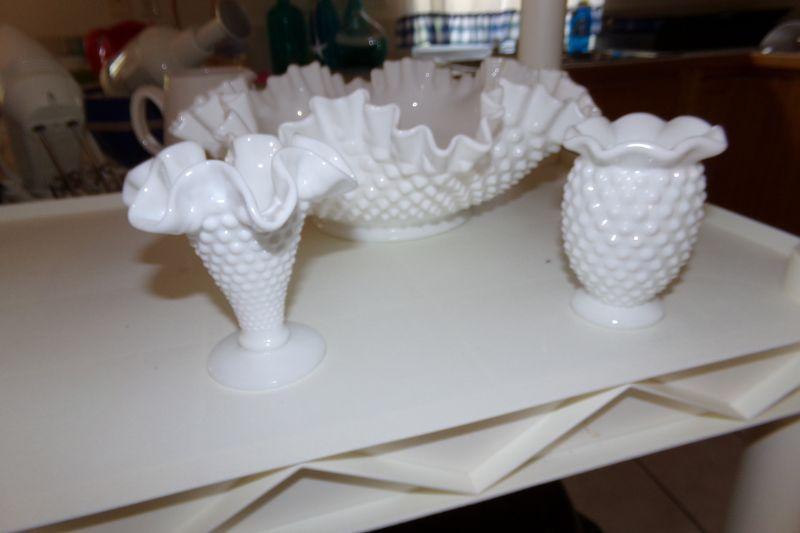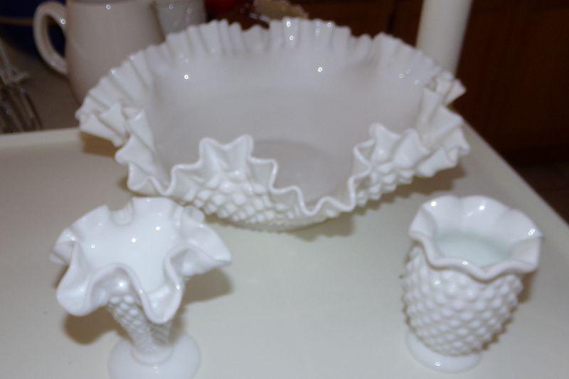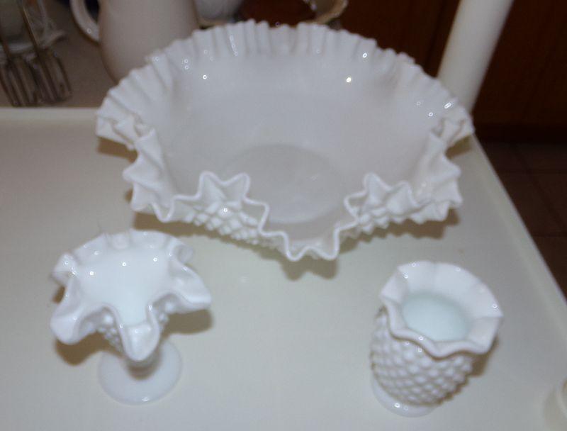 FENTON RUFFLED BOWL AND 2 SMALLER FENTON PIECES