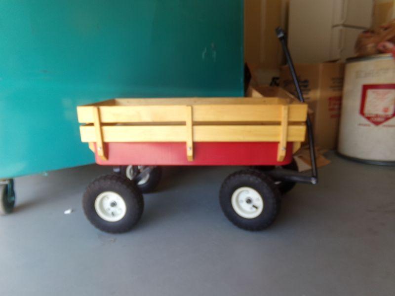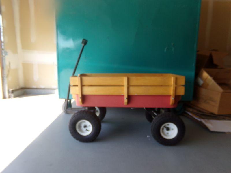 LIKE NEW WITH METAL FRAME & WOODEN SIDE RAILS, LARGE TIRES FOR ROUGH TERRAIN