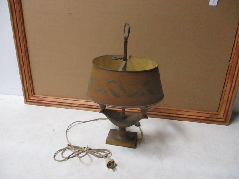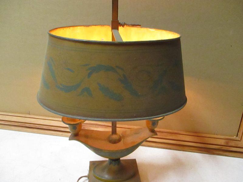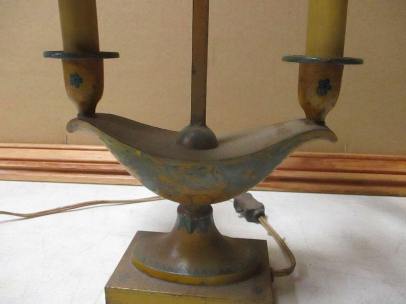 Lot 91 - Vintage Metal Alladin Post Table Lamp with Metal Tole Shade