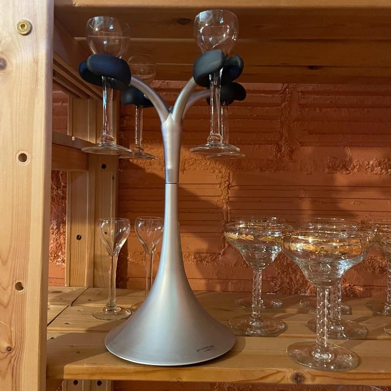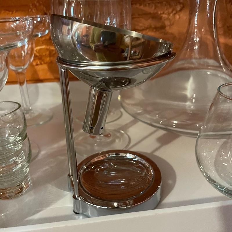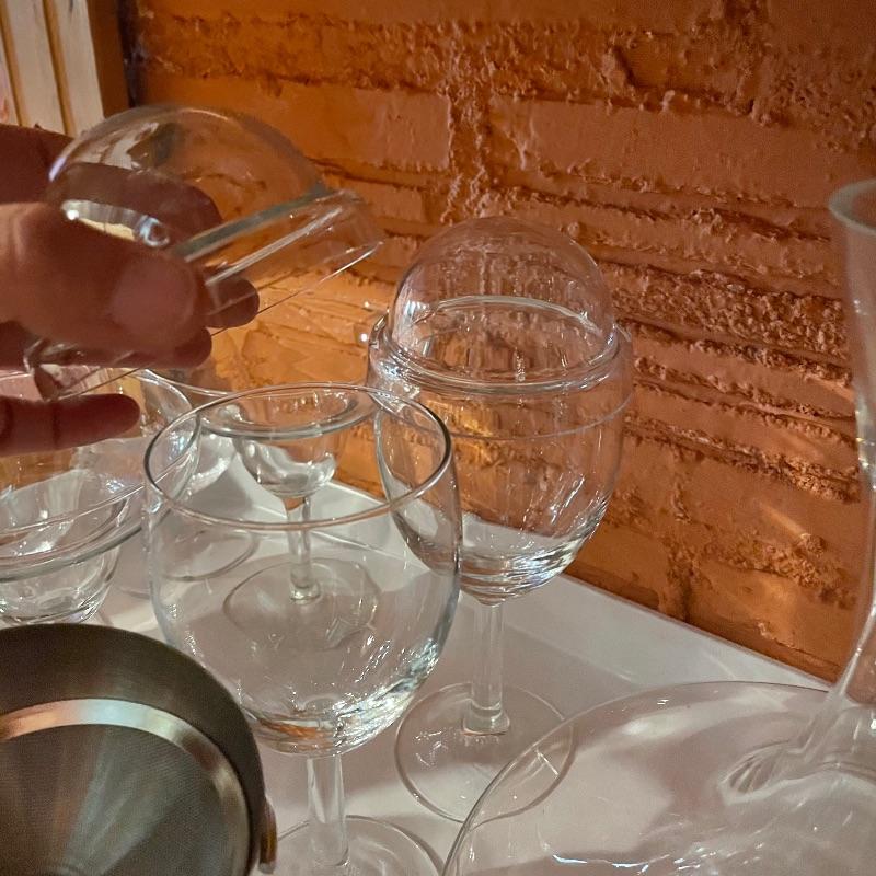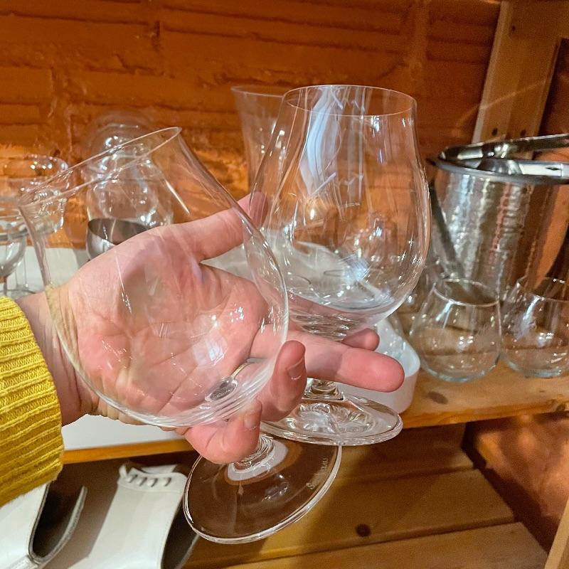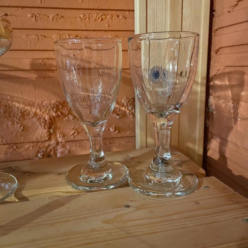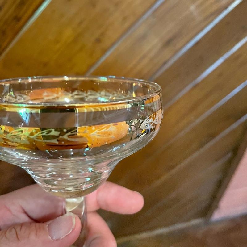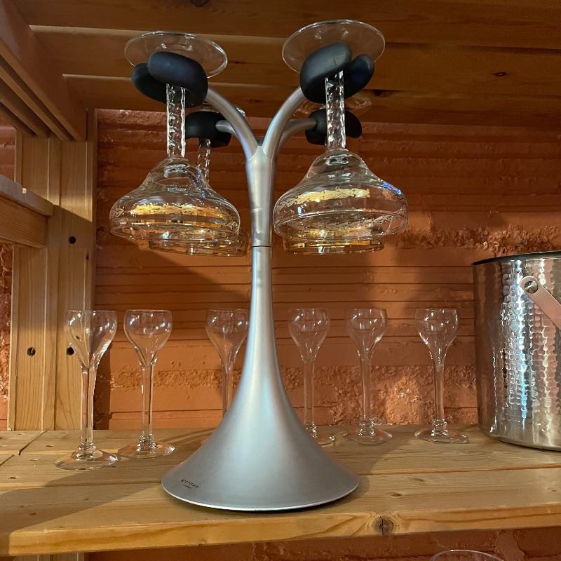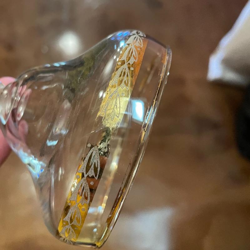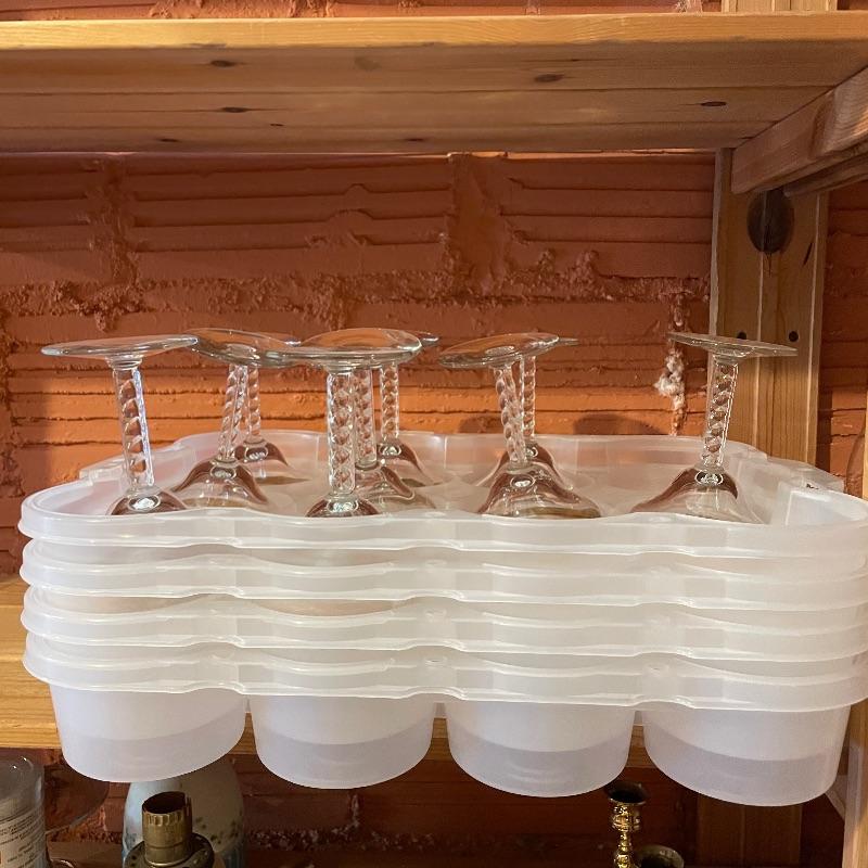 Add or upgrade your bar glassware with this large collection. Eleven 3.5”d x 5.25” champagne coups with a golden floral rim and textured stems. Eight shot glasses, six Biltmore stemless tasting glasses with the famous Vanderbilt V, two wine glasses with glass covers for making drinking outside a little more classy. Lot also includes a silver ice bucket and tongs, modern decanter, shaker lid stand, margarita and cordial glasses and lastly a plastic, sleek glass stand. Lot also contains four 12-glass plastic trays for storage/transportation, 16” x 13” x 2.5”. See images. Local pick up only.