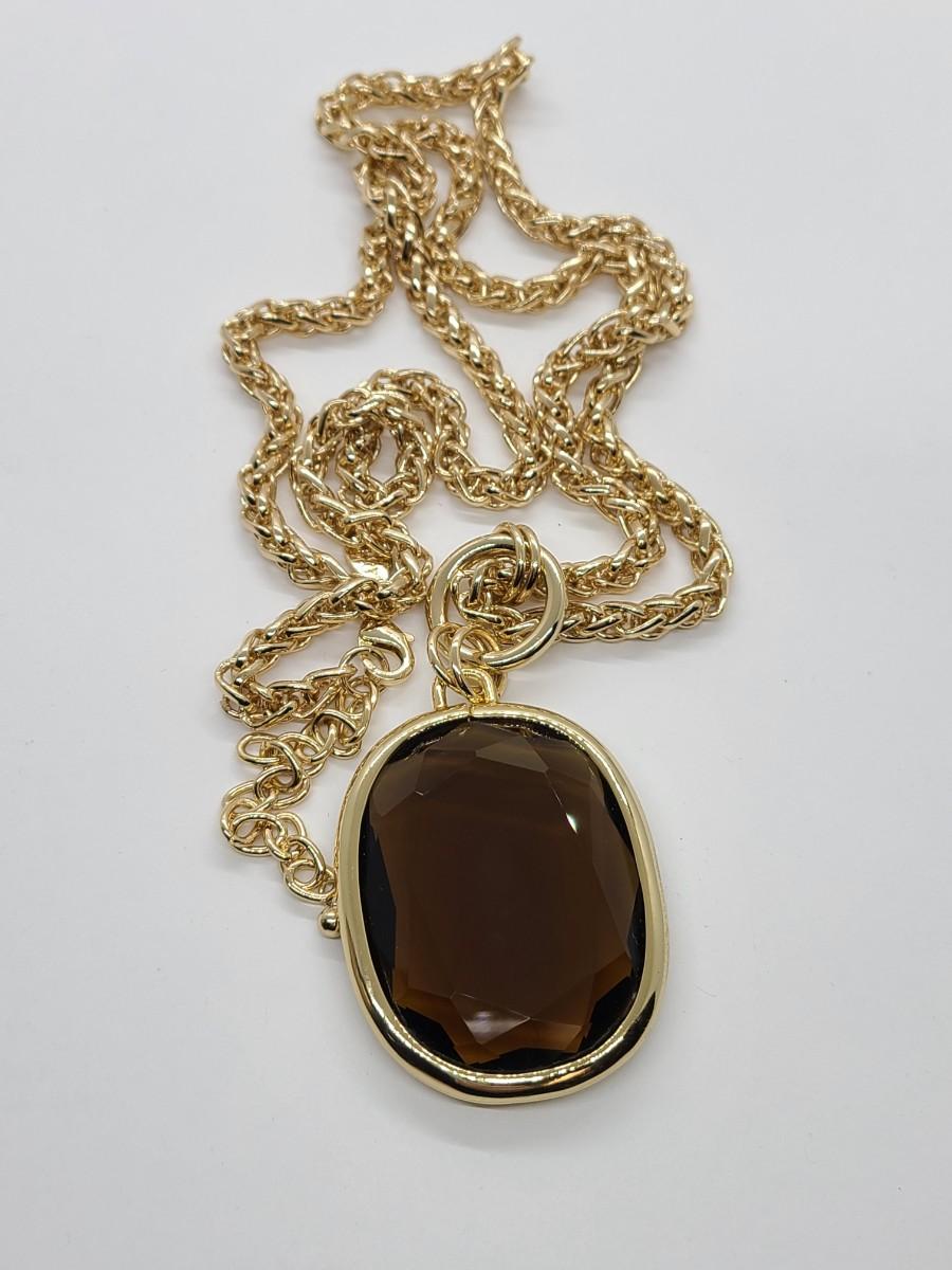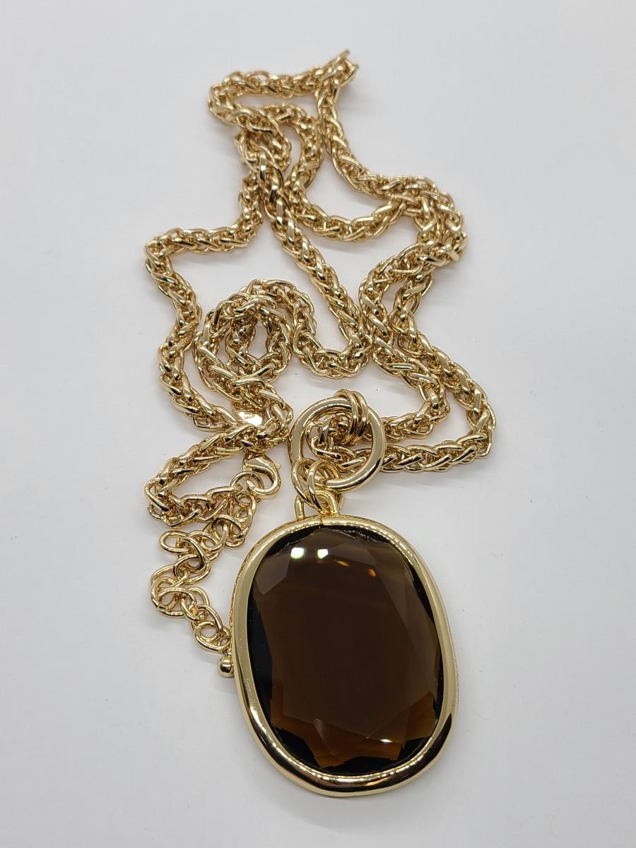 Lot 91: Joan Rivers  "Smokey topaz" Crystal Pendant Necklace