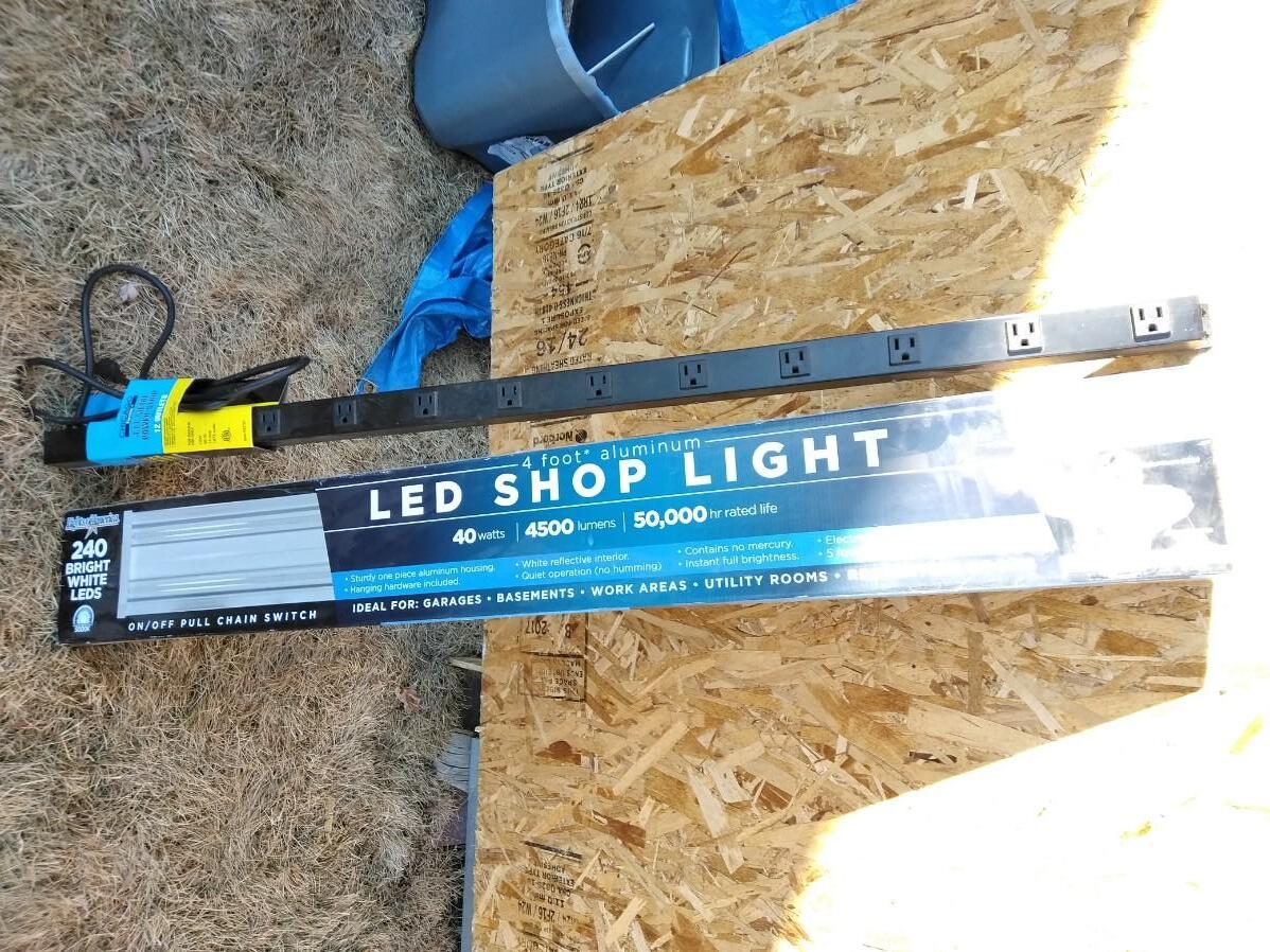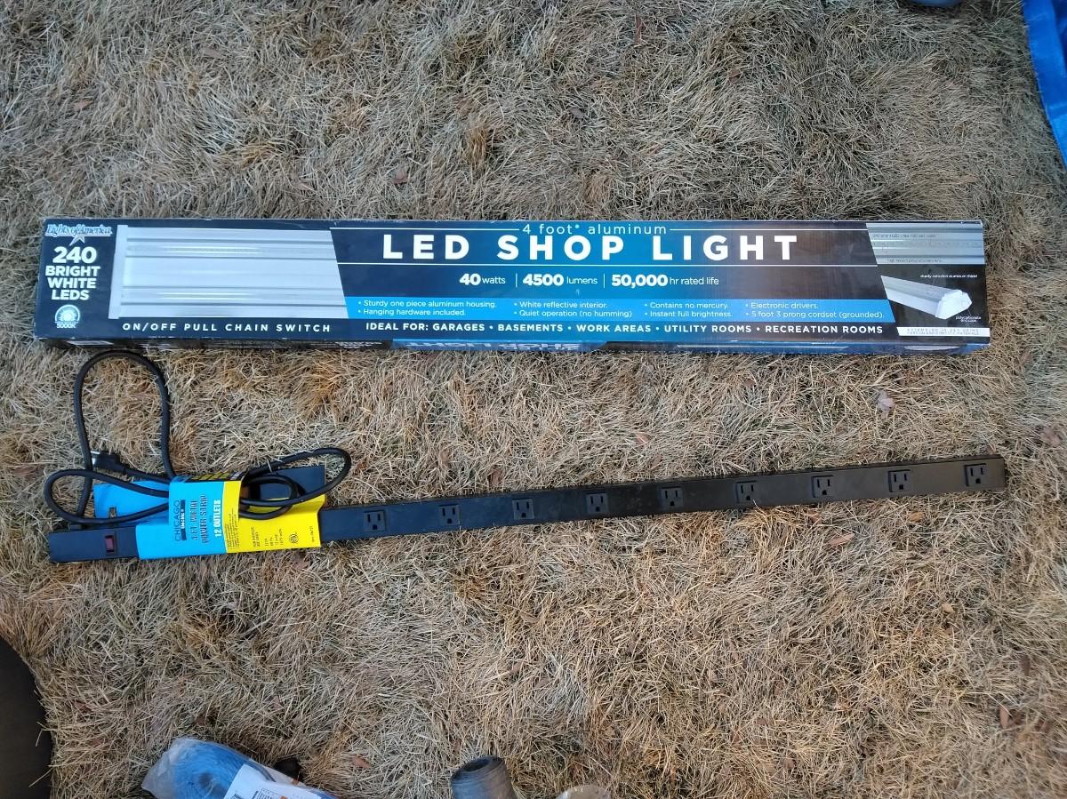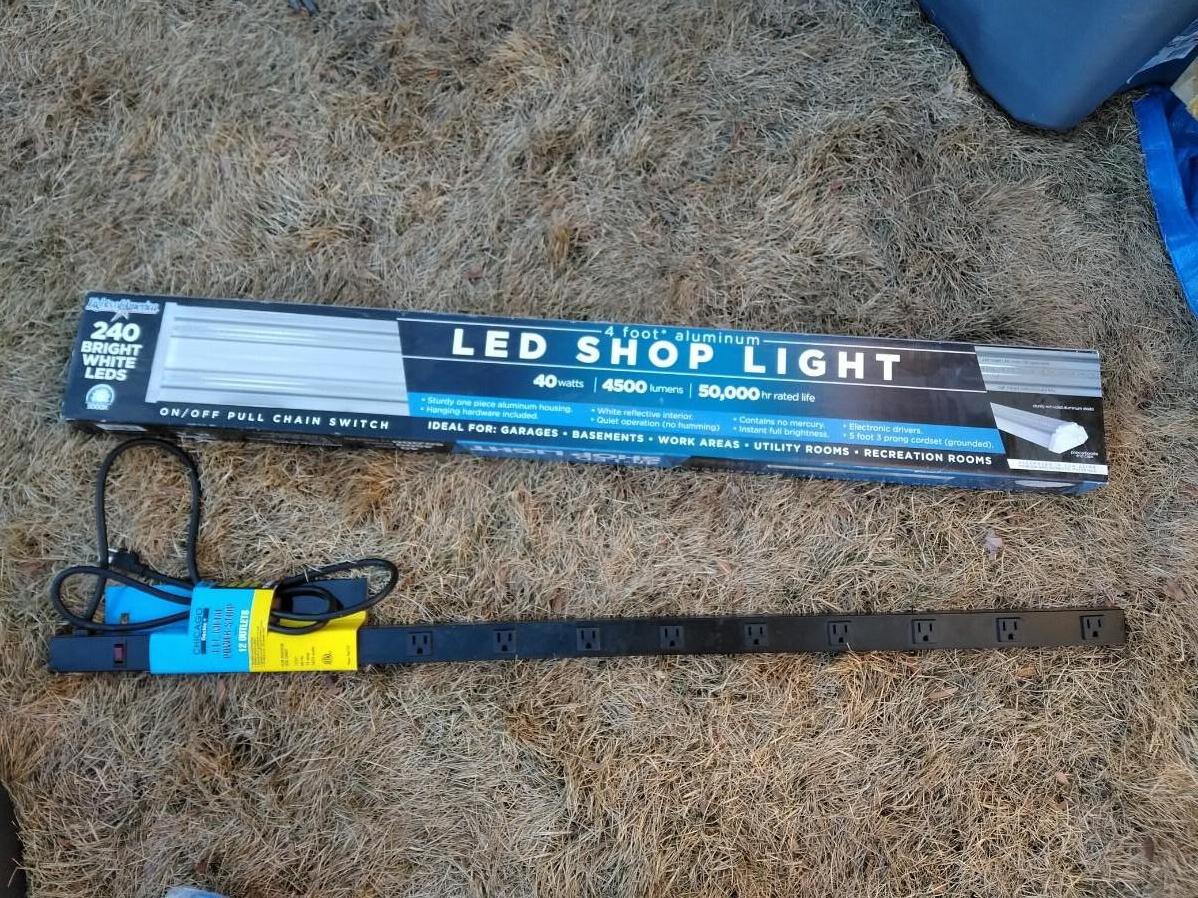 LOT 91 NEW LED SHOP LIGHT AND 12 OUTLET POWER STRIP