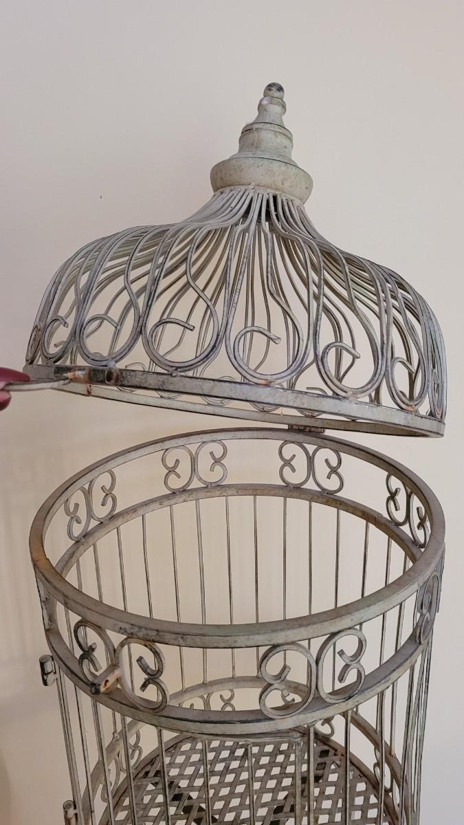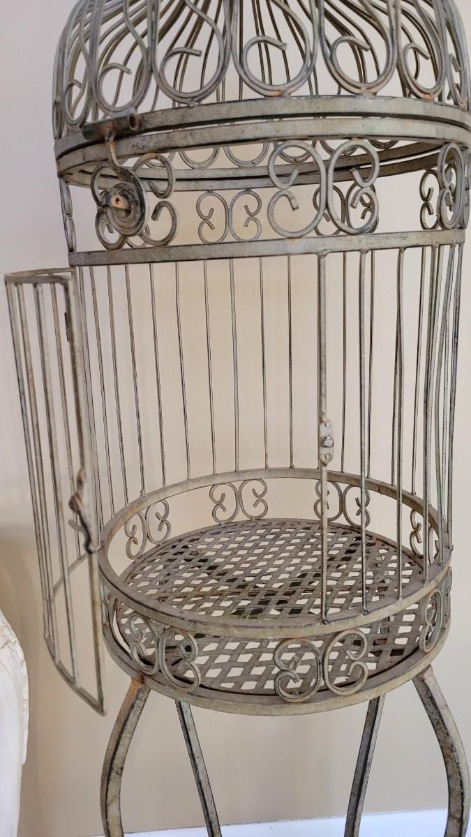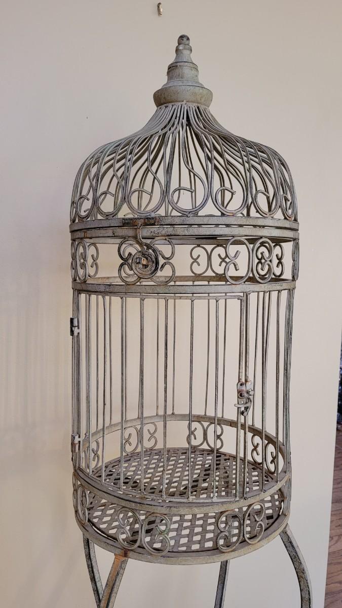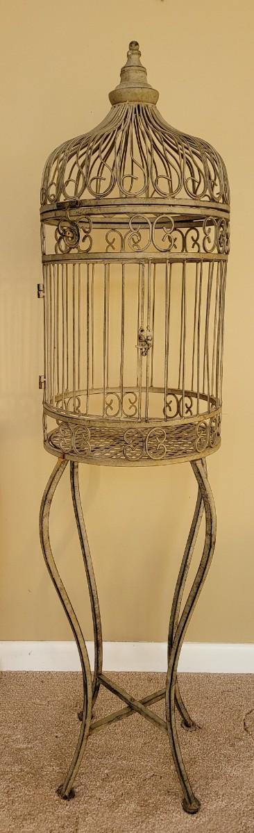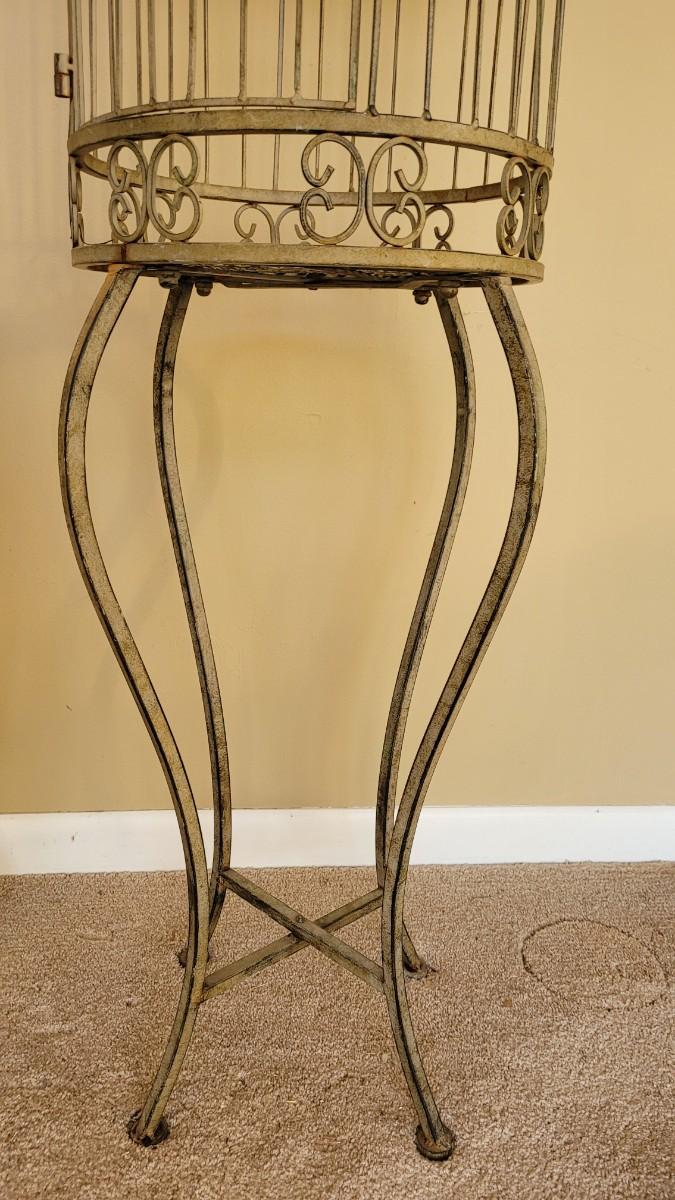 Lot 91: Vintage One Piece Metal Birdcage & Stand