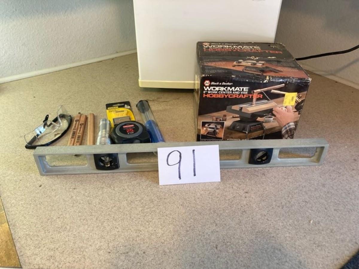 LOT 91 WORKMATE HOBBYCRAFTER, LEVEL, HAND TOOLS AND MORE