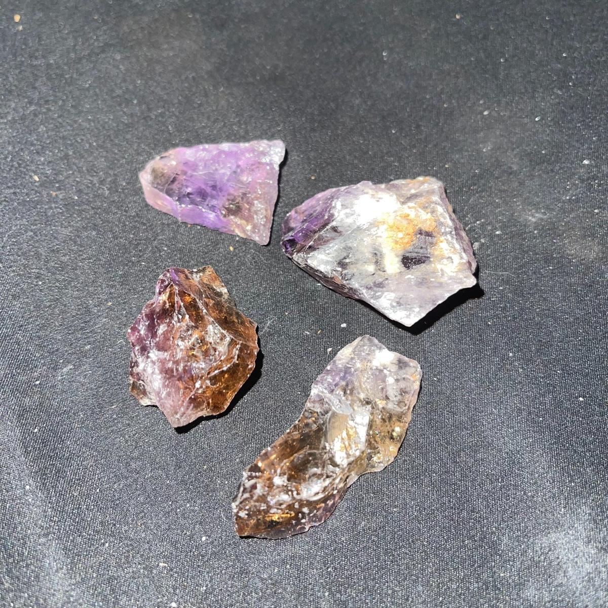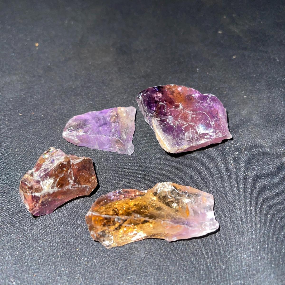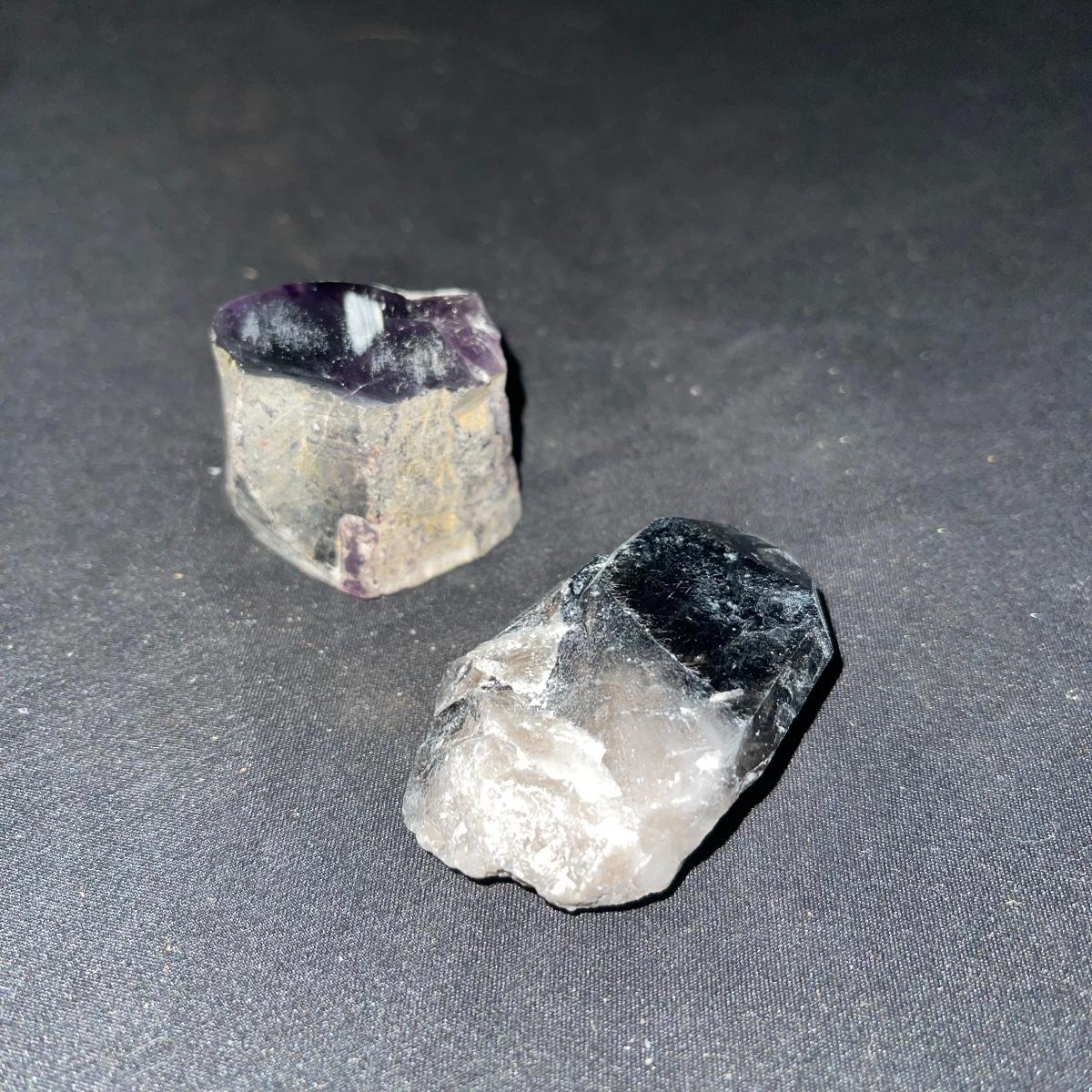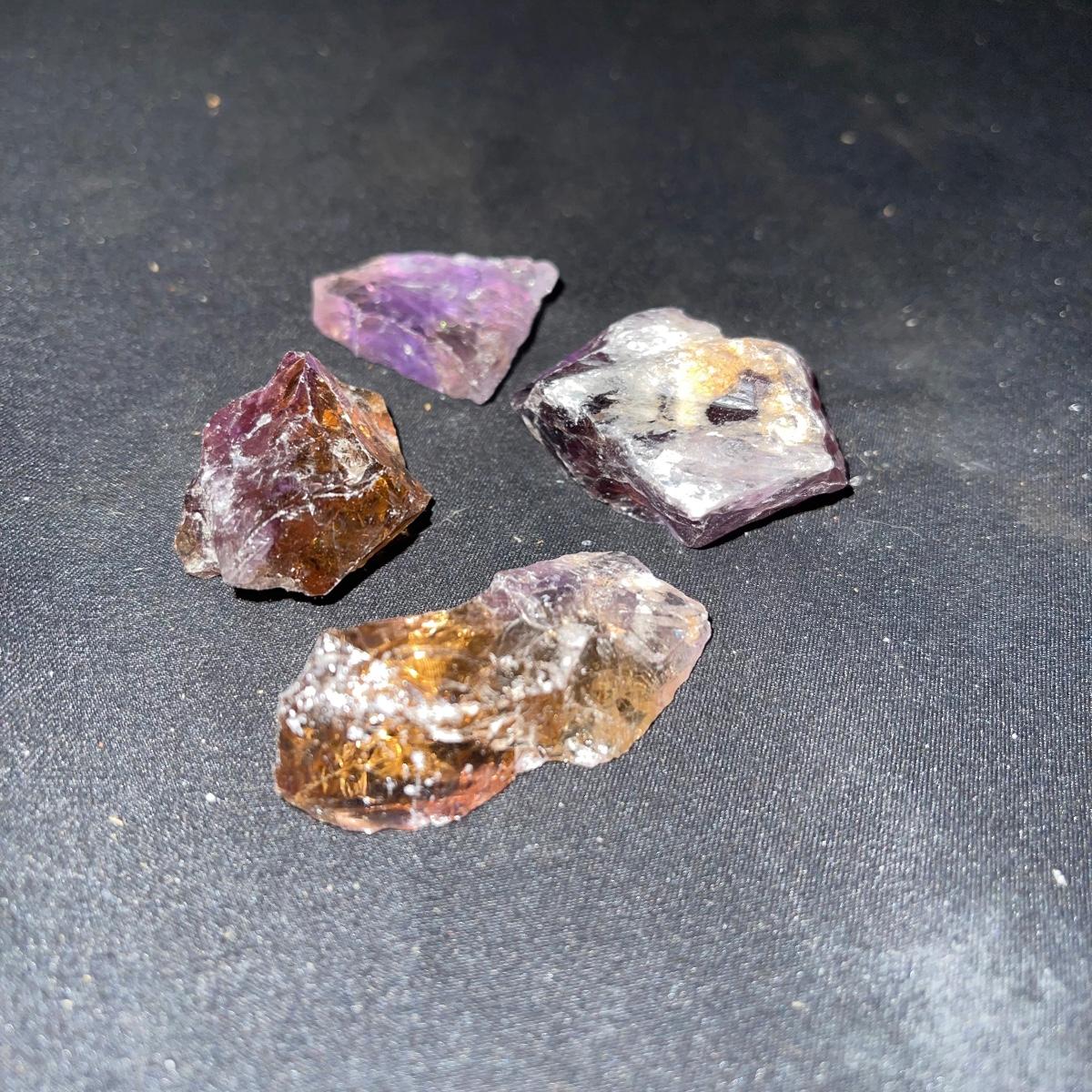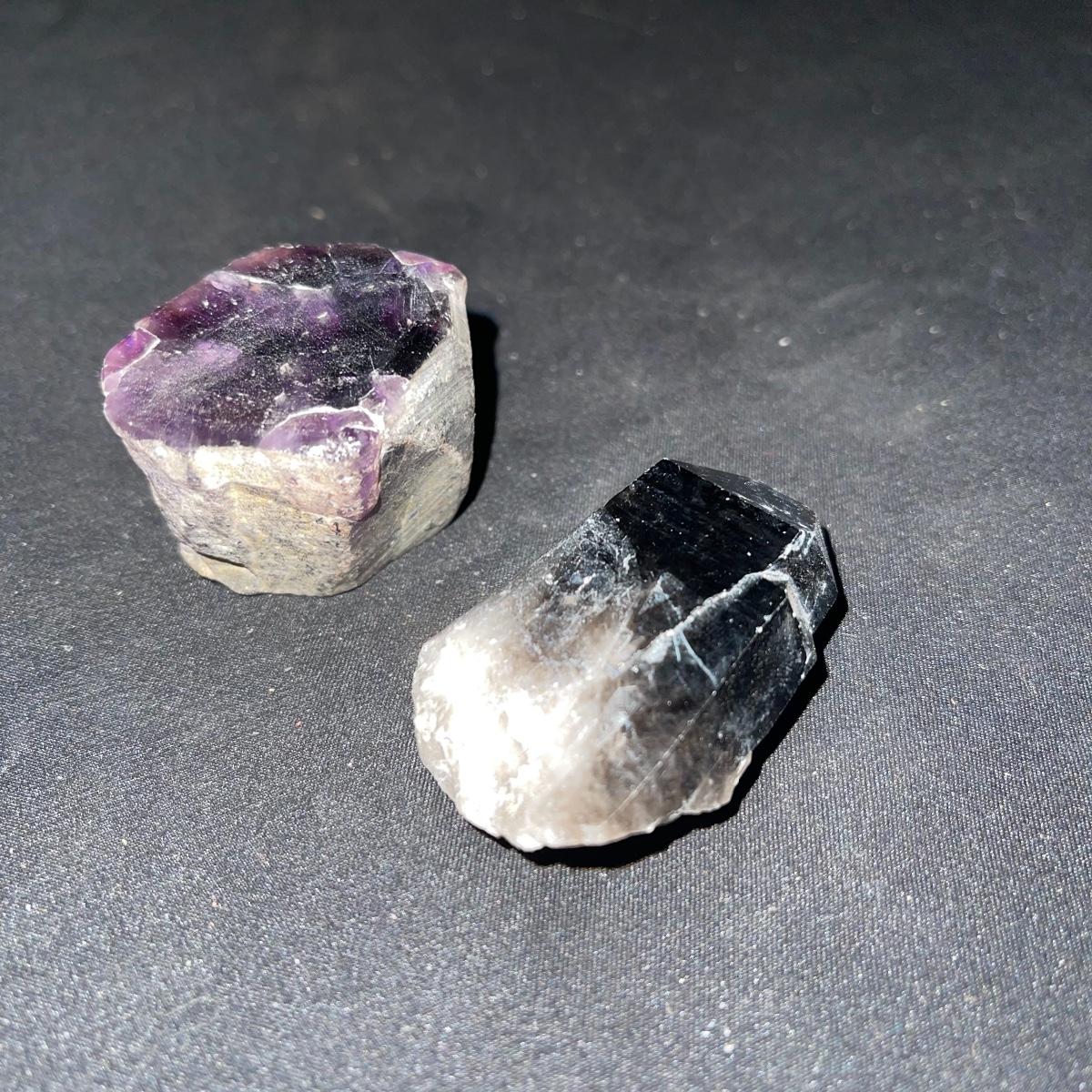 In this amethyst collection, the largest stone measures 2” x 2.25” x 1”. Many shades of purple and gray are the colors of these amethyst. There are a few that are more pink than purple and one that is black. Box of polished amethyst too.