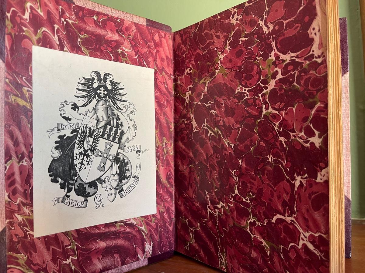 LOT 91 - Charles Kingsley Book Set consisting of 5 Volumes. Leather-bound with beautiful marbled end pages. From the personal library of David's mother. This book was part of the David-Pleydell-Bouverie library at Bouverie Ranch in Glen Ellen. This item can be viewed at our Green + Cate Showroom in Sebastopol from July 15th - July 18th between the hours of 9am-5pm. For the benefit of the Bouverie Preserve of Audubon Canyon Ranch.