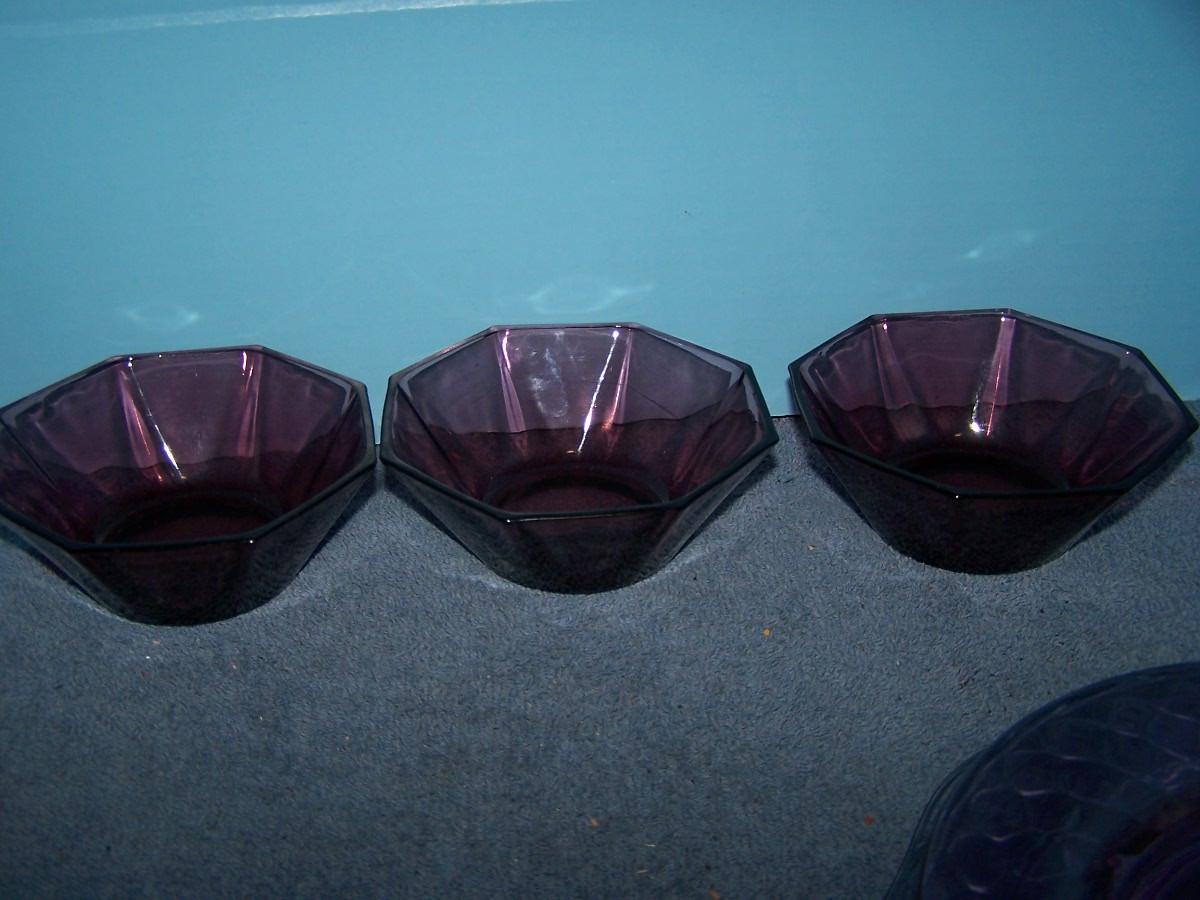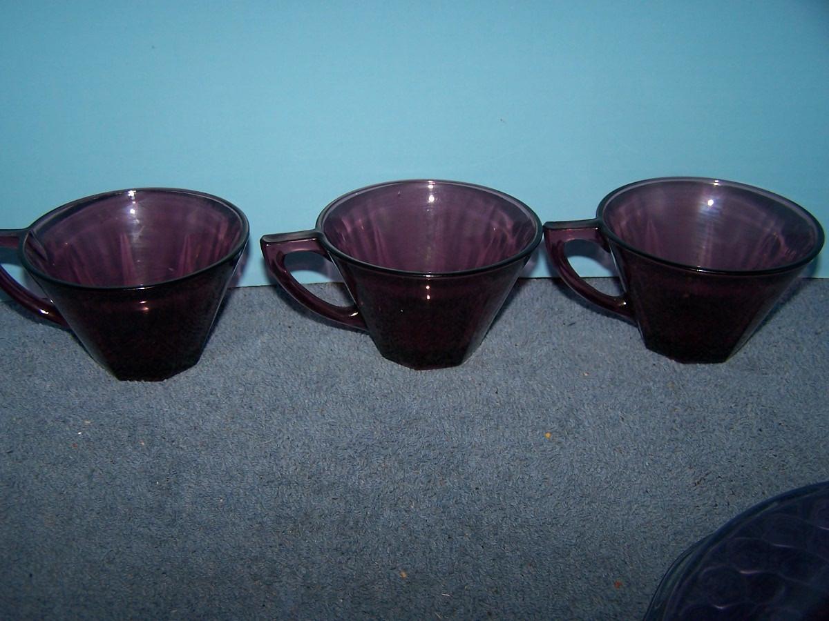 THIS IS BEAUTIFUL VINTAGE MCM MOROCCAN AMETHYST & OTHER PURPLE GLASSWARE!!! UNMARKED.. MOROCCAN AMETHYST-CUPS/BOWLS/SAUCERS.. LIGHT WEAR...