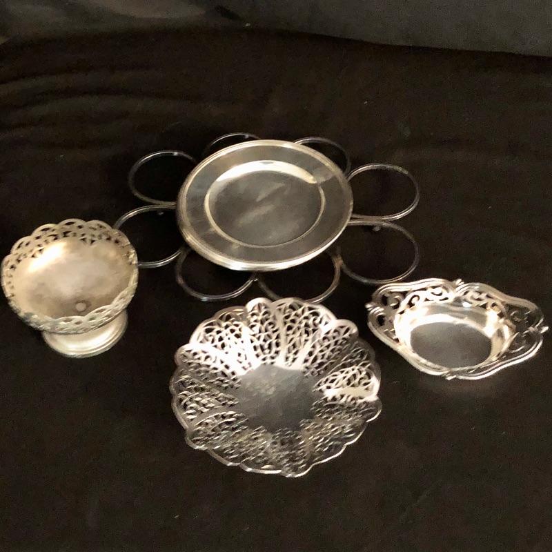 From candle holders to huge platters, this variety of silver plated items is well worth your consideration!