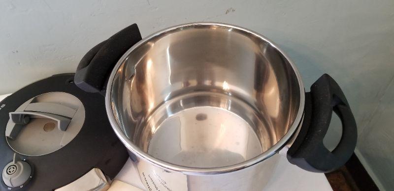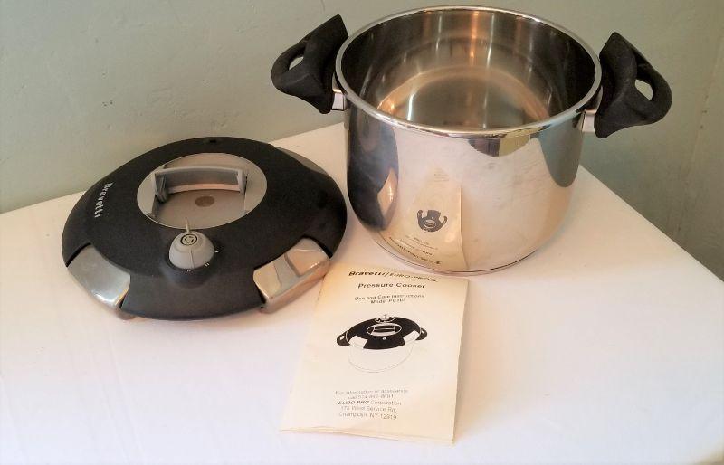 Gently used, with book - Bravetti Euro Pro Pressure Cooker - clean - top closes well.