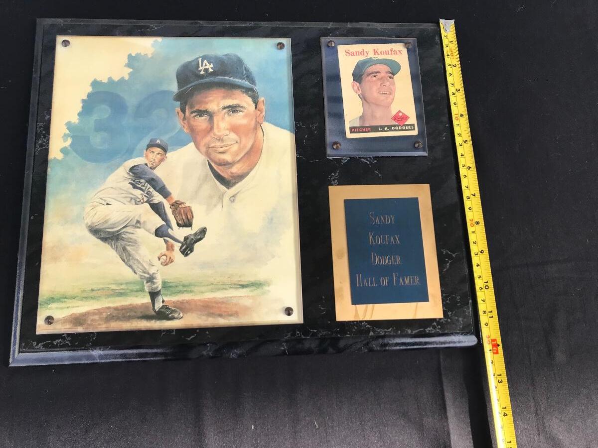 Brooklyn/L.A. Dodgers Collectibles - Sandy Koufax, Kirk Gibson. The pictures show condition, measurements if taken, and what is included in the lot. Due to the large amount that we photograph and the time frame, we are not always able to take measurements. All items unless noted, are pre-owned and have been used. If you purchased furniture, you must bring help. We do not allow one person to carry large furniture out on their own. Bring help, tools and a truck for the safety of our client’s homes, and your personal safety. Company policy. Thank you.