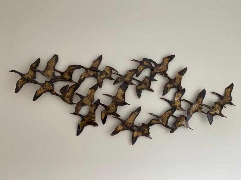 1980 Flying Geese Wall Hanging by John Levering measures 5'3" x 30" tall