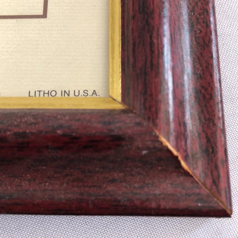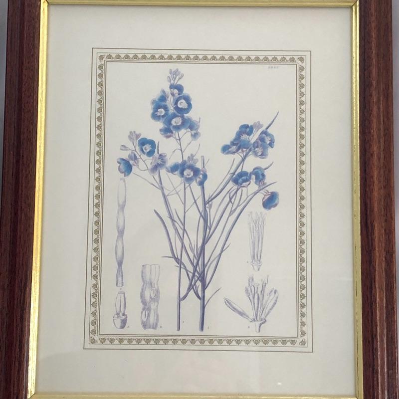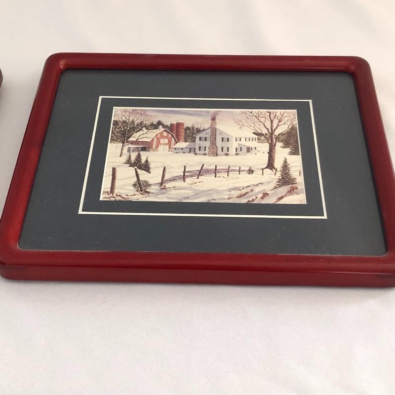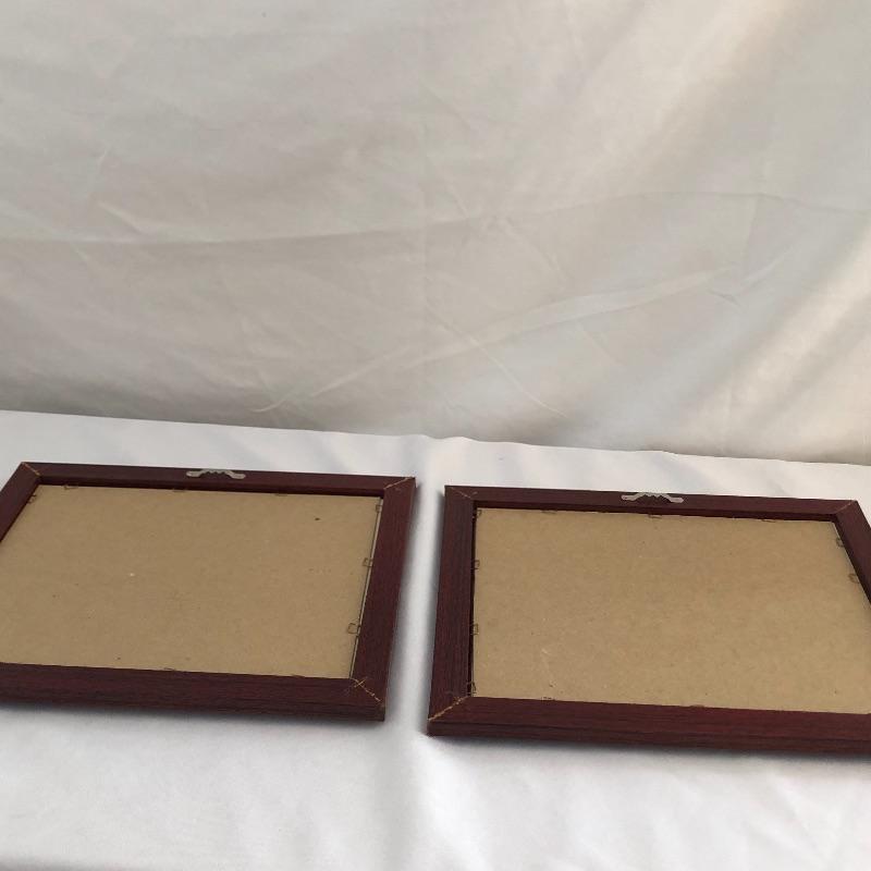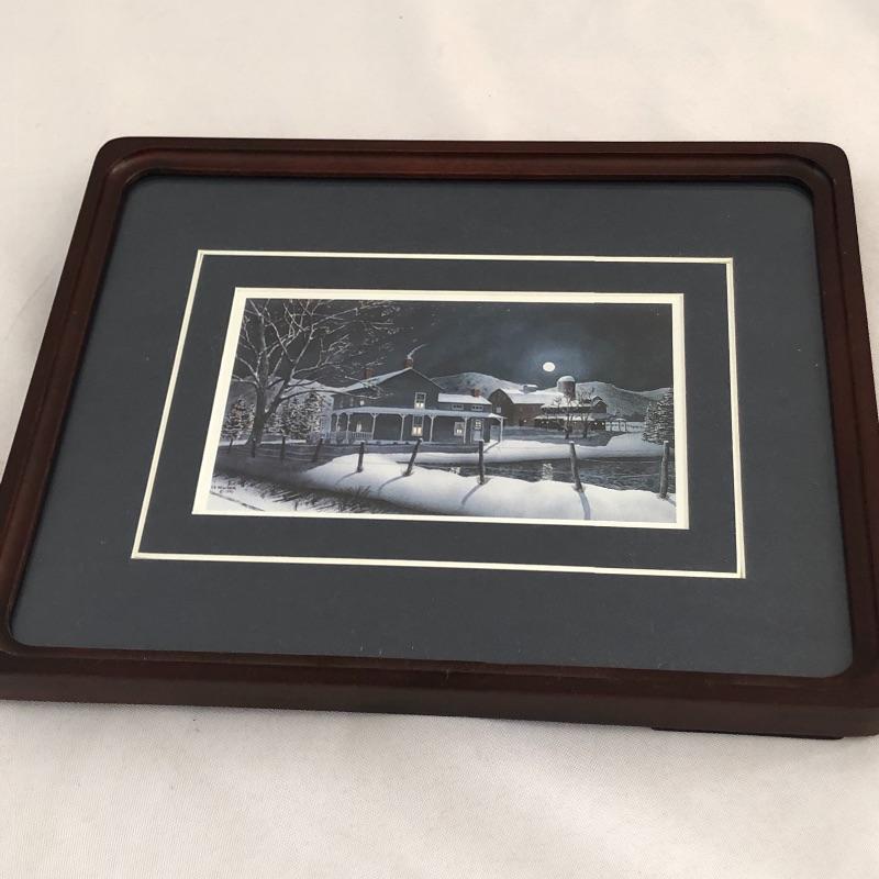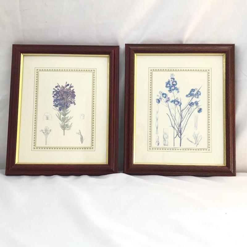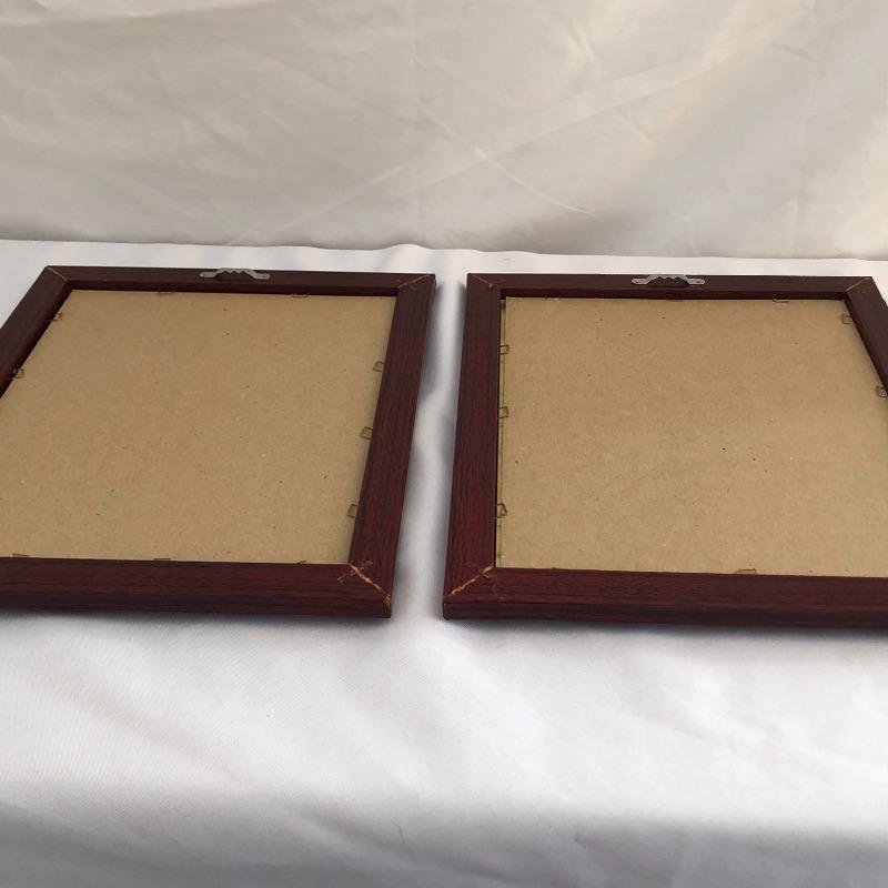 Eight framed pieces of art in this lot. The six prints in the first images all have matching wood frames; two fruit scenes, two landscape and two floral pieces make up these six. Also included are 4 more landscape scenes mounted in wood frames.