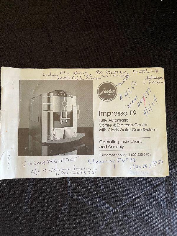 Inpressa F9 Coffee & Espresso Center with Claris Water Care System - Paperwork Included.