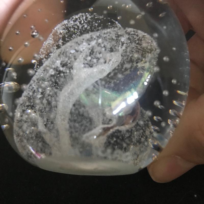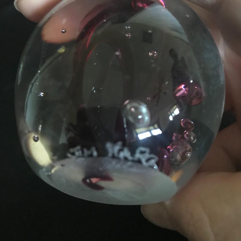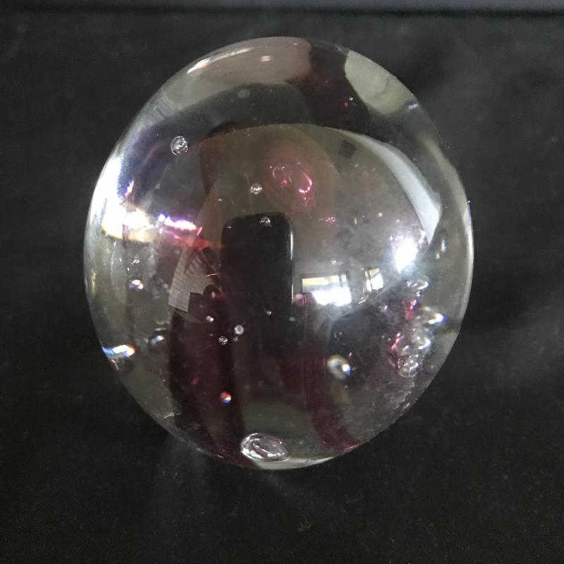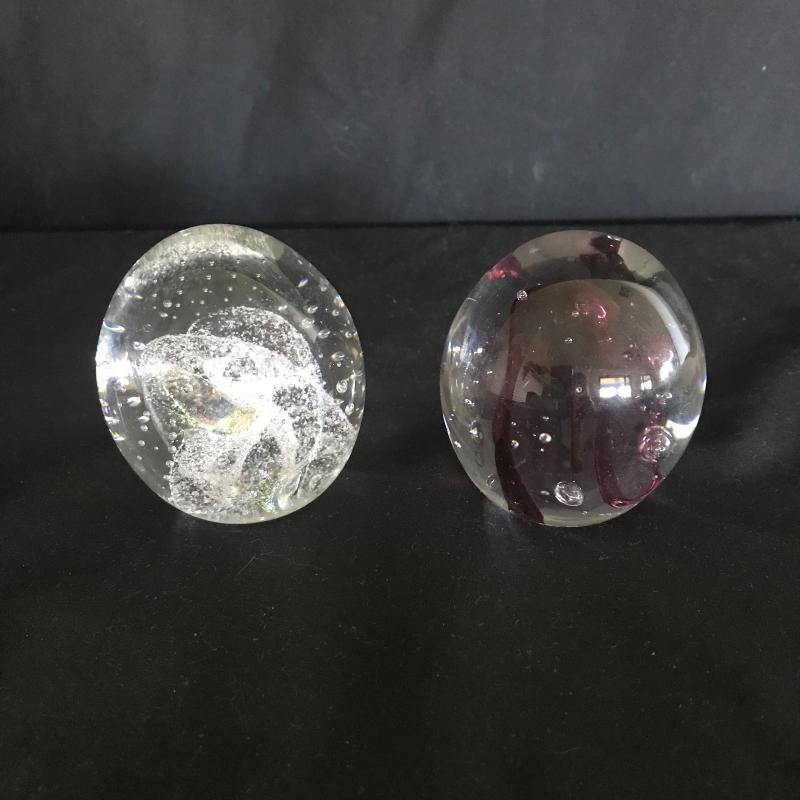 Two lovely handmade Jim Karg glass paperweights. Each approx. 2.5” x 3”. Shipping available.