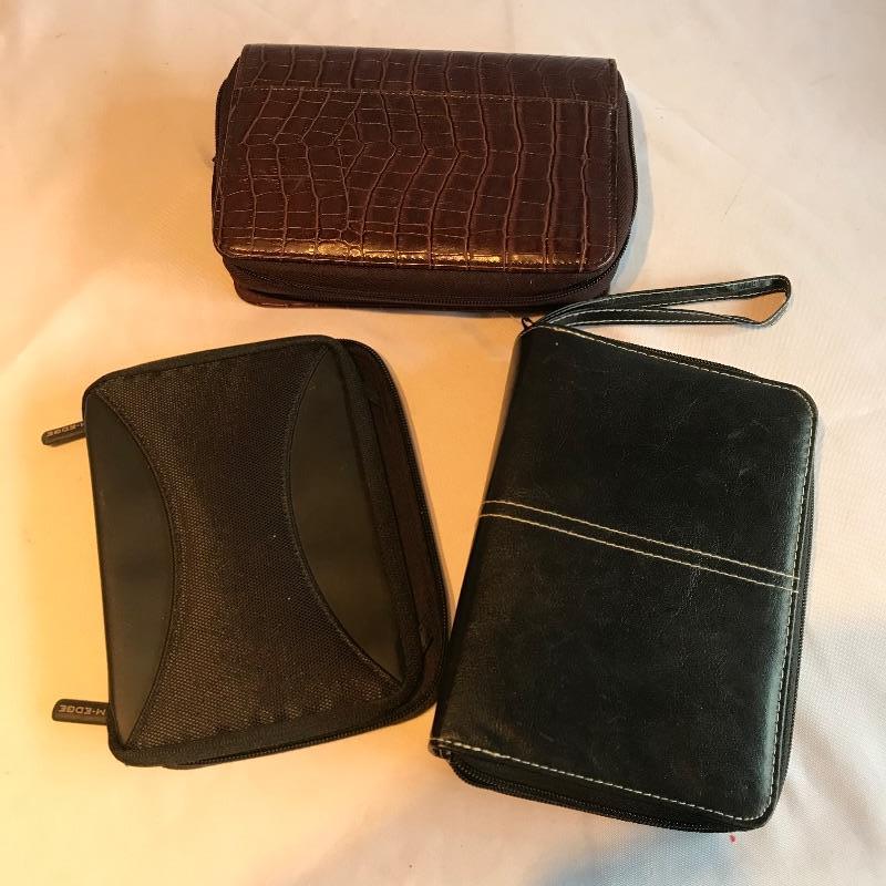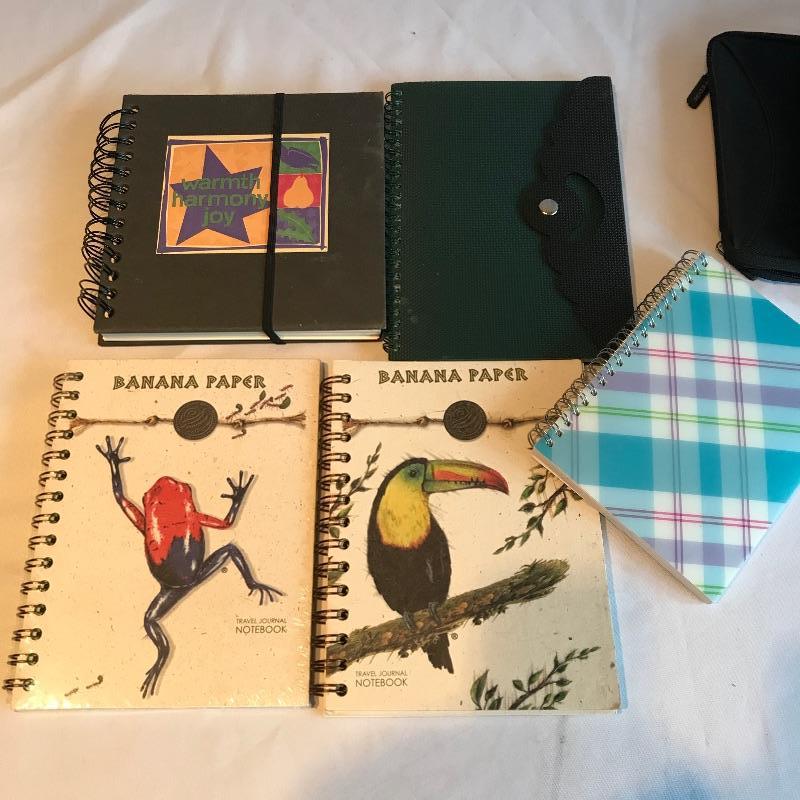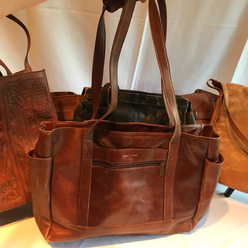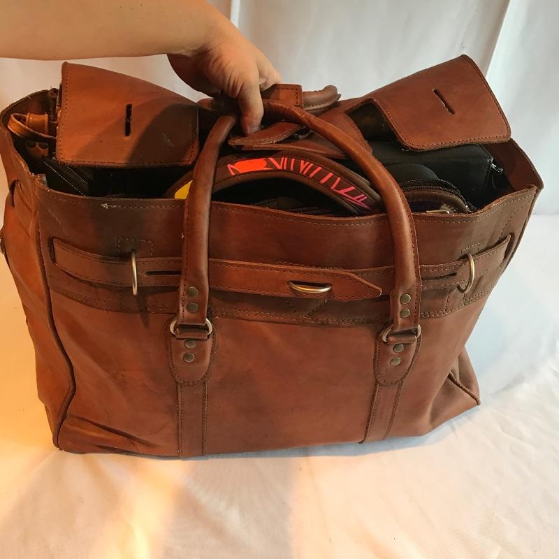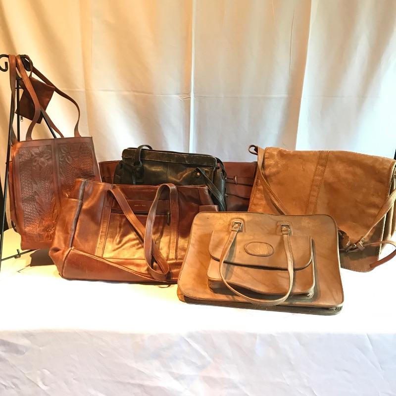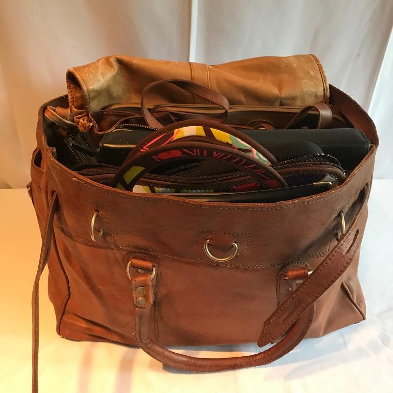 A fine selection of leather briefcases, bags, planners and duffle. The first five leather pieces are large enough to hold a standard laptop, the duffle is large enough to hold the entire lot inside (although top cannot be secured with all items inside) and has a unique closure system of hooks and belts. All pieces need a good leather clean, but will be beautiful no matter how you chose to use them. We’ve thrown in a few other pieces of various materials like a BodyGlove tablet holder, a flowered, padded case by IE, two leather-like planners with extra compartments for personal items and a five notebooks, two of which are Banana Paper. The black planner is missing one zipper, but the second compartment is fully useable. See photos. Local pick up only.