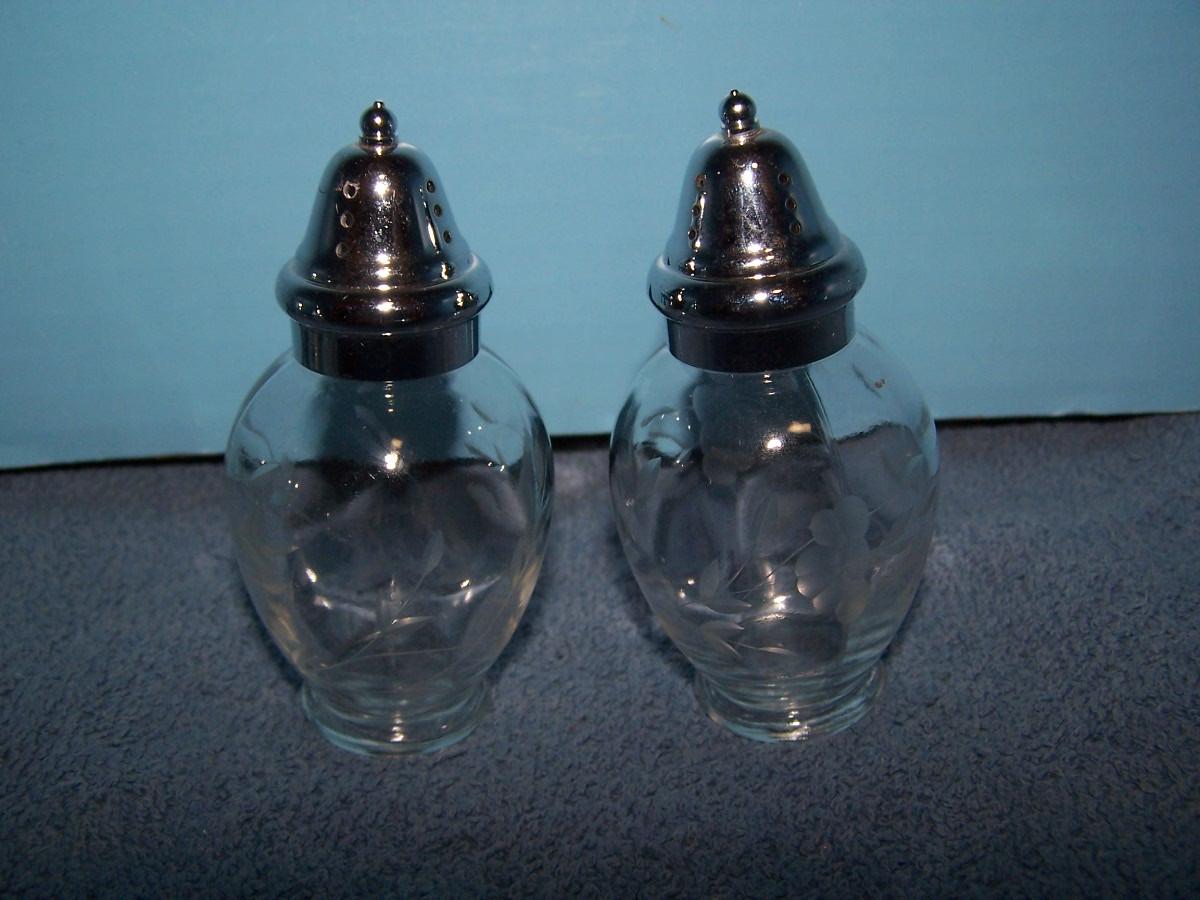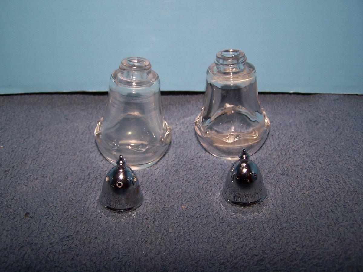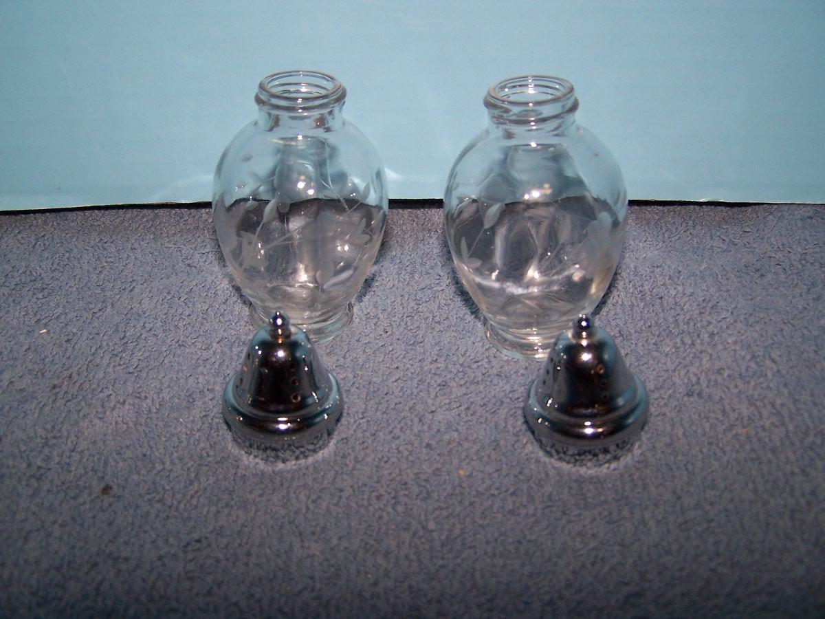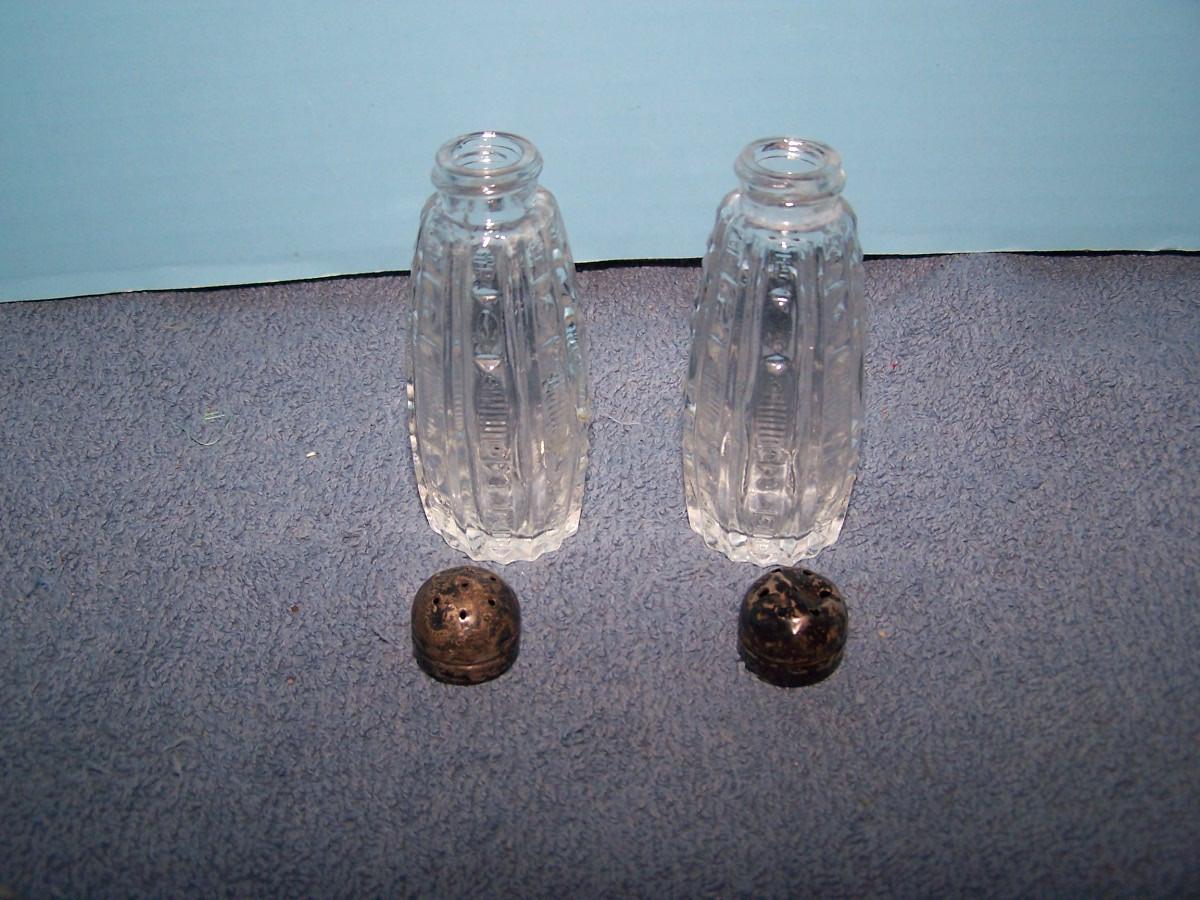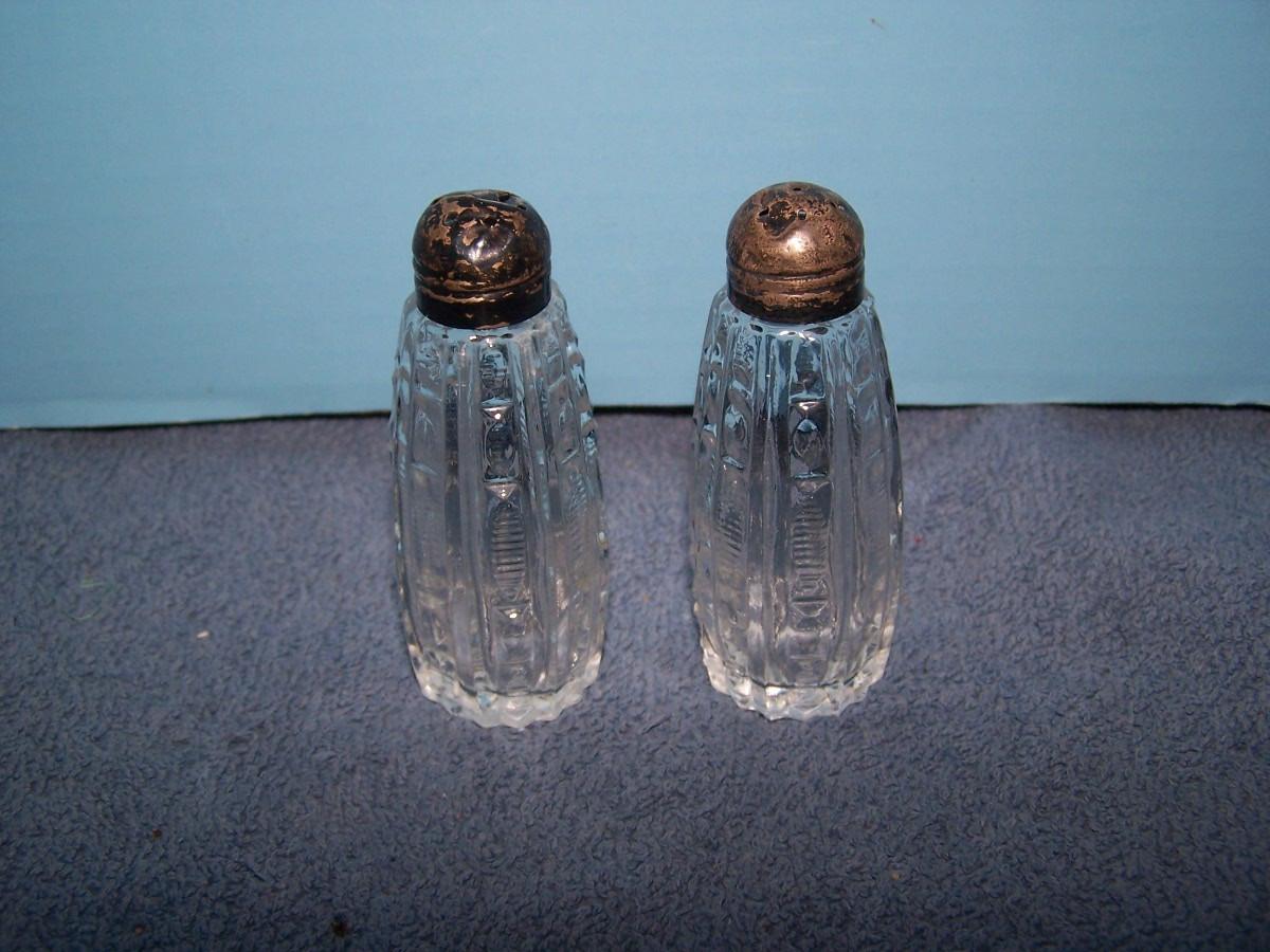 LOT 91 LOVELY VINTAGE CRYSTAL SHAKERS--1 PR STERLING TOPS