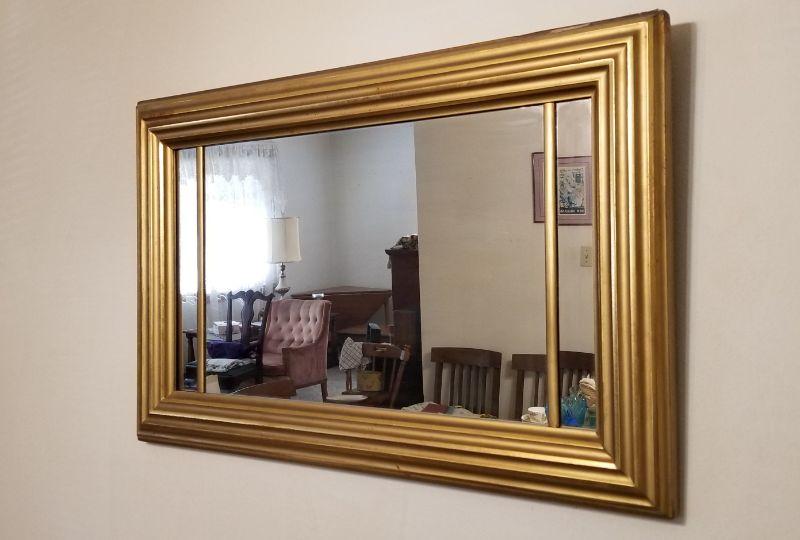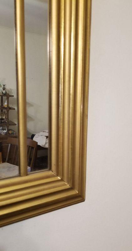 1970's tall mirror - heavy. Measures 36" x 22.5". A few little flaws to the upper frame - have to look closely to see. Vintage condition.