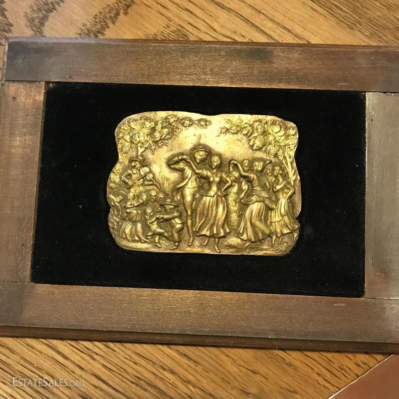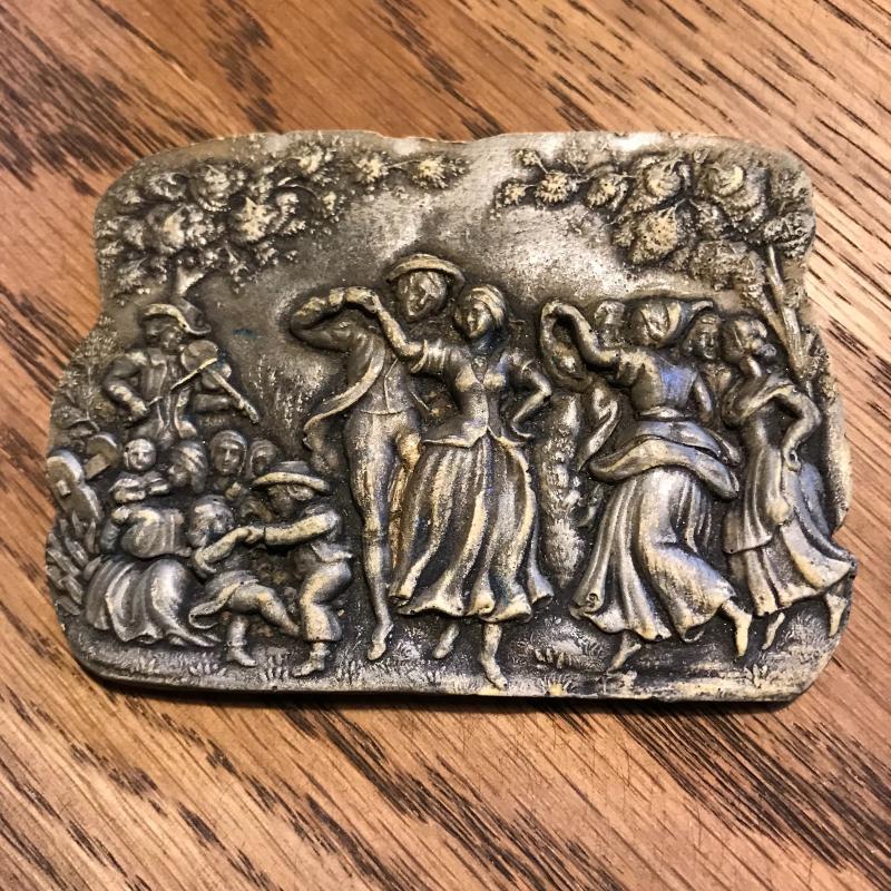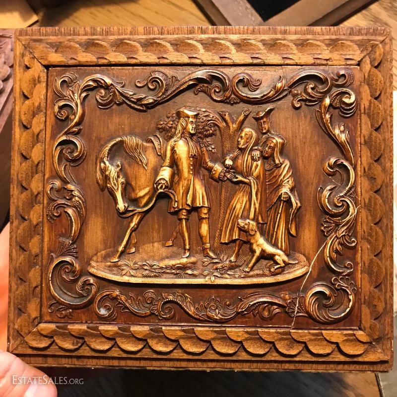 These antique art replicas were made by artist Fred Reehl. Two have been made into bookends (which are approx 5.75” tall), one is the top to a wooden box that needs to be glued back together, one has a hook for hanging on the wall, and one is not affixed to anything. Includes newspaper article about the artist and his process. Shipping available or local pickup in Flat Rock, NC.