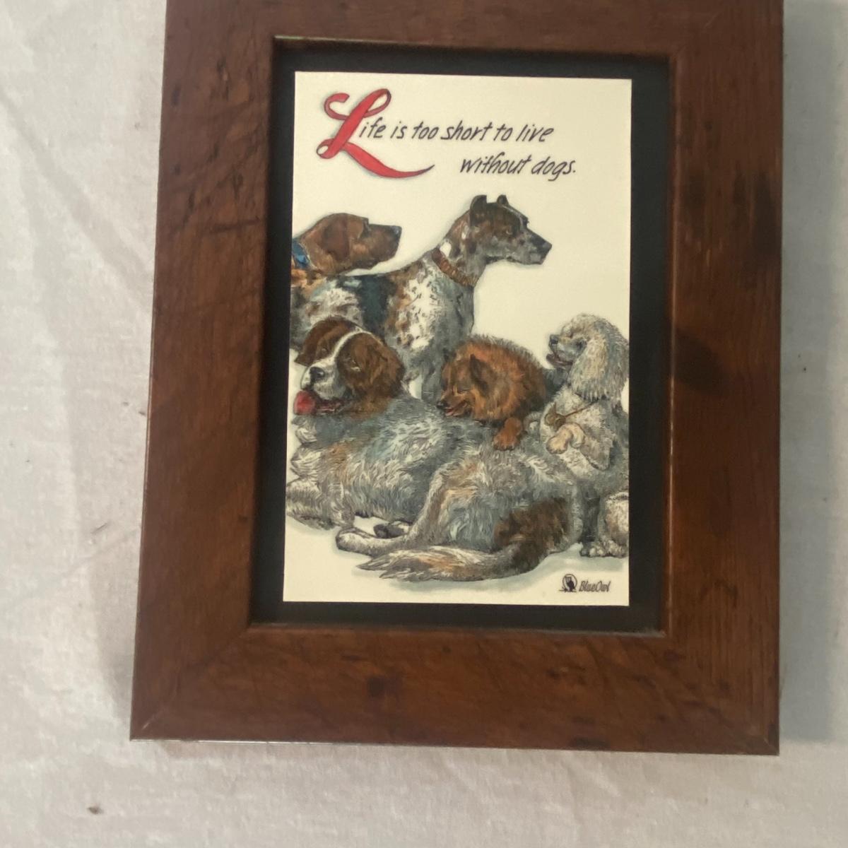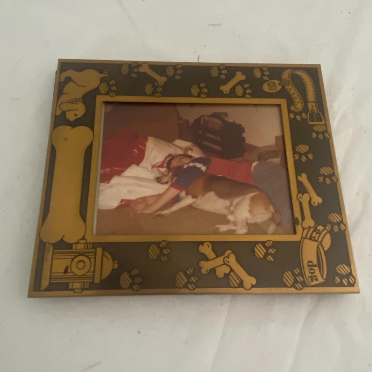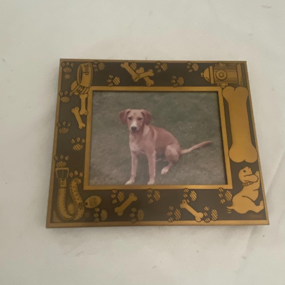 Lot includes many doggie relics and collectibles. Ranging from picture frames to wall decor you will be able to properly appreciate your pooch! Colorful metal dog stand measures approx. 13”x11”. Vase stands 7” tall. See photos for details. Shipping Available.