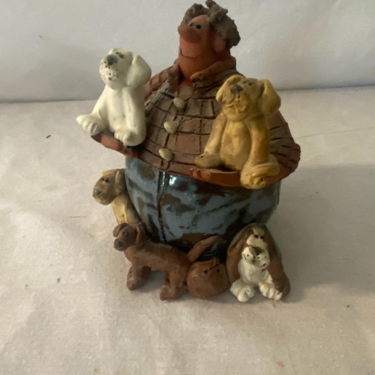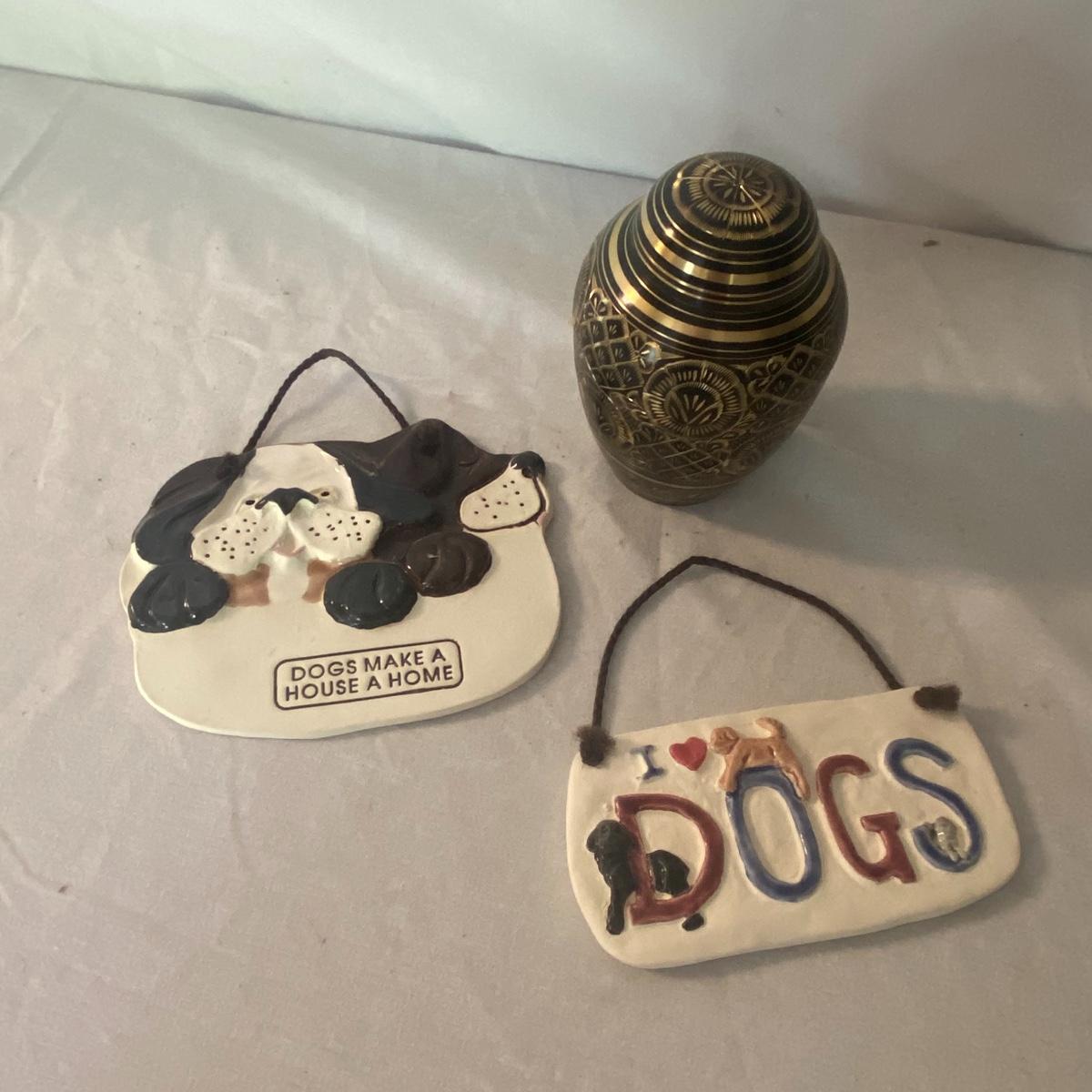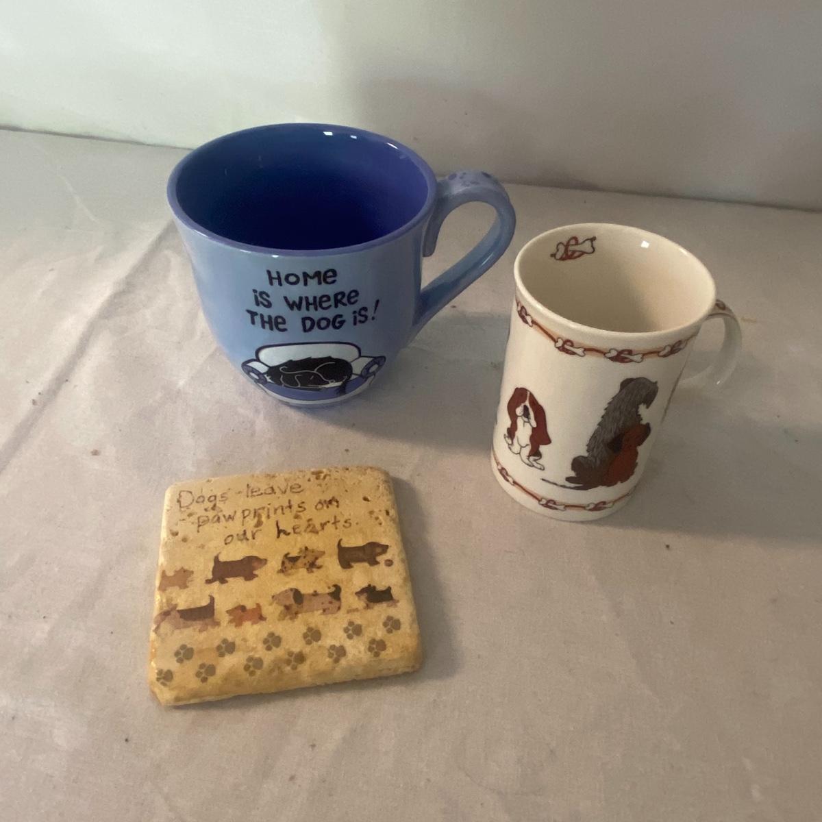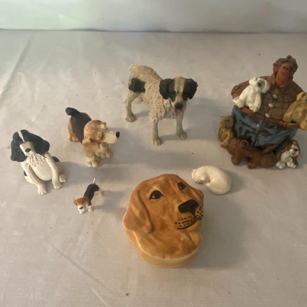 Lot includes many doggie relics and collectibles. Ranging from picture frames to wall decor you will be able to properly appreciate your pooch! Colorful metal dog stand measures approx. 13”x11”. Vase stands 7” tall. See photos for details. Shipping Available.