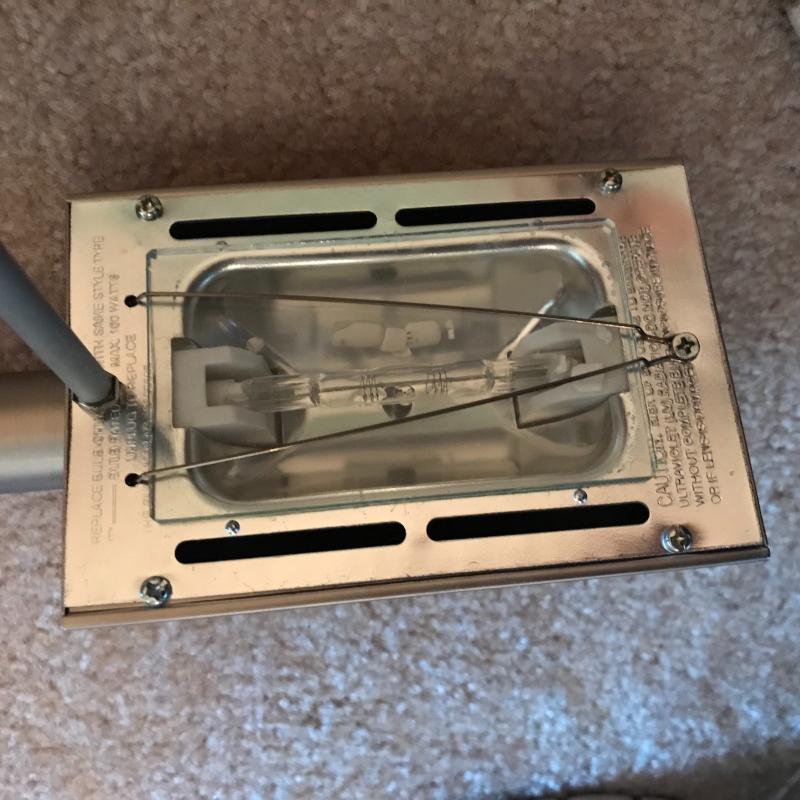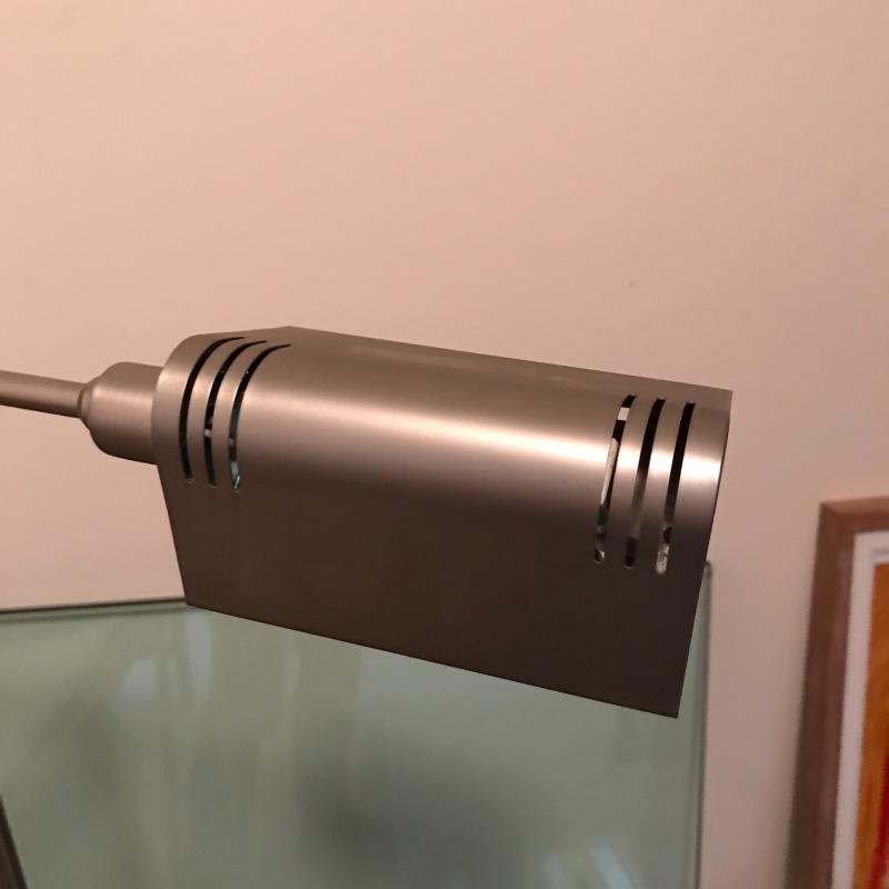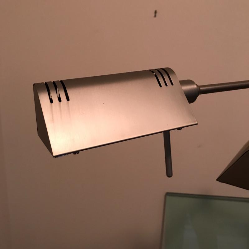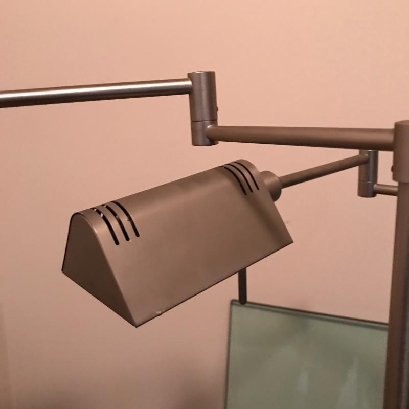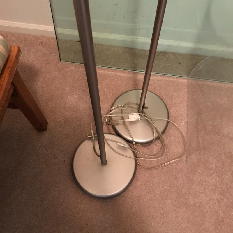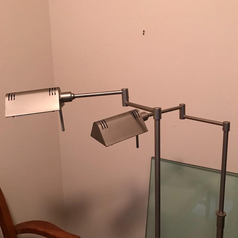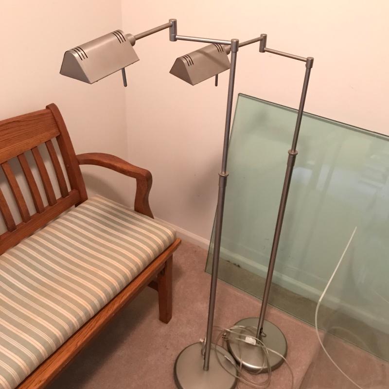 These two unique, industrial-looking floor lamps are perfect for reading, sewing, or anything else that requires direct light. Both work and are height adjustable.