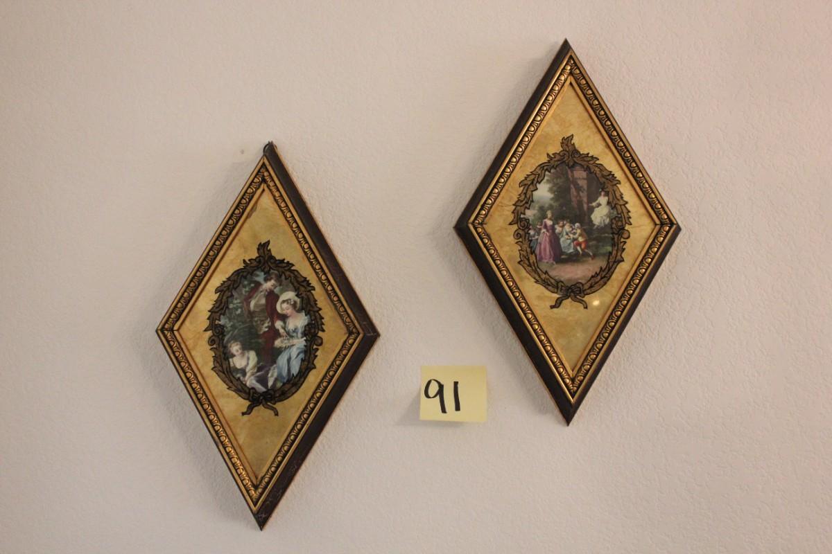Lot 91 Pair of Ornate Vintage Mirrored Wall Art