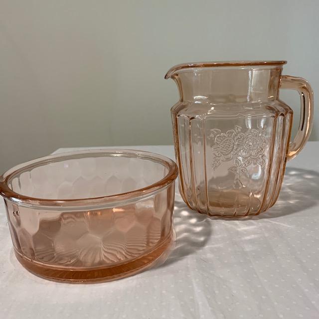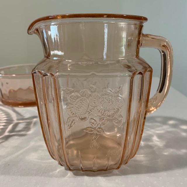 LOT 91 Pink Depression Glass Pitcher & Bowl