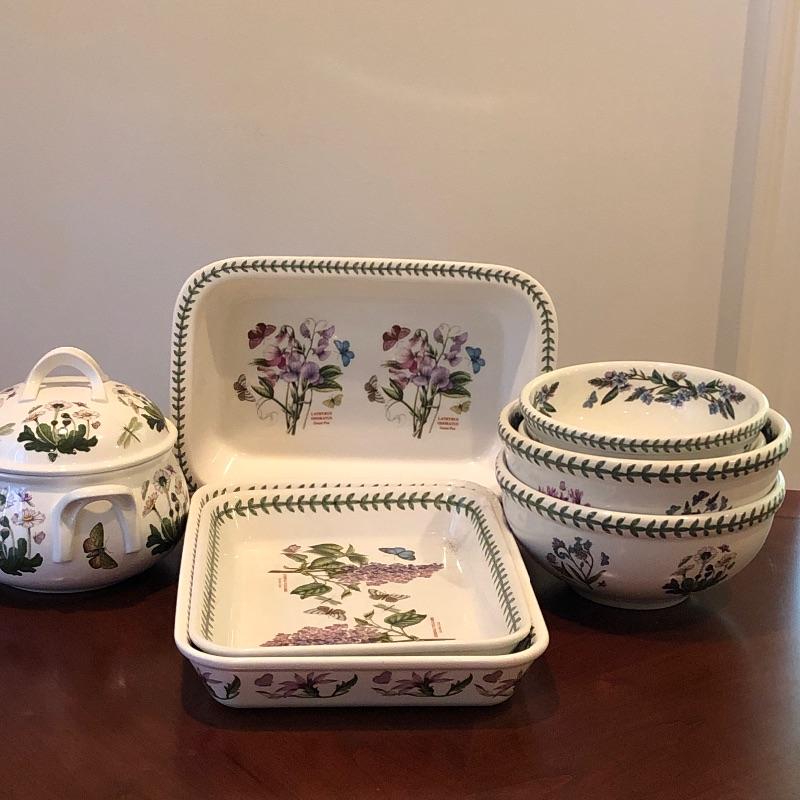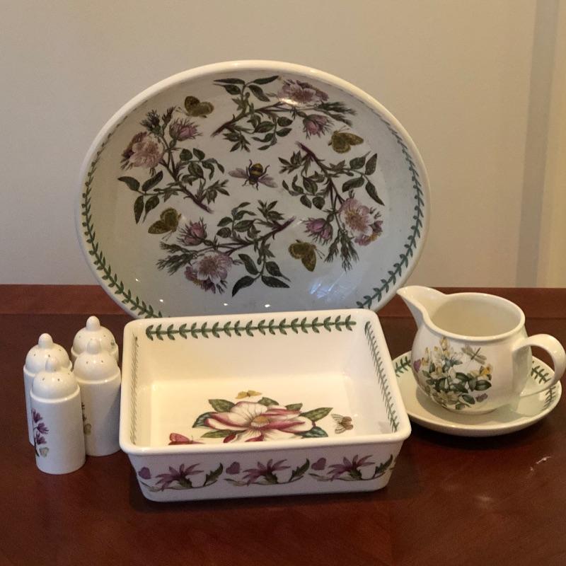 This fine array of Port Meirion serving dishes by Susan Williams-Ellis is oven to table, dishwasher and microwave safe, and made in Britain. These pieces are from the Bontanic Garden collection and if you love the delicate spring like pattern of flowers, butterflies and dragonflies, then please check out Lot 94 and Lot 98 to add to this lovely service.