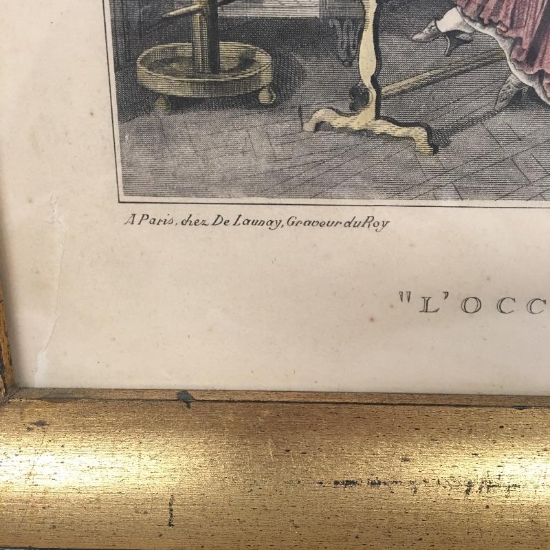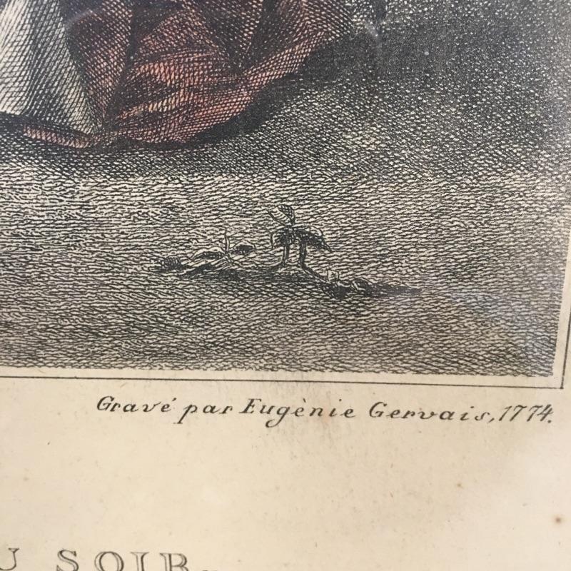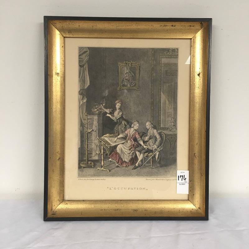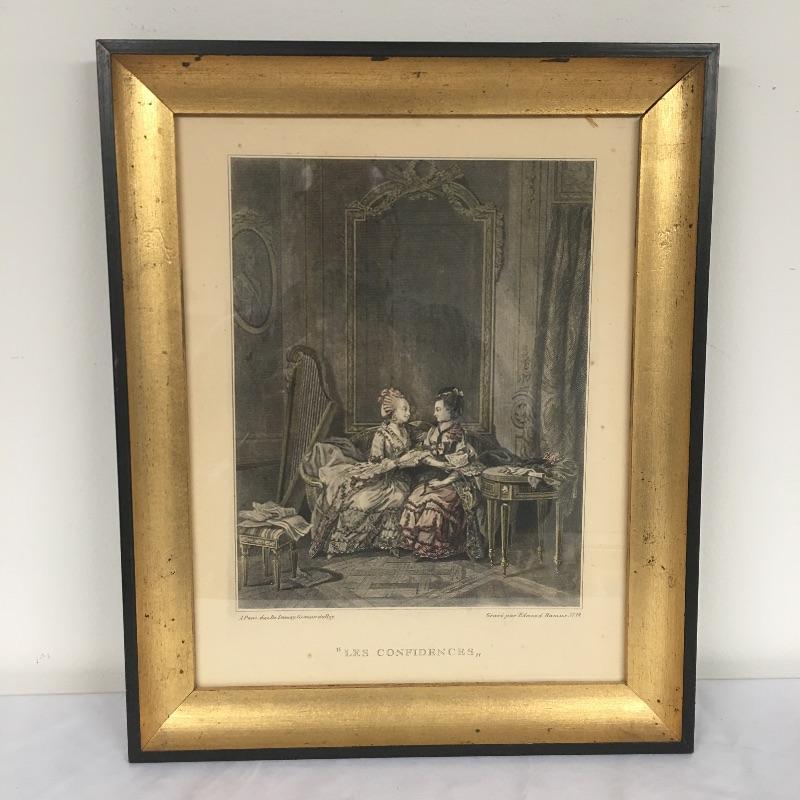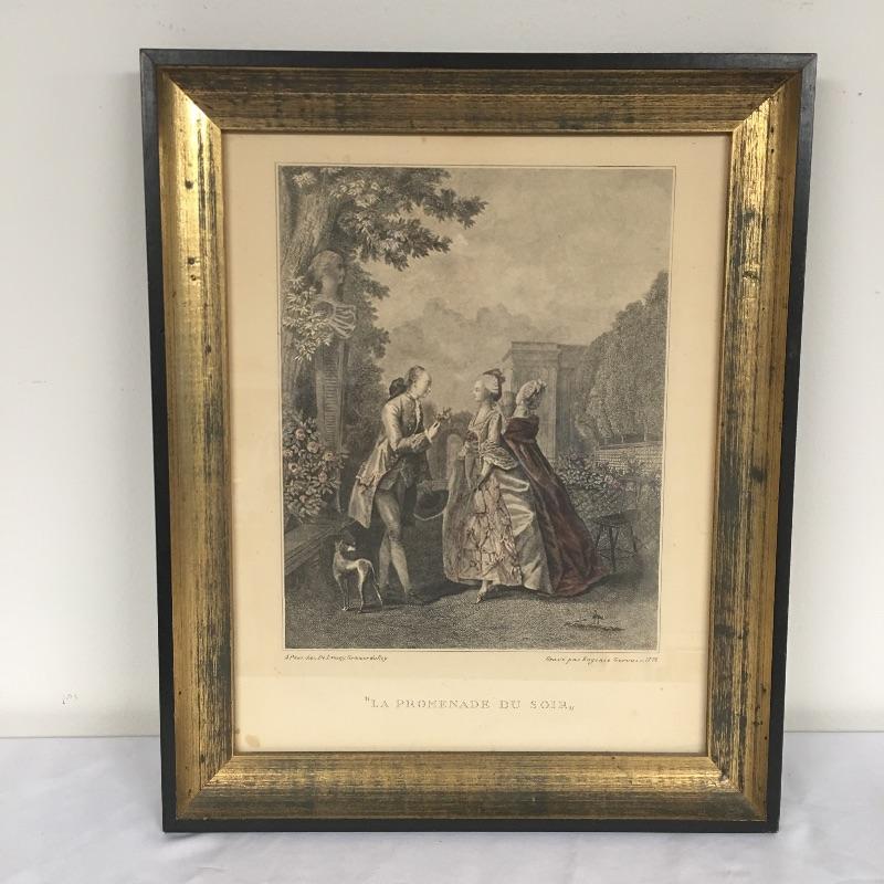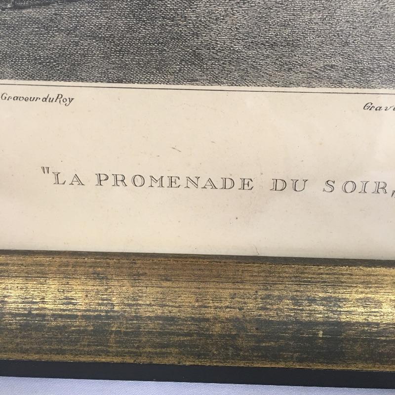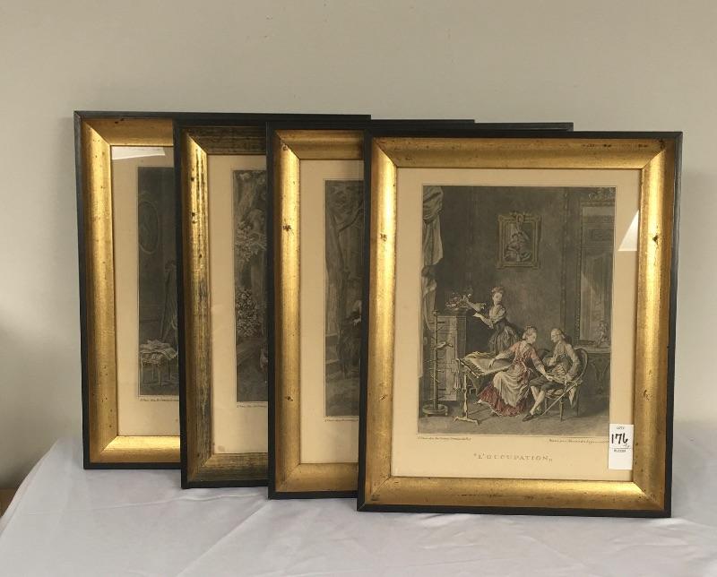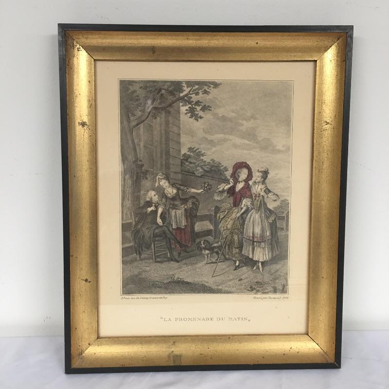 Included in lot is four framed prints that are titled “ La Promenade Du Soir” , “La Promenade Du Matin”, “Les Confidences” and L’occupation. Frames measure 13.5” x 16.5”.