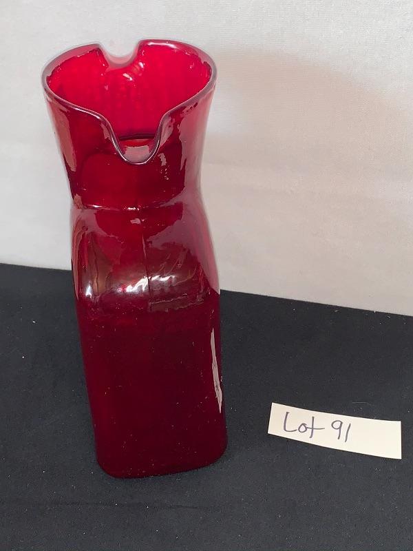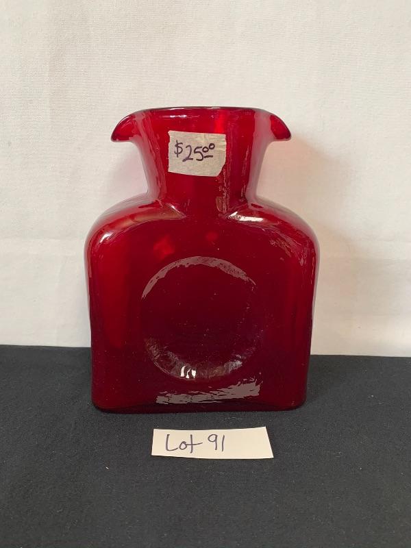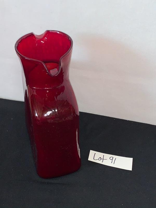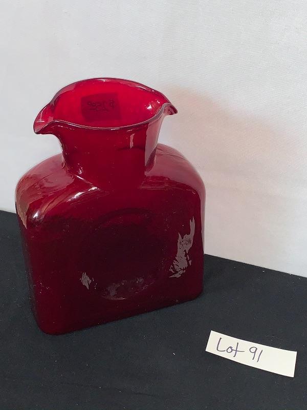 lot 91 RARE Blenko RUBY RED Double Spouted Glass Pitcher